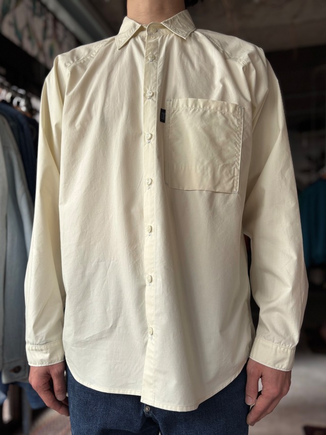 厚手のコットン素材。リラックスフィット。程よい抜け感。絶妙デザインです。 【CONDITION】 多少の着用感はございますが、着用に支障のある大きなダメージはございません。 (あくまで中古衣料ですので、記載していない小穴や小傷などがある場合がございますが、ヴィンテージ衣料の風合いとして捉えて頂ける方のご購入をお願い致します。) 【MATERIAL】 COTTON 【SIZE】 表記 L 身幅 約65cm 着丈 約67cm ※すべての商品は洗濯・メンテナンスを行い、着用に差し支えないと判断したコンディションの商品のみ出品しておりますが、ダメージの見落としがある可能性もございます。細心の注意を払って掲載しておりますが、更に確認したい点がある場合はご注文前に必ずメールにてお問い合わせ下さい。色褪せや些細な汚れに関しましてはヴィンテージ古着特有の風合いになりますので、古着の特性をご理解、ご了承頂いた上でのご注文をお願い致します。なお、ご注文後のキャンセル、返品(返金)は受け付けておりません。予めご了承下さいませ。