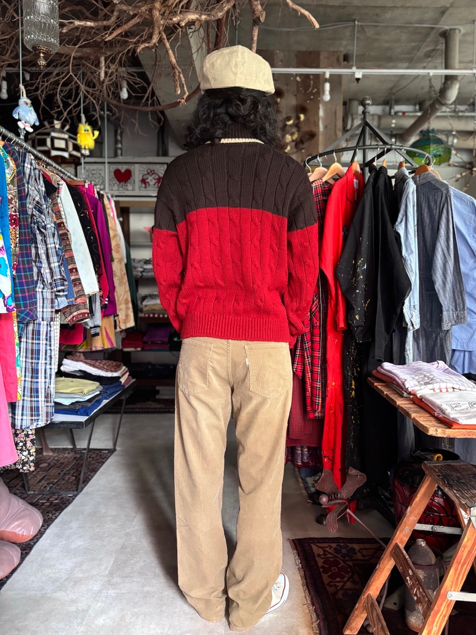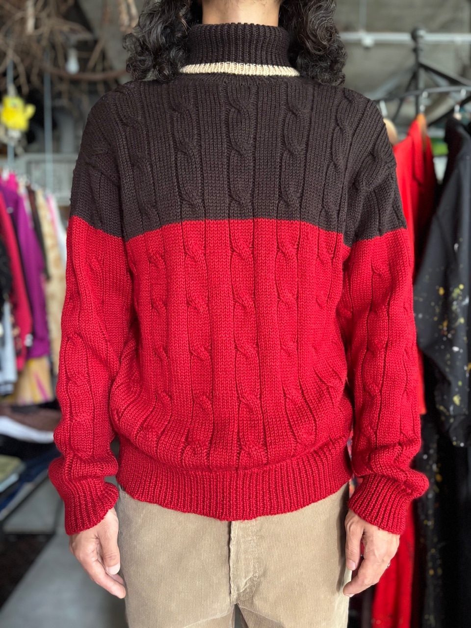 本日もオンライン掲載商品から珍しいディテールのニットをご紹介します。タートルネックのケーブル編みに、バイカラーの切り返しがとてもお洒落な J,CREW製 ウールセーター。イングランド国旗のようなカラーリングがトラディショナルな雰囲気たっぷりです。
