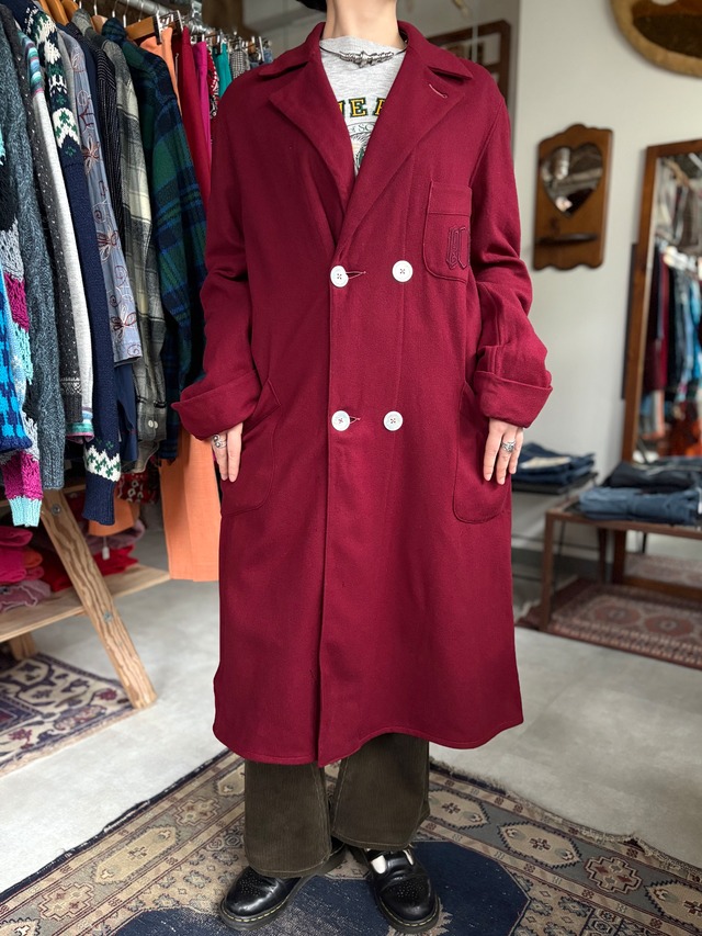 厚手のウール素材。オーセンティックフィット。扱い易いハーフ丈です。 【CONDITION】 多少の着用感はございますが、着用に支障のある大きなダメージはございません。 (あくまで中古衣料ですので、記載していない小穴や小傷などがある場合がございますが、ヴィンテージ衣料の風合いとして捉えて頂ける方のご購入をお願い致します。) 【MATERIAL】 WOOL(推定) 【SIZE】 身幅 約53cm 着丈 約90cm ※すべての商品は洗濯・メンテナンスを行い、着用に差し支えないと判断したコンディションの商品のみ出品しておりますが、ダメージの見落としがある可能性もございます。細心の注意を払って掲載しておりますが、更に確認したい点がある場合はご注文前に必ずメールにてお問い合わせ下さい。色褪せや些細な汚れに関しましてはヴィンテージ古着特有の風合いになりますので、古着の特性をご理解、ご了承頂いた上でのご注文をお願い致します。なお、ご注文後のキャンセル、返品(返金)は受け付けておりません。予めご了承下さいませ。