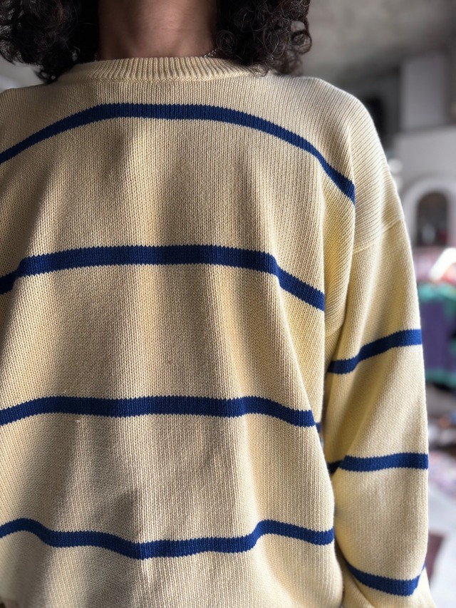 厚手のコットンニット素材。丈短めのリラックスフィット。黒タグのvintage エディバウアー製。スウェット感覚で着用できる良色ボーダー。 【CONDITION】 数カ所に5mm程の薄い染み。さほど目立ちません。着用に支障のある大きなダメージはございません。 (あくまで中古衣料ですので、記載していない小穴や小傷などがある場合がございますが、ヴィンテージ衣料の風合いとして捉えて頂ける方のご購入をお願い致します。) 【MATERIAL】 COTTON 【SIZE】 表記 L 身幅 約58cm 着丈 約64cm ※すべての商品は洗濯・メンテナンスを行い、着用に差し支えないと判断したコンディションの商品のみ出品しておりますが、ダメージの見落としがある可能性もございます。細心の注意を払って掲載しておりますが、更に確認したい点がある場合はご注文前に必ずメールにてお問い合わせ下さい。色褪せや些細な汚れに関しましてはヴィンテージ古着特有の風合いになりますので、古着の特性をご理解、ご了承頂いた上でのご注文をお願い致します。なお、ご注文後のキャンセル、返品(返金)は受け付けておりません。予めご了承下さいませ。