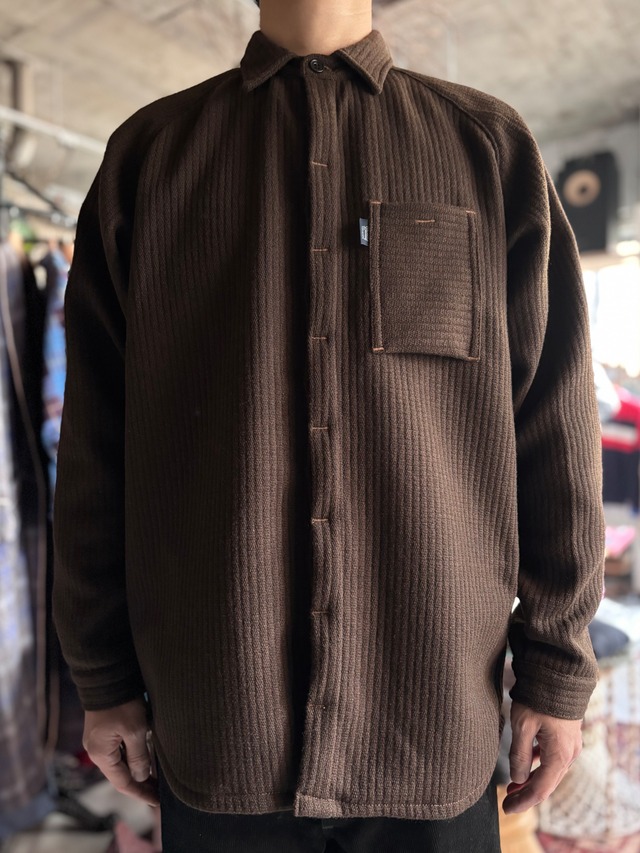 【BEAGLE別注モデル】 ドレッシーな比翼仕立てと、スポーティなラグランスリーブを組み合わせたデザイン。空気を含んだようなボリューム感と、コーデュロイのような縦畝が特徴的なウールツイード素材。ビンテージライクなポケット形状に、抜け感のある佇まいが映えるシャツです。フロントを開けても閉めてもコーディネートが綺麗にまとまります。 【CONDITION】 新品商品です。 【MATERIAL】 WOOL 【SIZE】 M / L 身幅 約55cm / 約 58cm 着丈 約76cm / 約 79cm ※すべての商品は洗濯・メンテナンスを行い、着用に差し支えないと判断したコンディションの商品のみ出品しておりますが、ダメージの見落としがある可能性もございます。細心の注意を払って掲載しておりますが、更に確認したい点がある場合はご注文前に必ずメールにてお問い合わせ下さい。色褪せや些細な汚れに関しましてはヴィンテージ古着特有の風合いになりますので、古着の特性をご理解、ご了承頂いた上でのご注文をお願い致します。なお、ご注文後のキャンセル、返品(返金)は受け付けておりません。予めご了承下さいませ。