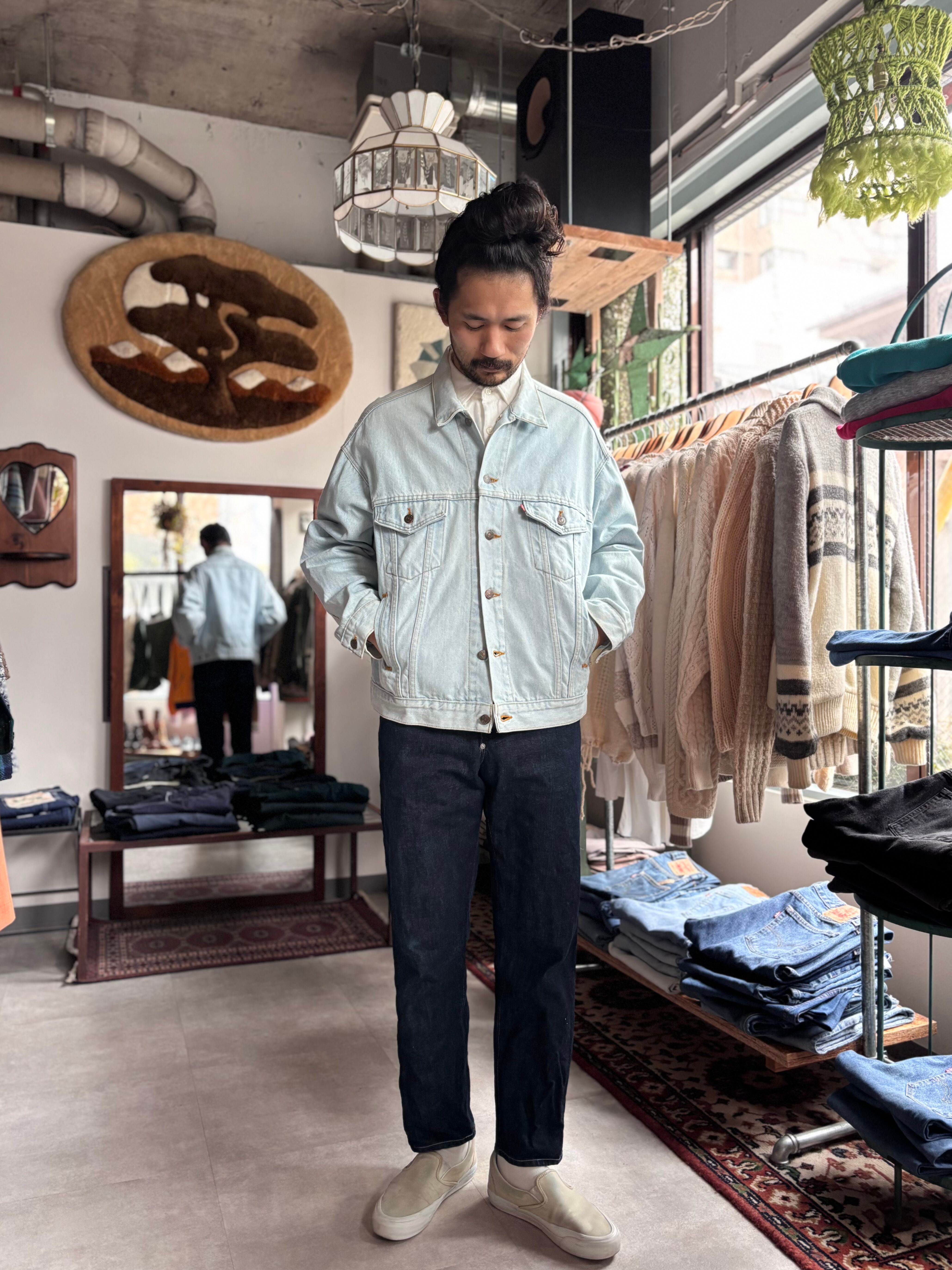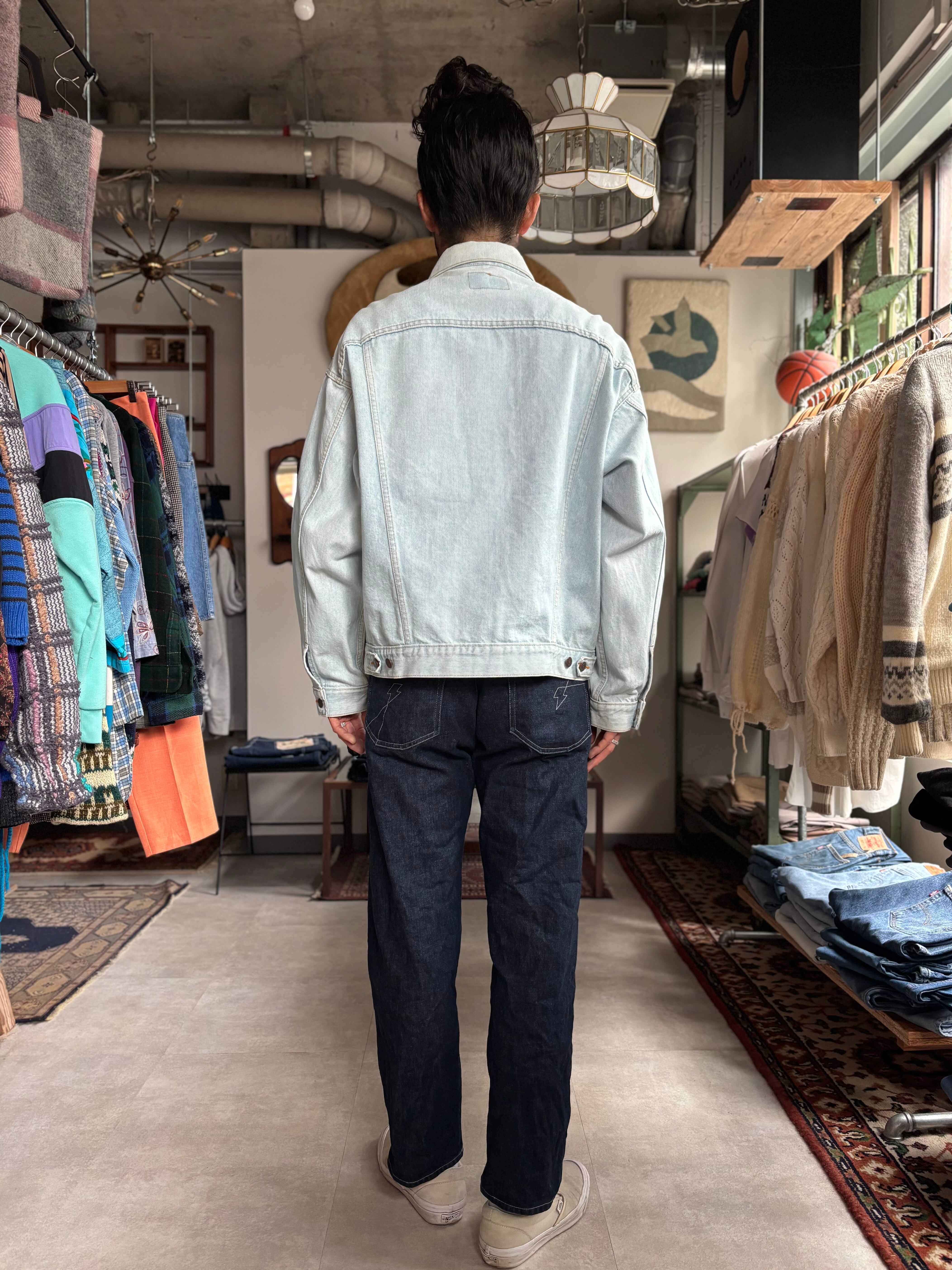 綺麗に色の抜けたアイスウォッシュ。リラックスフィット。90s USA。身幅の広い形です。