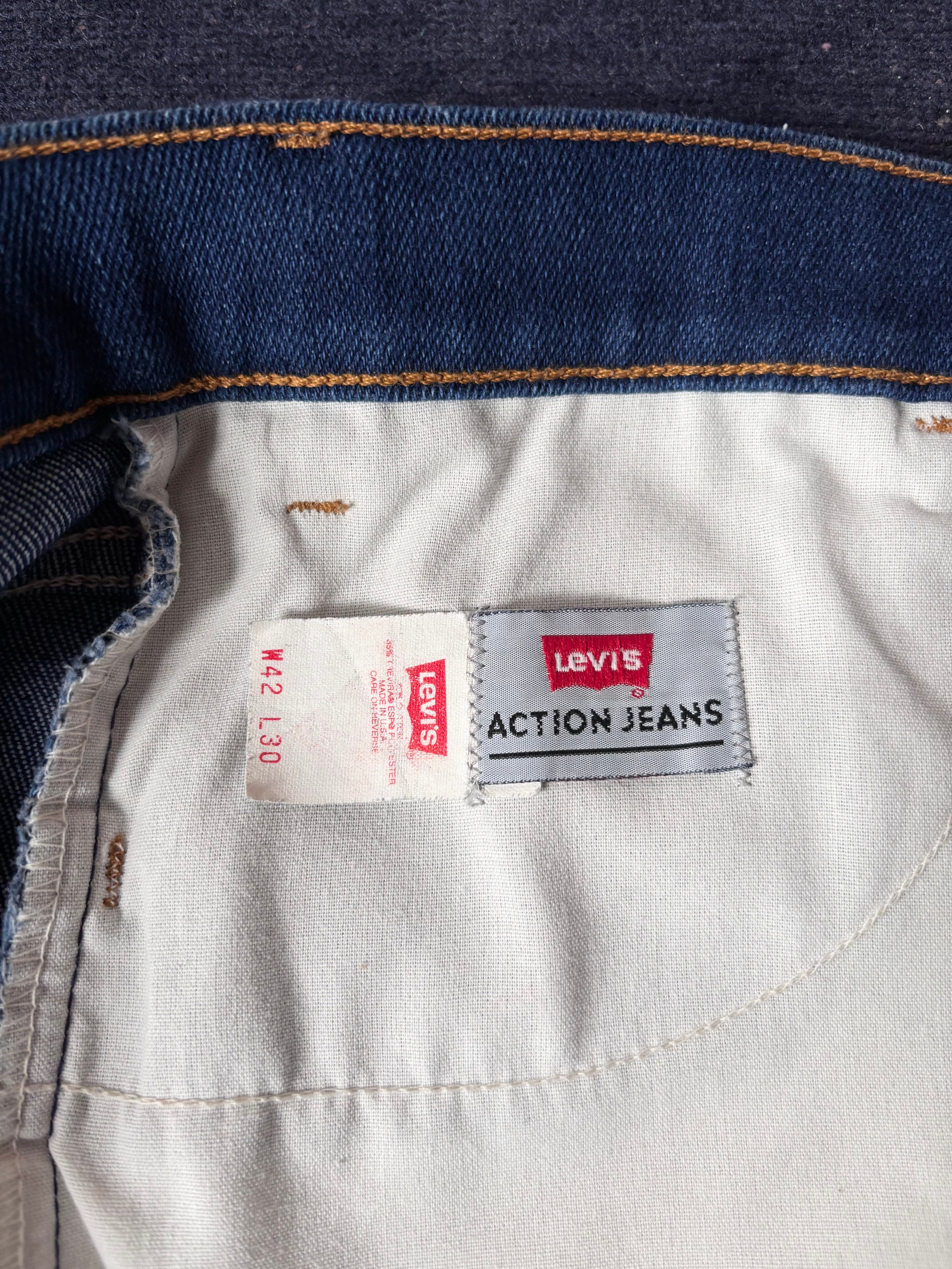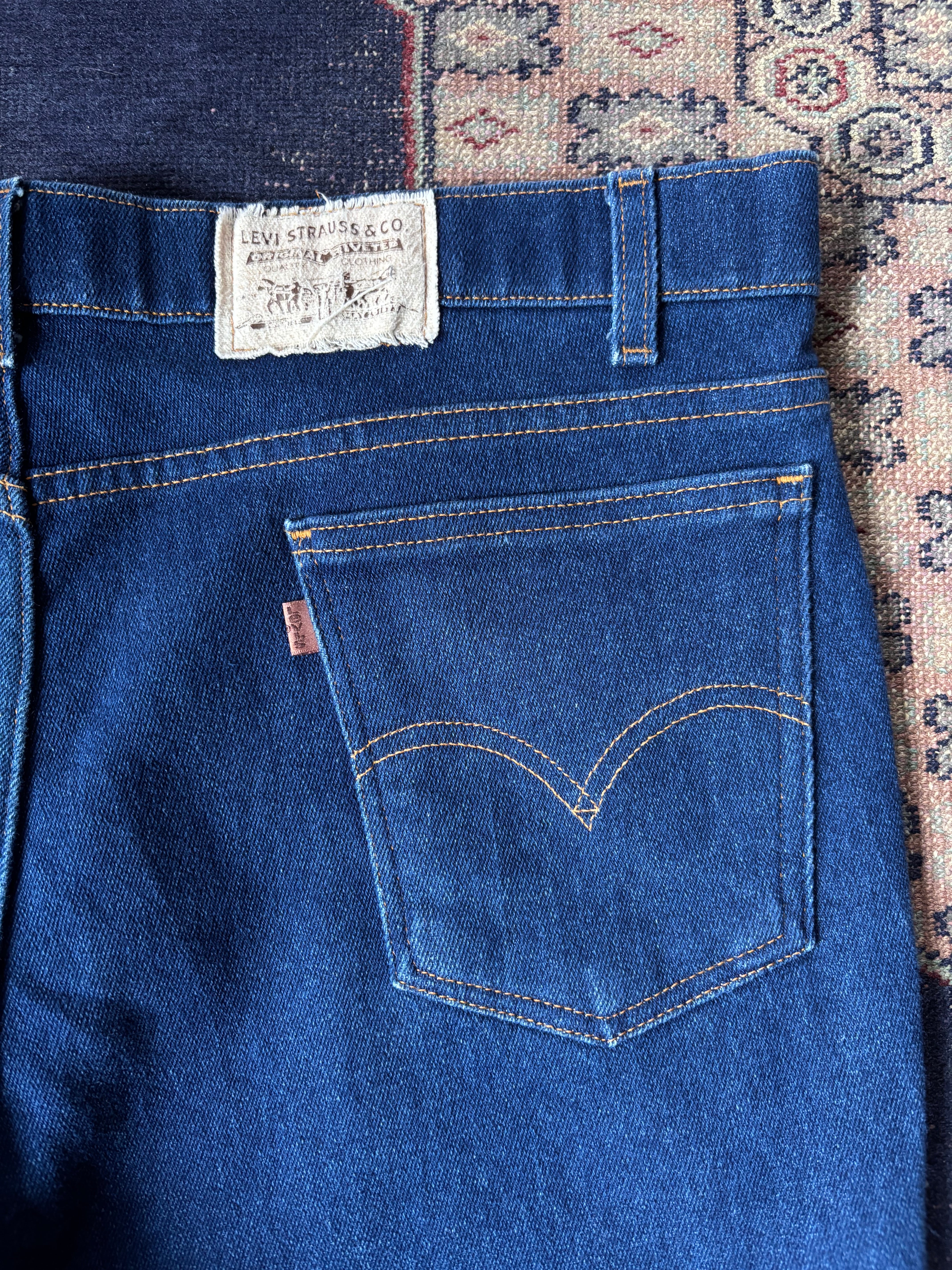 USAメイドのビンテージリーバイス。股上深めのゆとりのあるリラックスフィット。色の残ったマットなブルーデニムカラー。履き心地抜群のストレッチ生地。オレンジタブ仕様。サイズアップして履いても収まりの良いおすすめデニム。