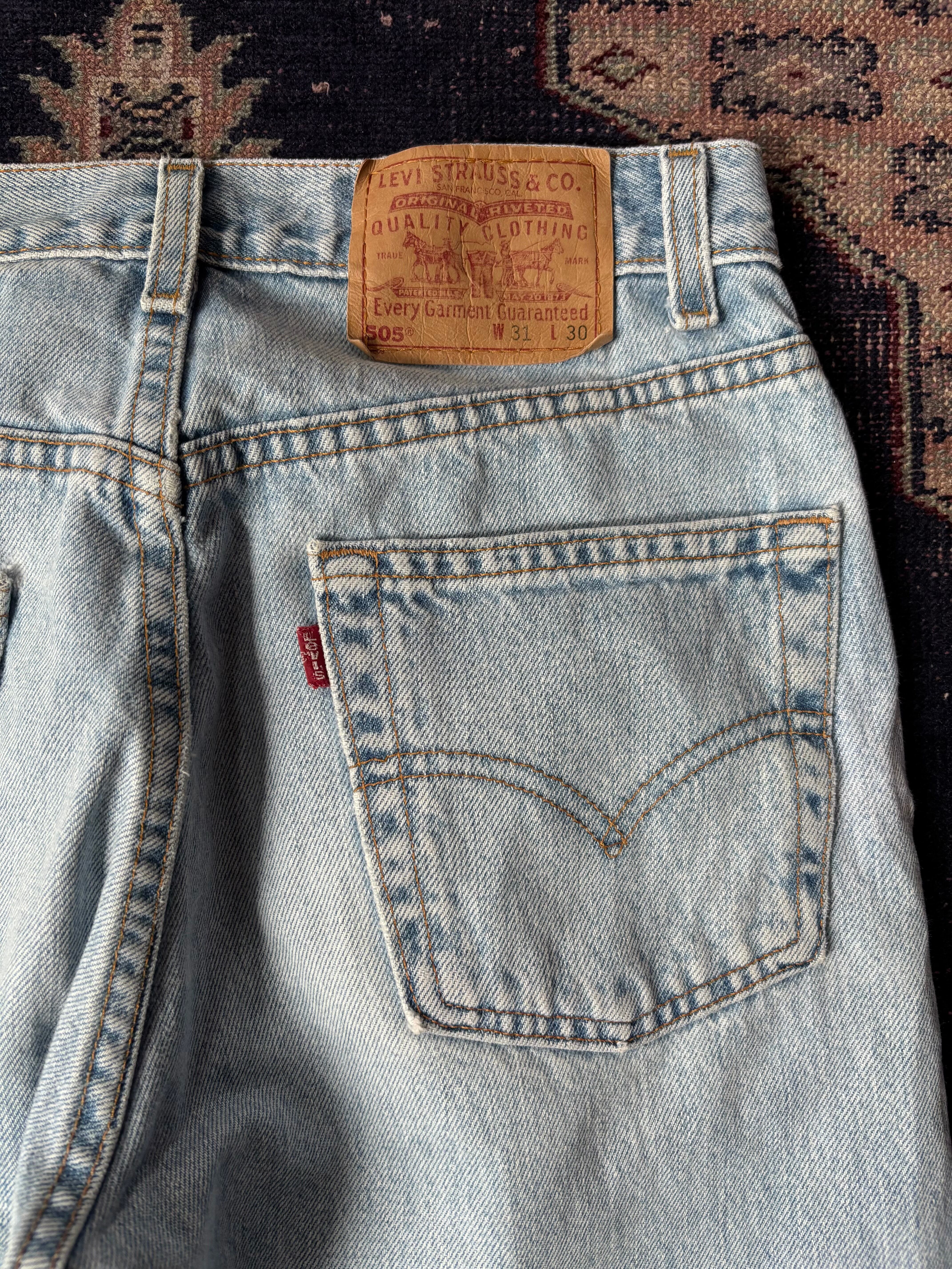 綺麗に色の抜けたアイスウォッシュカラー。深めの股上に、テーパードのかかるストレートシルエット。LEVI'Sの定番 505。USAメイドのビンテージモデル。OLD感抜群のおすすめの一本。
