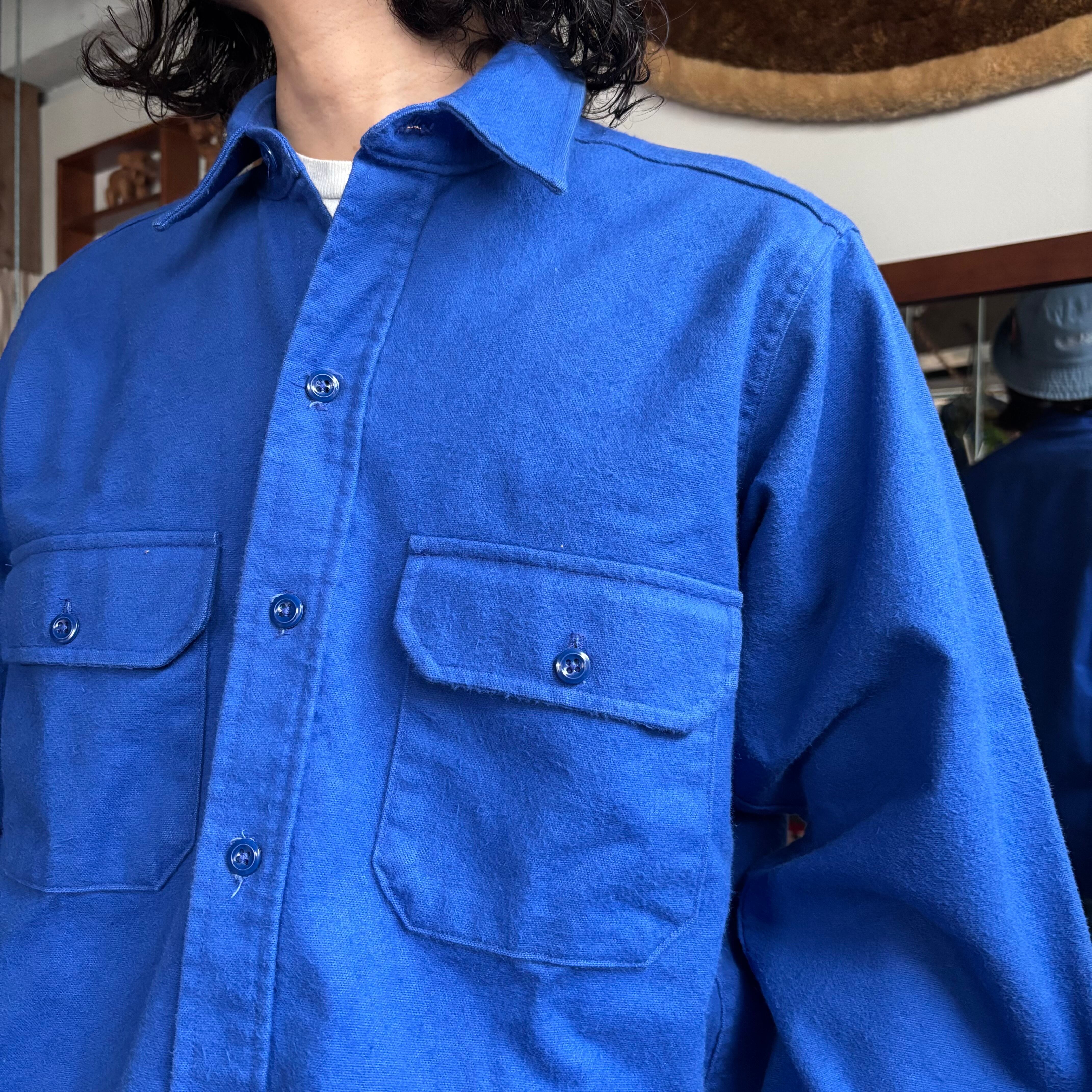 肉厚なシャモアクロス。ゆとりのあるリラックスシルエット。USAメイドの ビンテージモデル。鮮やかなロイヤルブルーに同色のボタンがクール。