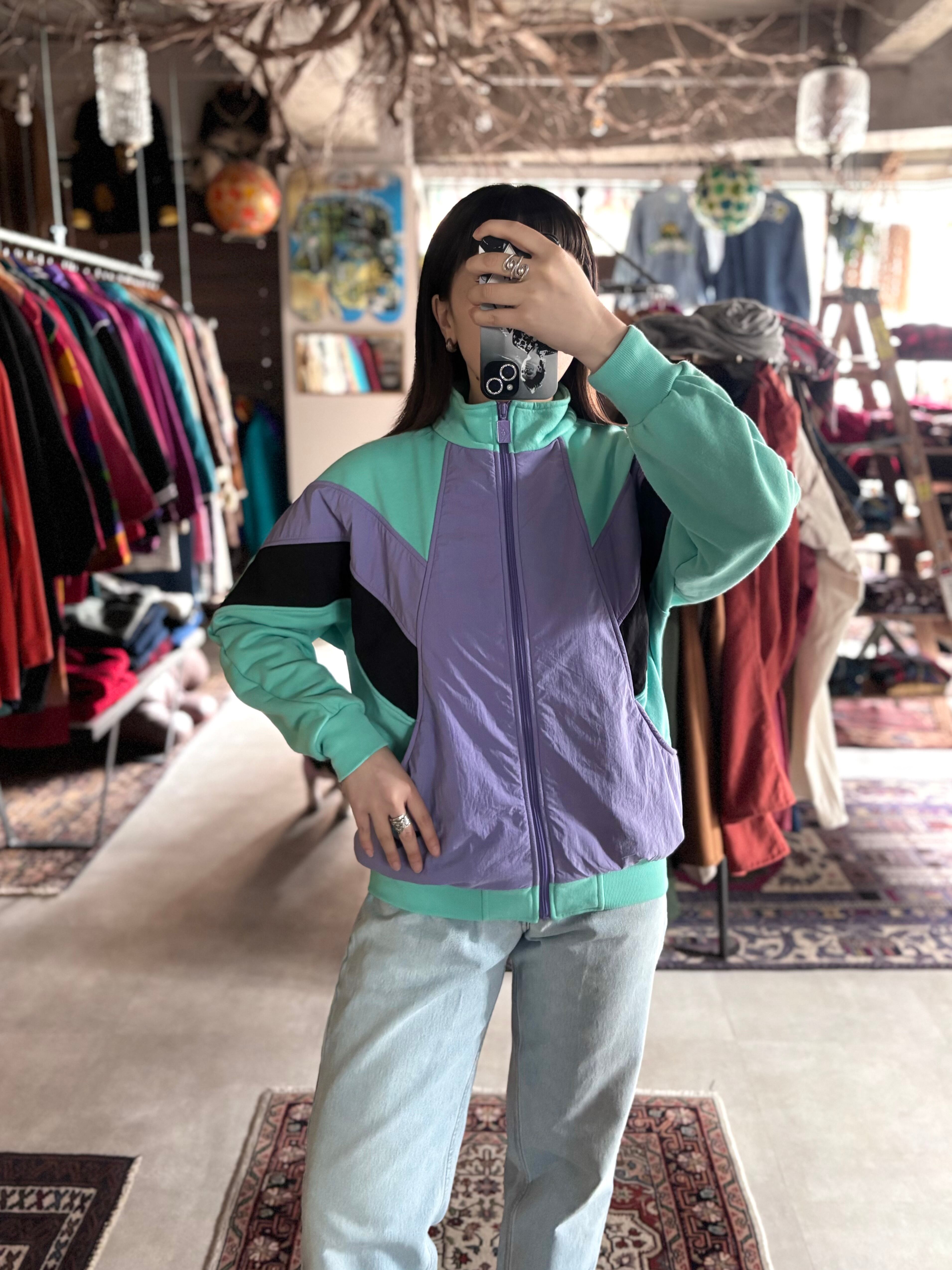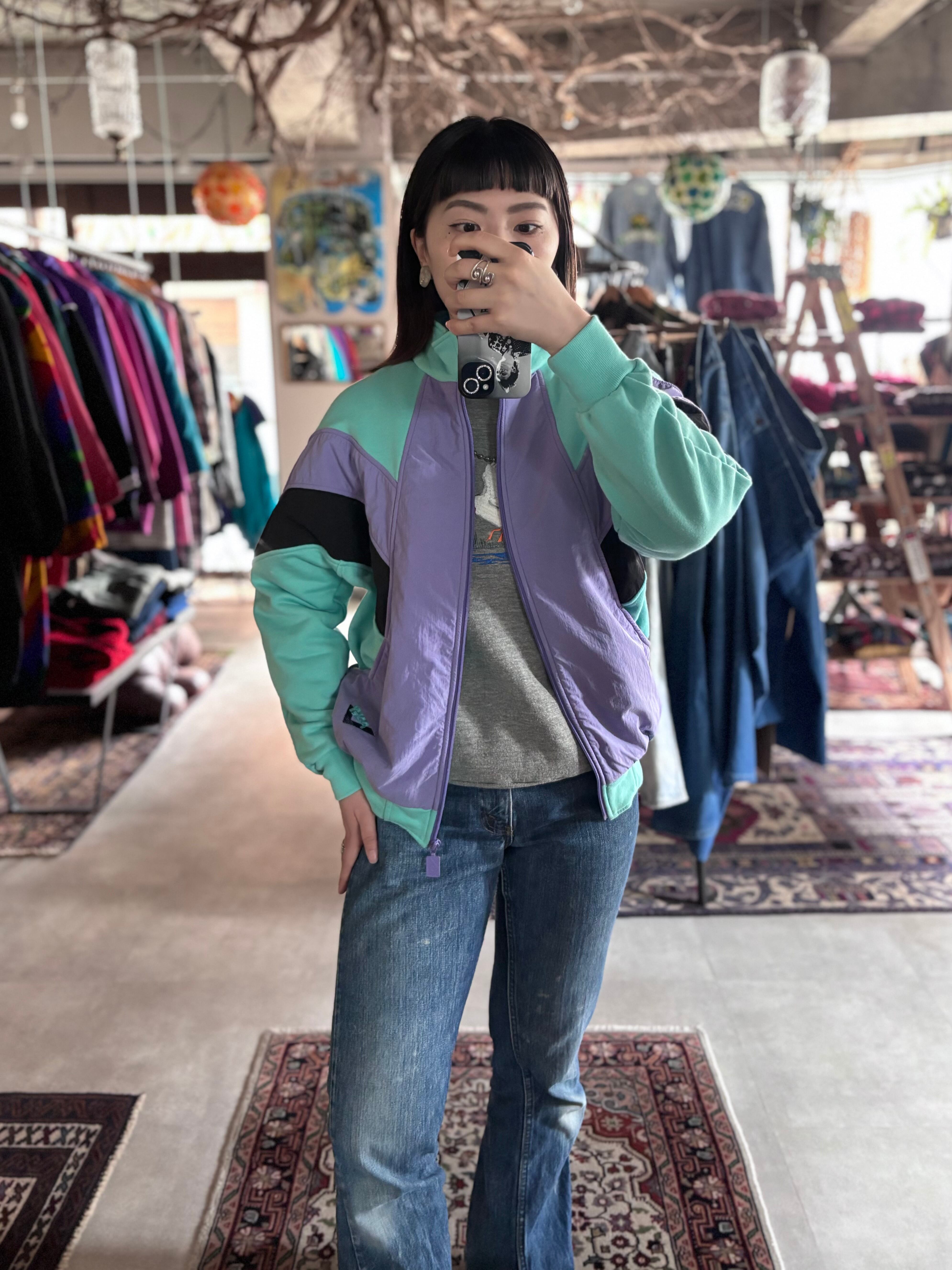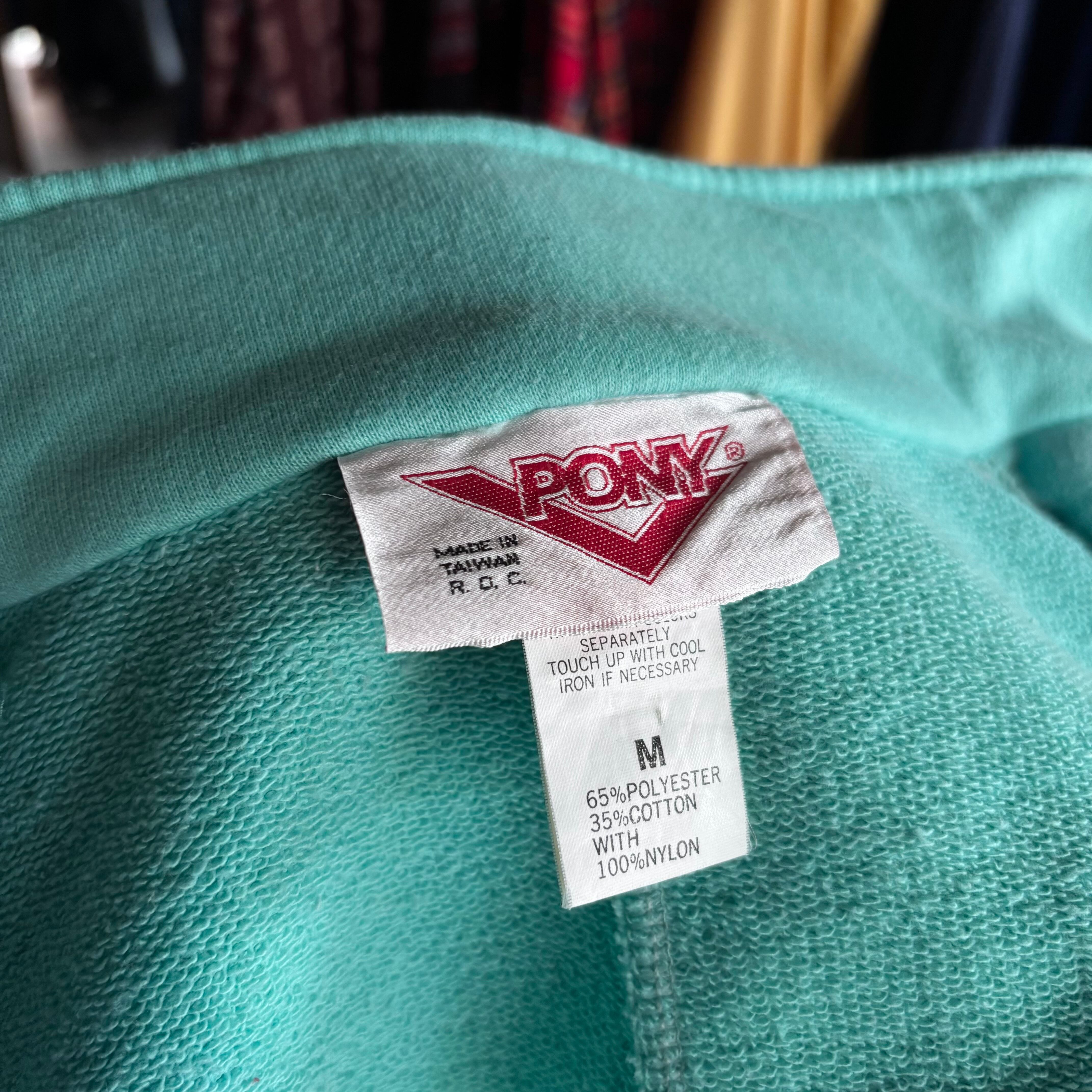 柔らかいスウェット素材と、ポリ生地の切り替え。着丈短めのリラックスフィット。80sらしいビンテージ感のあるカラーリング。レトロなセンスが魅力のPONY製。