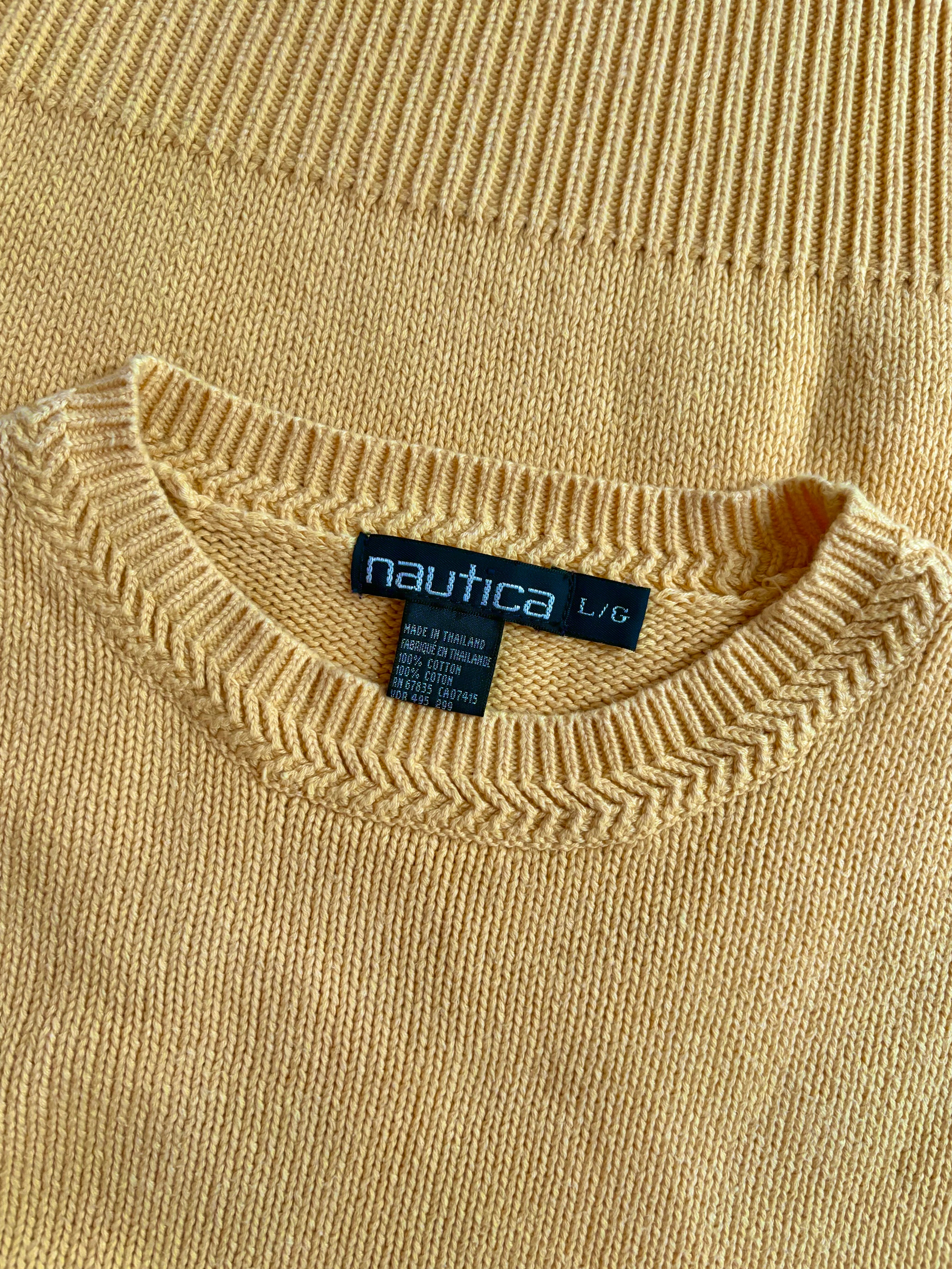 しっかりした厚みのコットンニット素材。リラックスシルエット。柔らかい印象のペールイエロー。襟周りの編み目がセンス抜群。