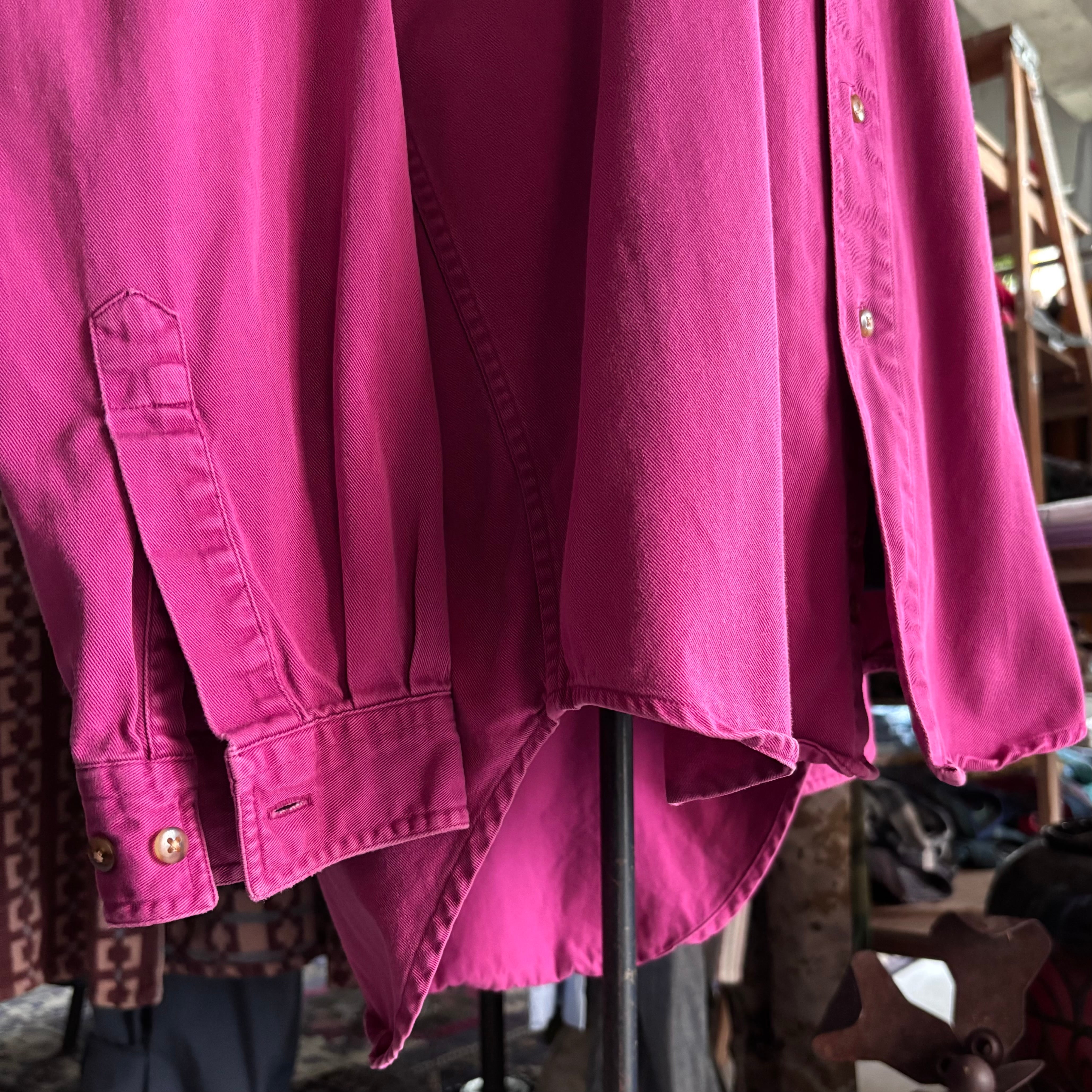 しっかりしたコットン素材。程よくゆとりのあるシルエット。ビビッドなピンクカラー。