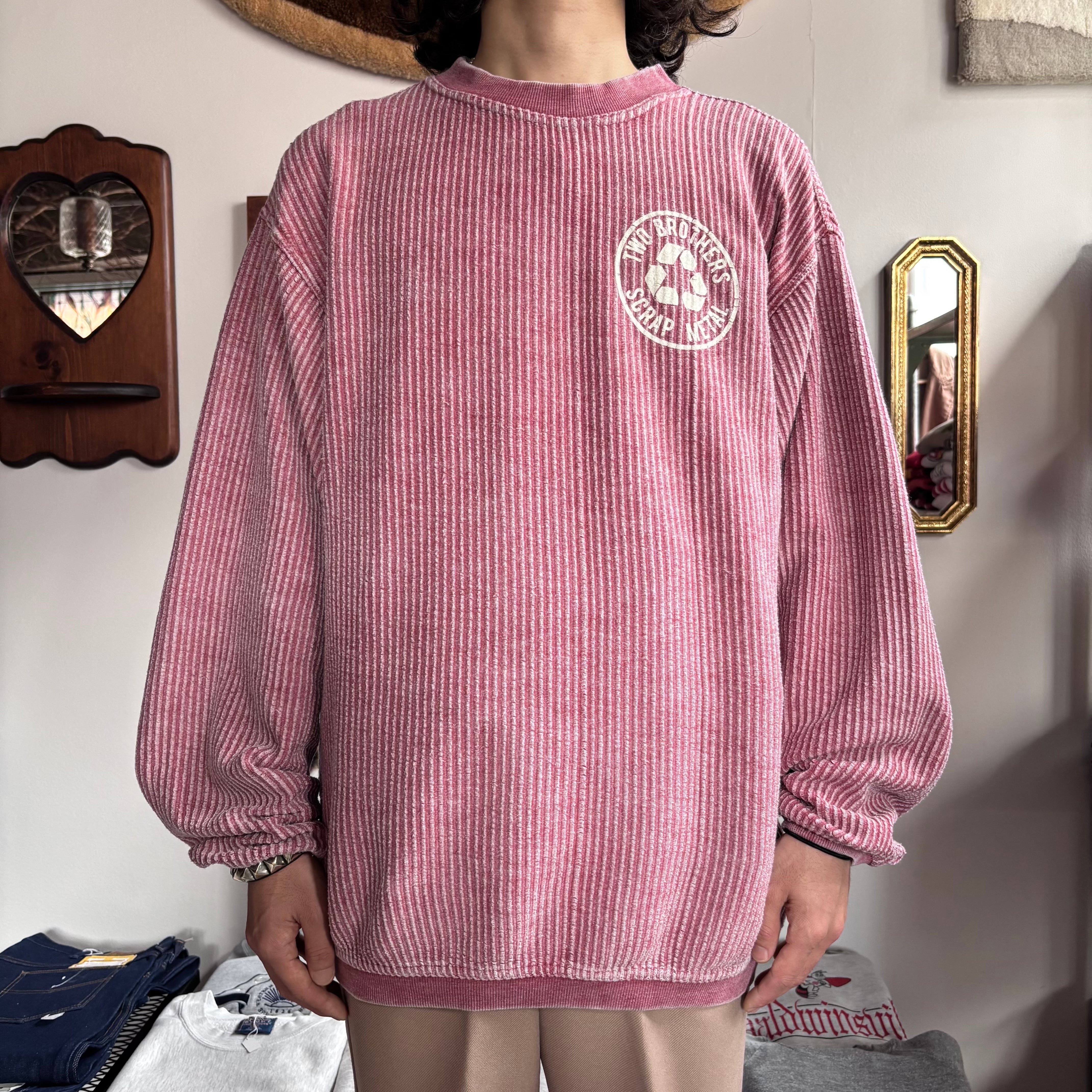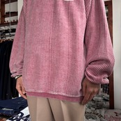 太軸コーデュロイのような生地感。ウォッシュドピンクカラー。だらっとした雰囲気に、細めのリブがお洒落感抜群。