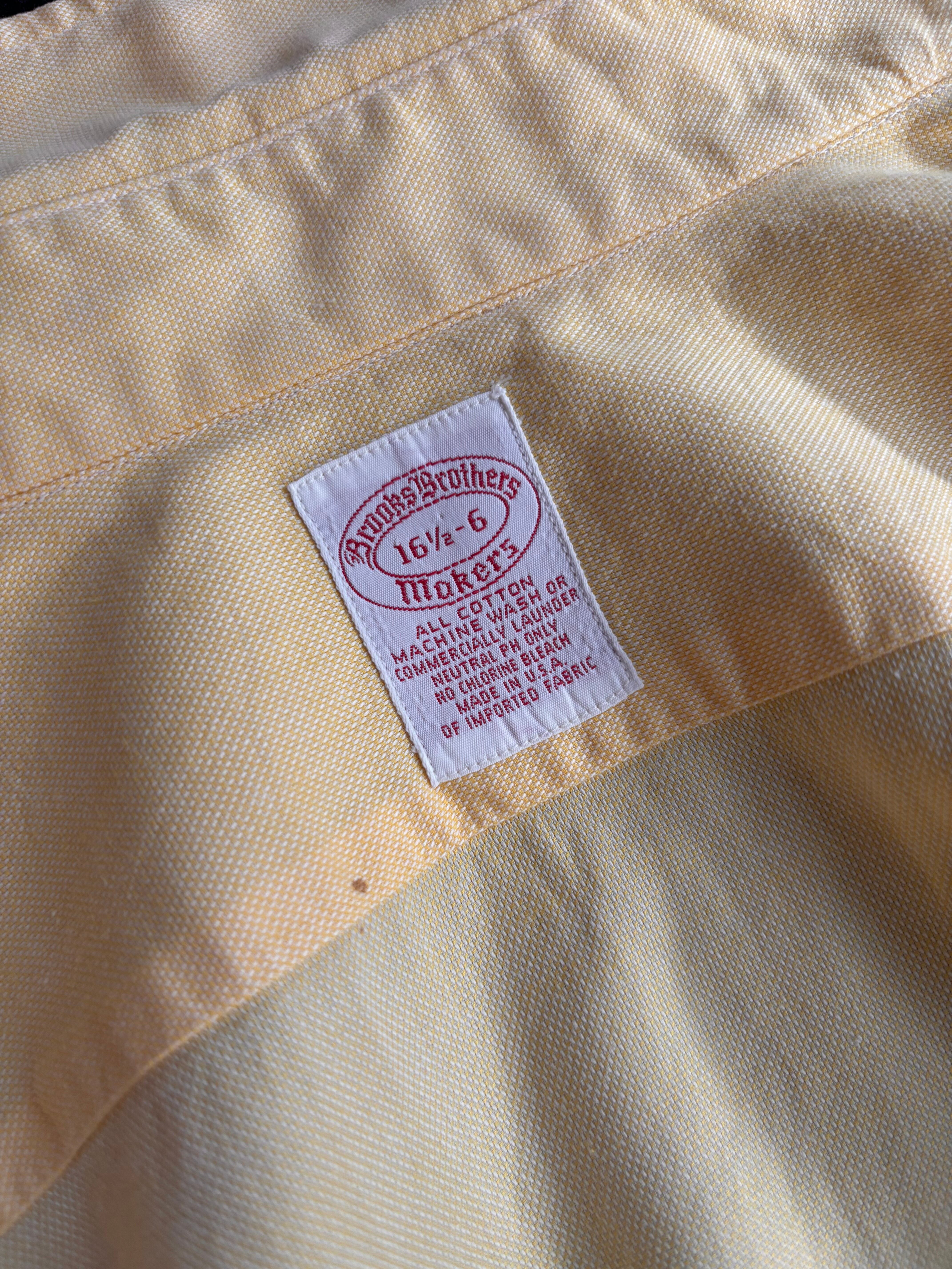 コットンオックスフォード素材。ポップなペールイエロー。ゆとりのあるリラックスシルエット。UKテイストのワイドカラー仕様。USAメイドのビンテージBROOKS製。