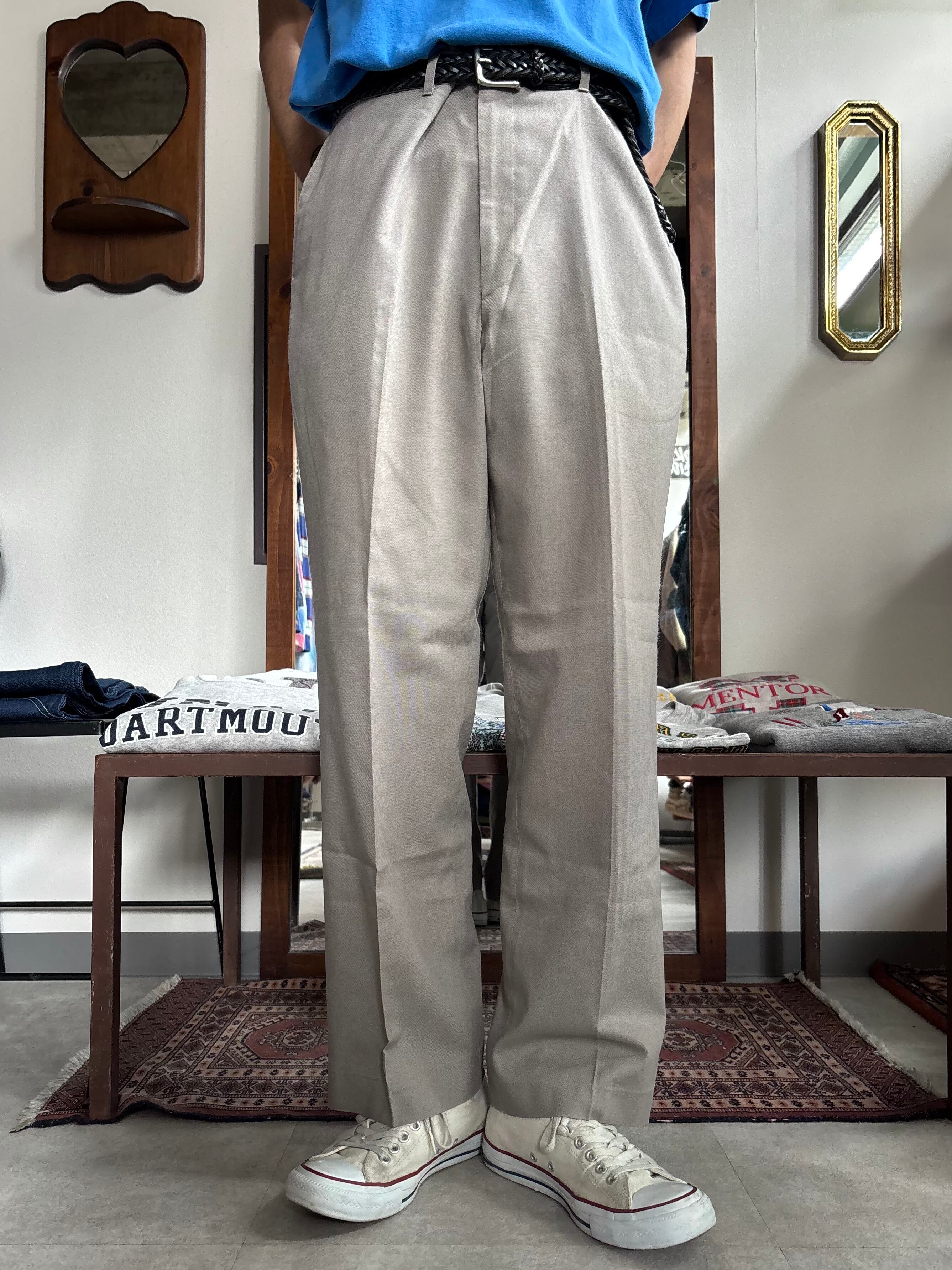 ザラっとしたコットンポリ素材。ジェントルなグレーカラー。太めのストレートシルエット。ノータック。USAメイドのHAGGAR製。