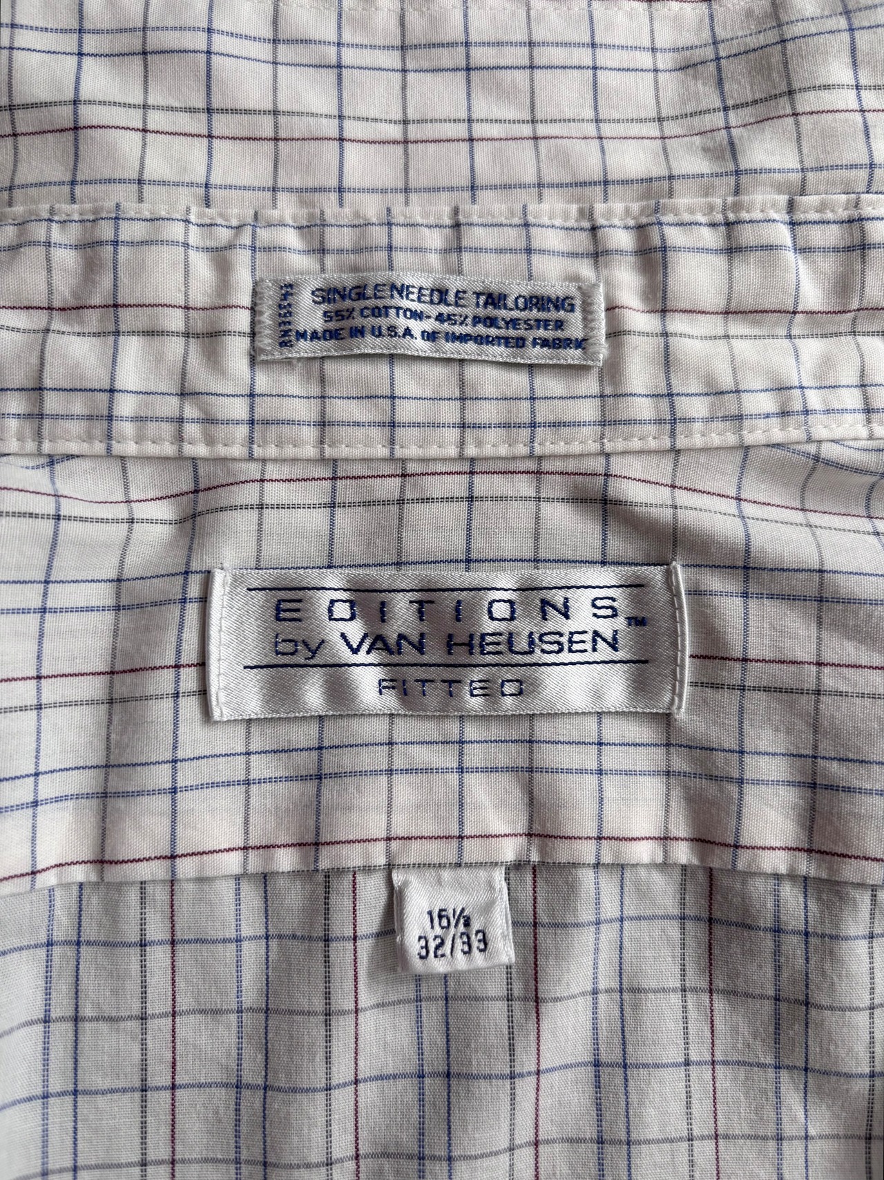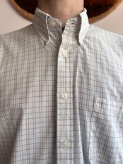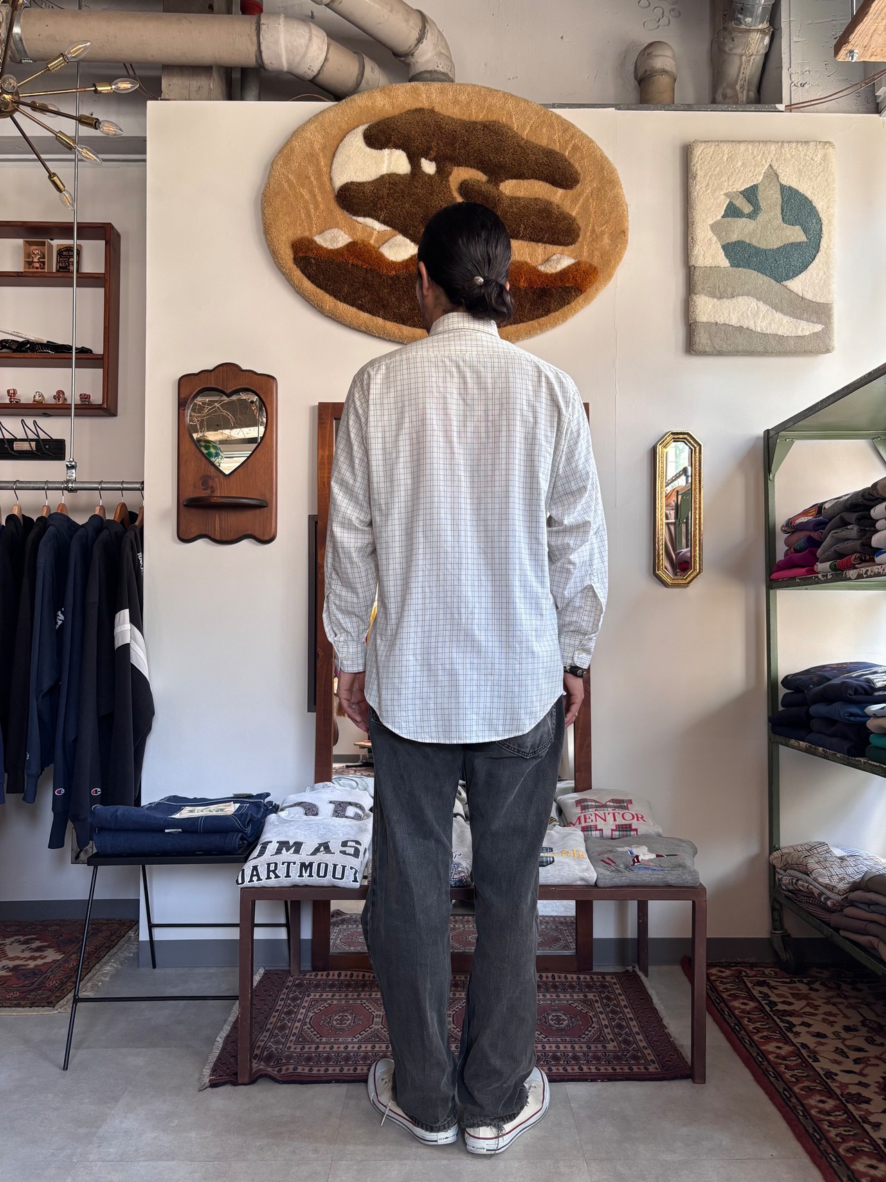 コットンポリのブロード生地。レトロなチェックパターン。クラシカルフィット。仕立ての良いシングルニードルテーラリング。USAメイドの80s。OLDなテイストが好みの方におすすめです。