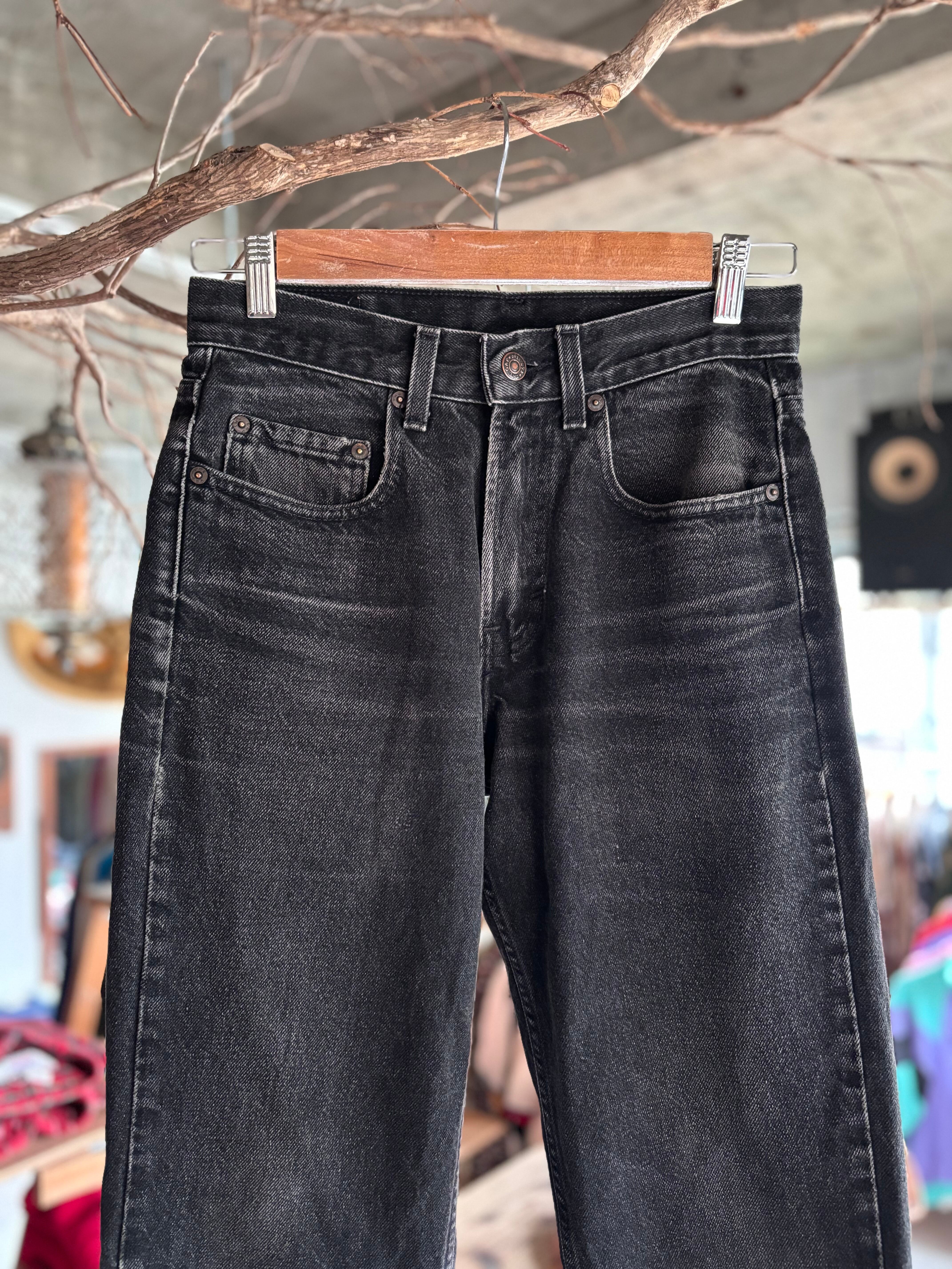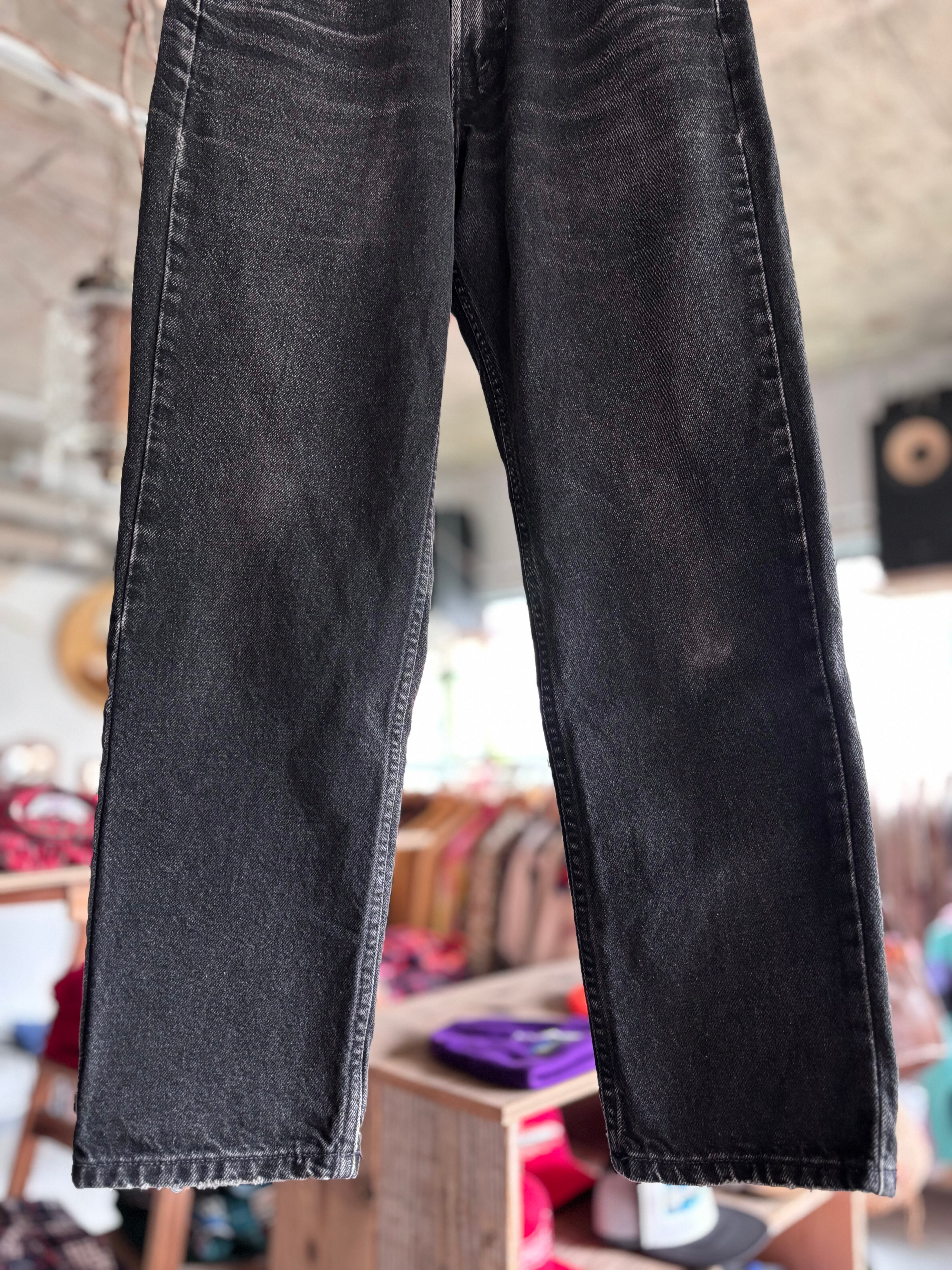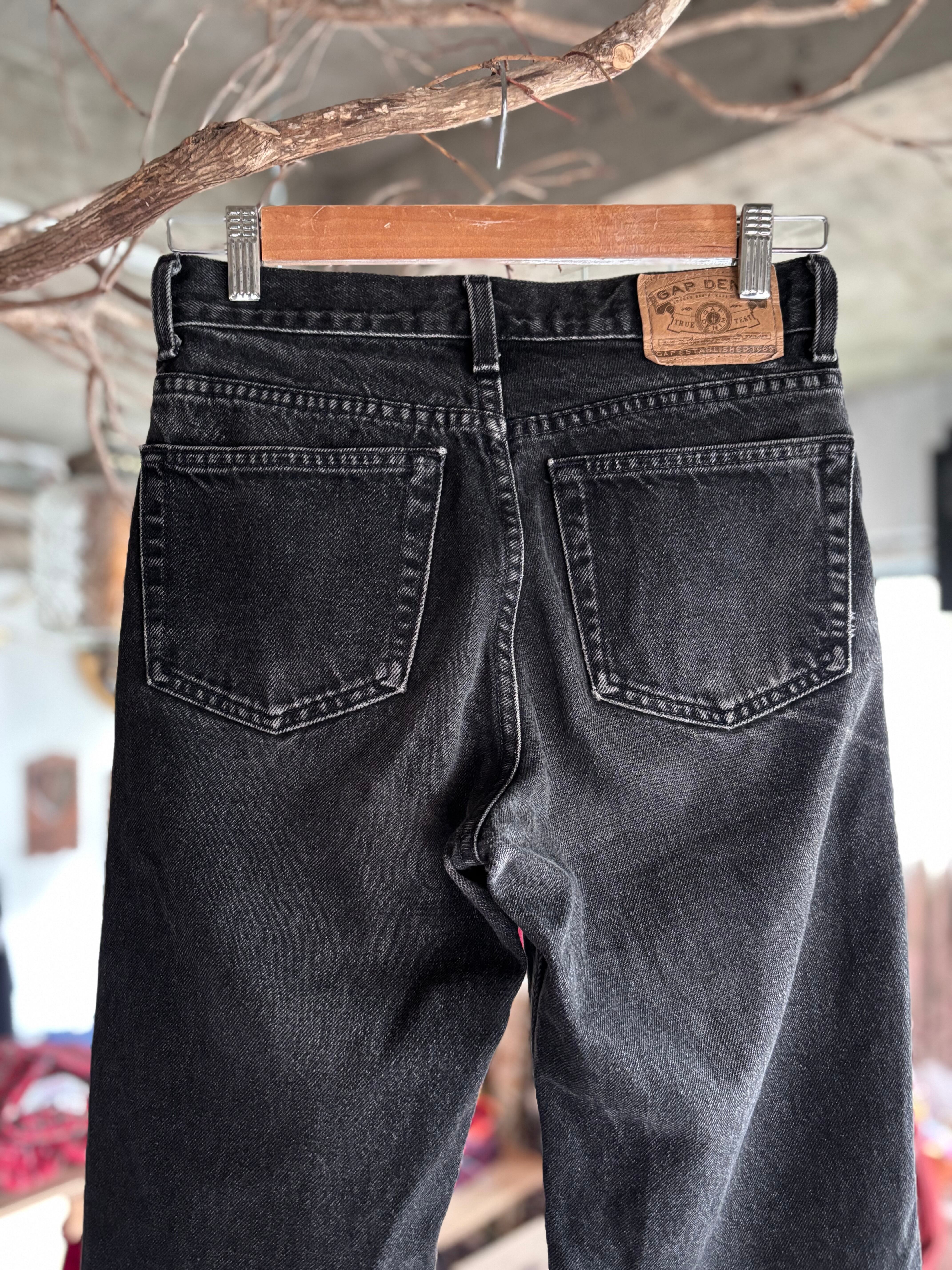 通称、後染めタイプのブラックデニム。コンパクトなジャストフィットに、ナチュラルストレートシルエット。しっかりヒゲ入り。90s USAメイドのOLD GAP製。
