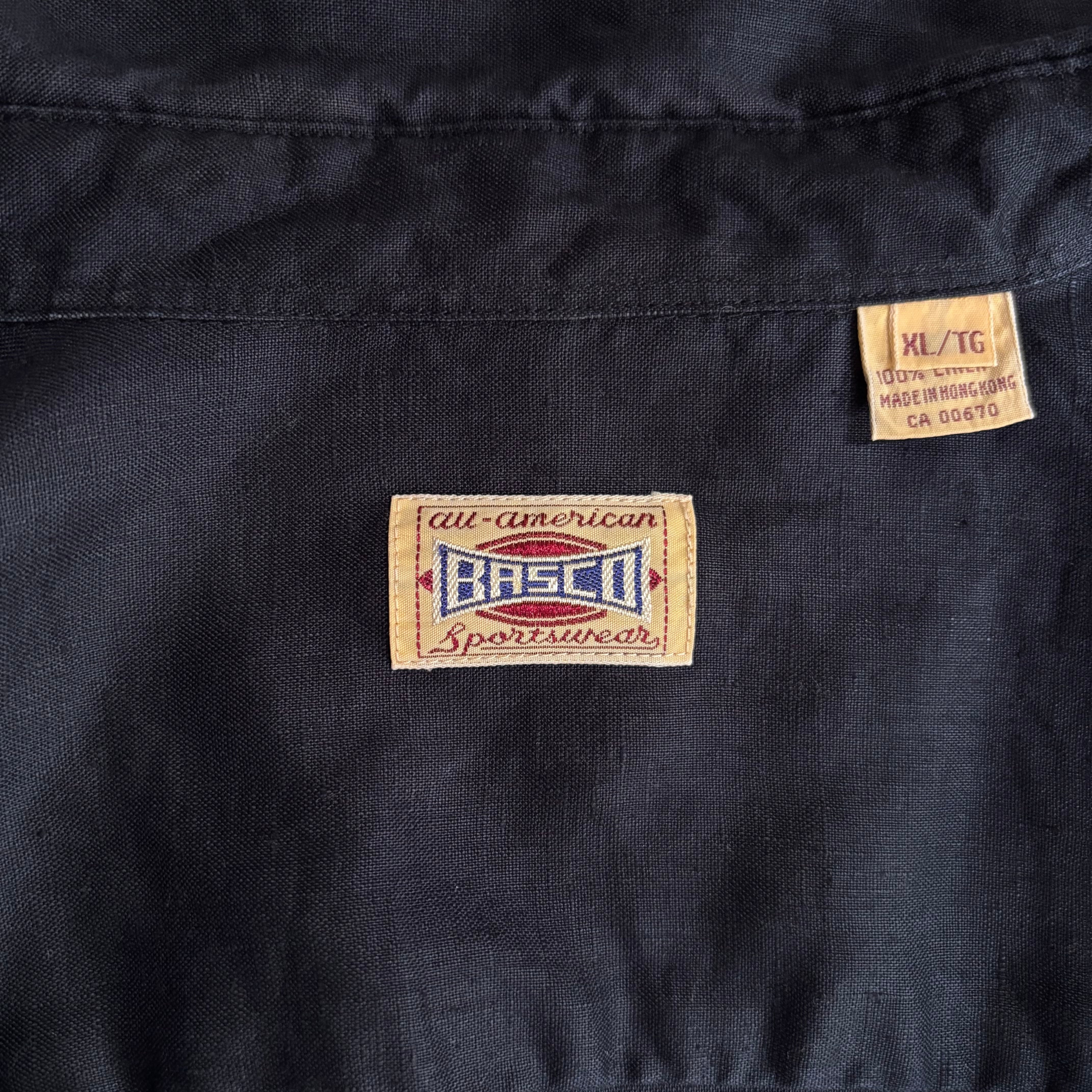 重めの上質リネン素材。ミッドナイトネイビー。リラックスフィット。襟と、ポケット口に飾りステッチ入り。アーム周り、身柄ともにダブルステッチ。