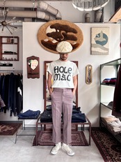 厚手のコットンポリ素材。老舗パンツメーカーcorbinオリジナルのprime tropical なる、レトロなパターンのファブリック。コンパクトなストレートシルエット。棒TALON仕様。クラシカルな印象のスラックス。