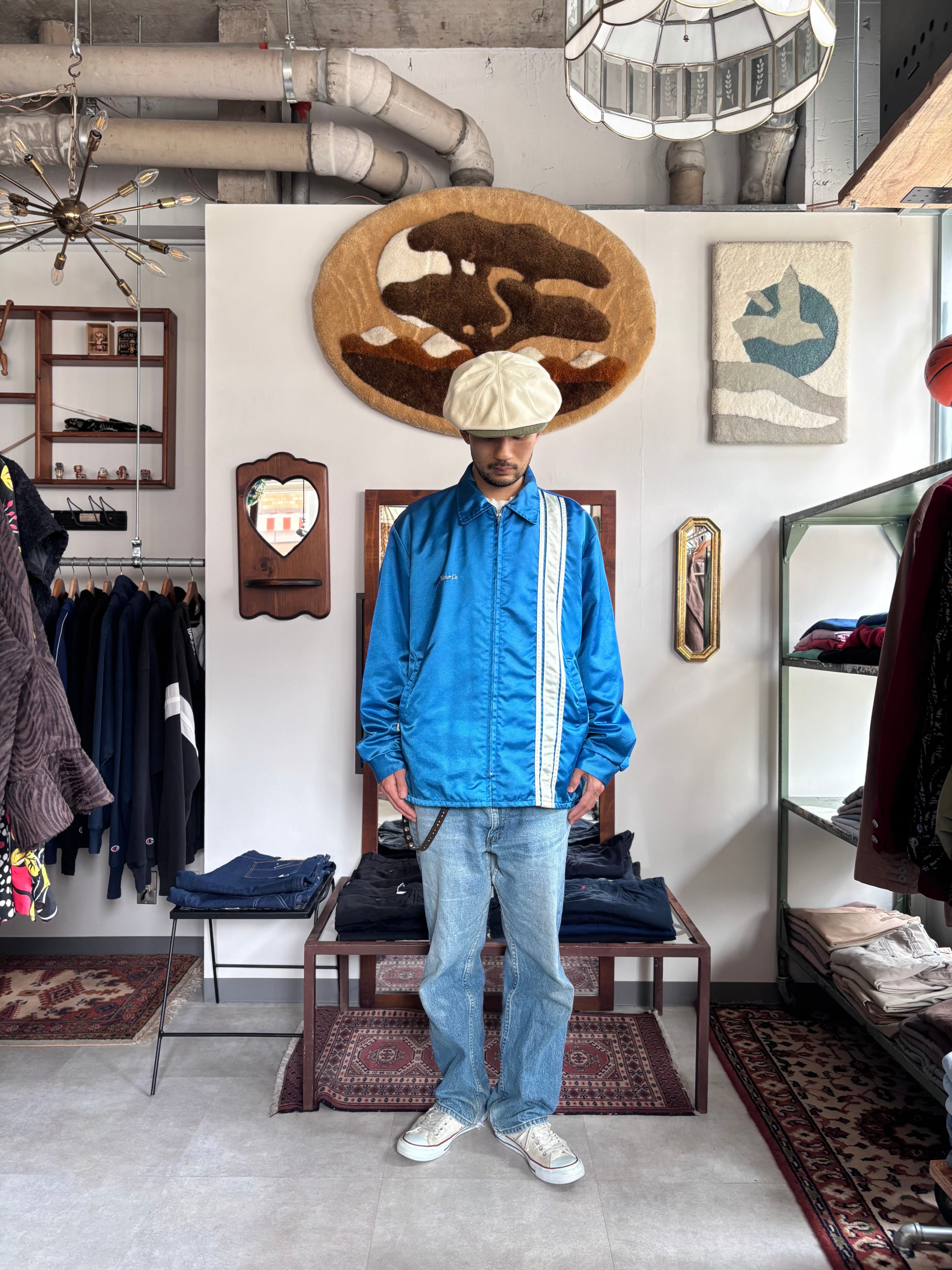 しっかりめのサテン素材。裏地に薄手のフリースライナー仕様。リラックスフィット。シンプルなコーチジャケットスタイル。ディテールのバランスが絶妙なOLDモータージャケット。