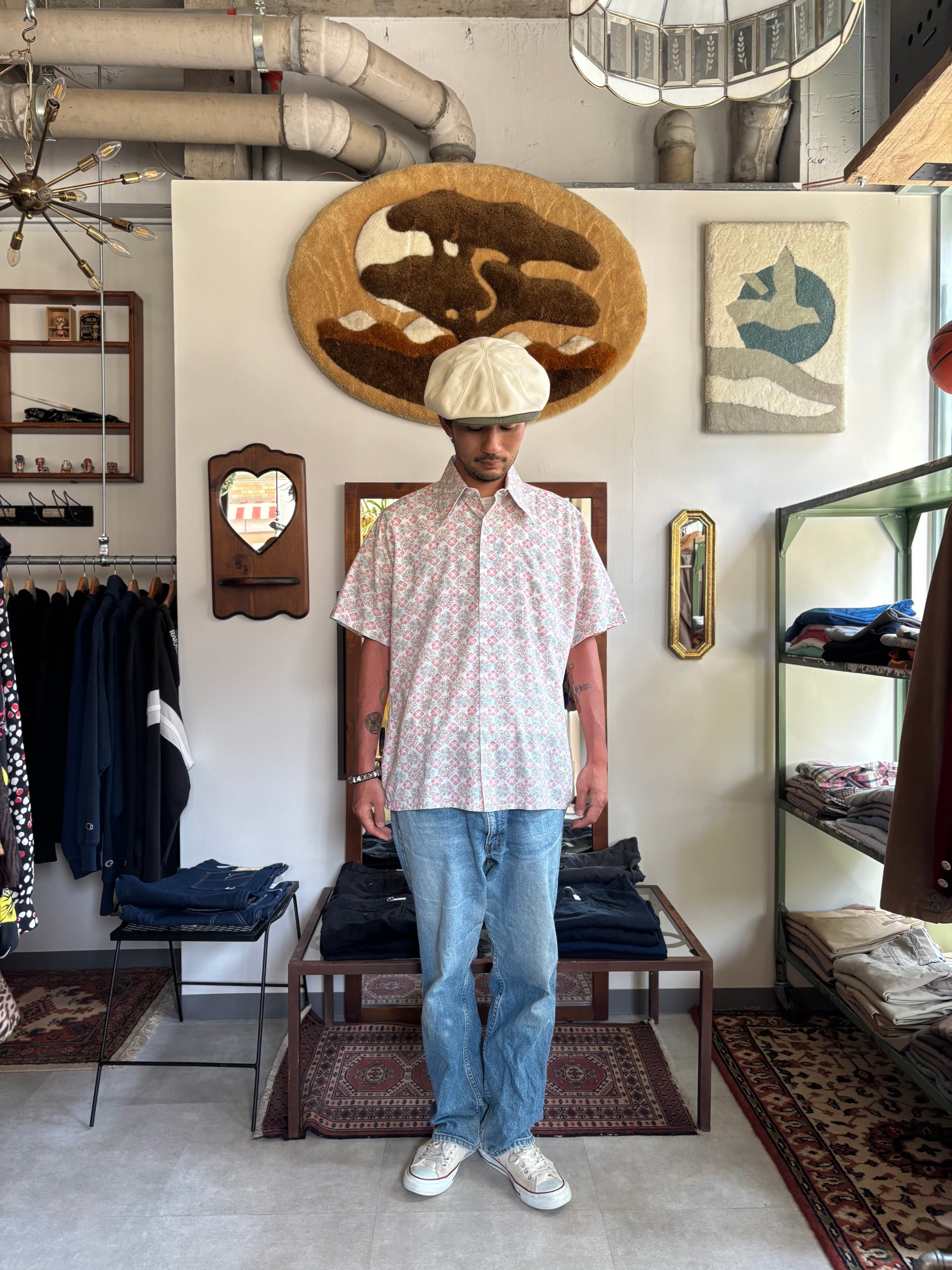 軽い着心地のコットンポリ素材。程よくゆとりのあるフィット。レトロな総柄パターン。70s arrow製のビンテージモデル。