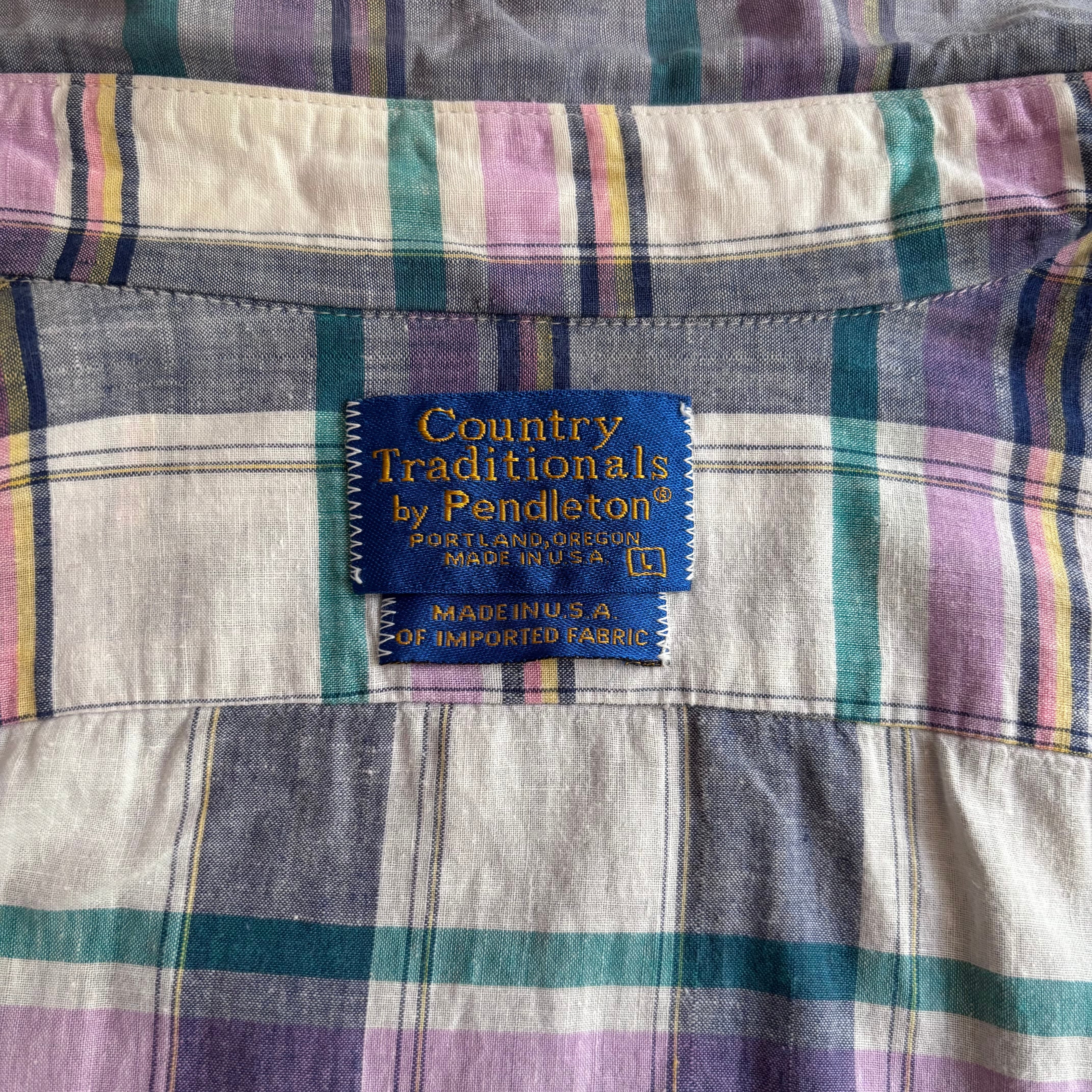 軽い着心地のコットン素材。淡いマドラスパターン。程よくゆとりのあるフィット。80s Pendleton 製のビンテージモデル。