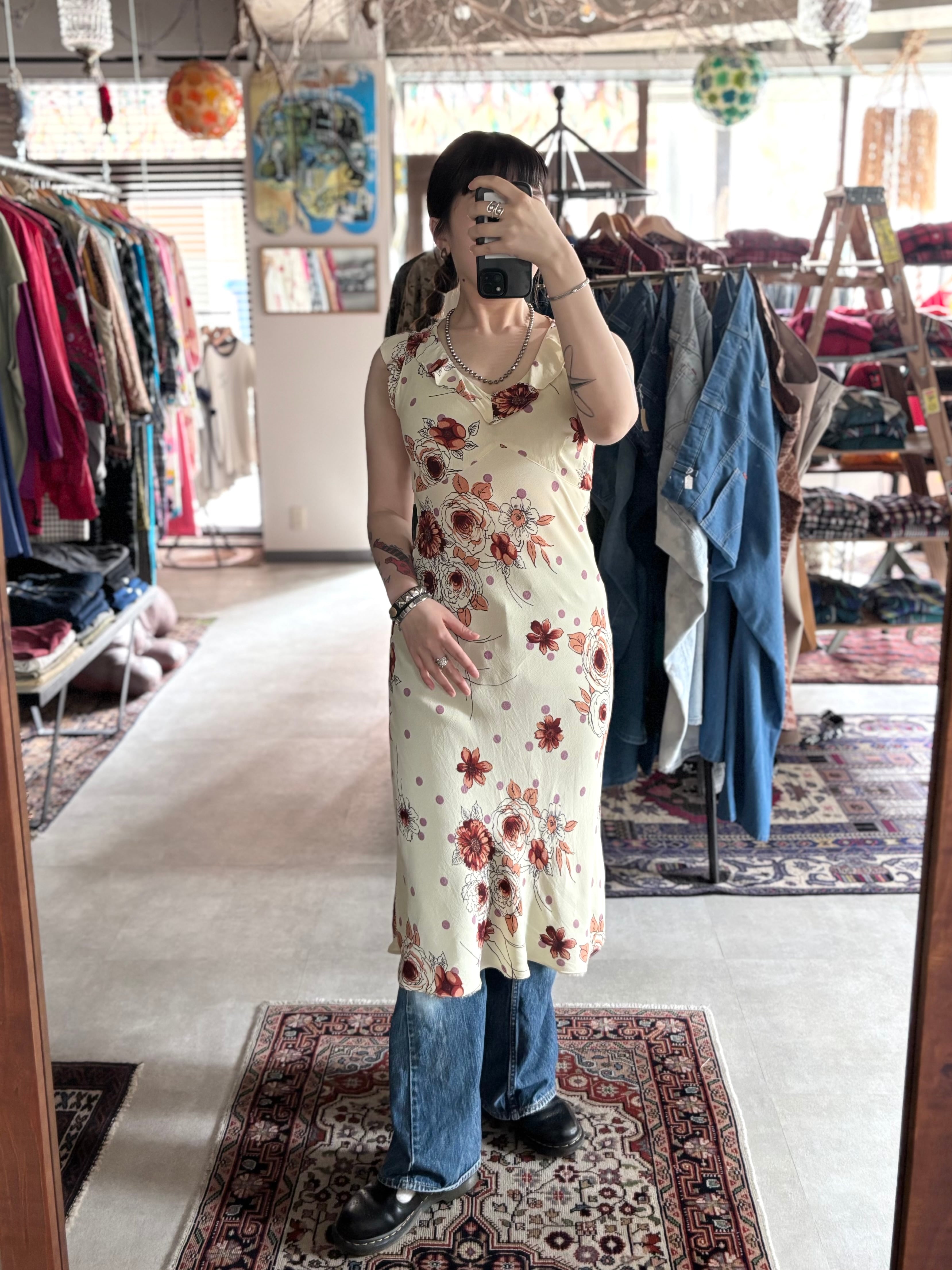 薄手でシャリっとした着心地のレーヨンワンピース。伸縮性のある生地感。ジャストめフィッティング。レディライクなディティールたっぷりで、可愛い印象。普段使いはもちろん、パーティーコーデにもおすすめです。