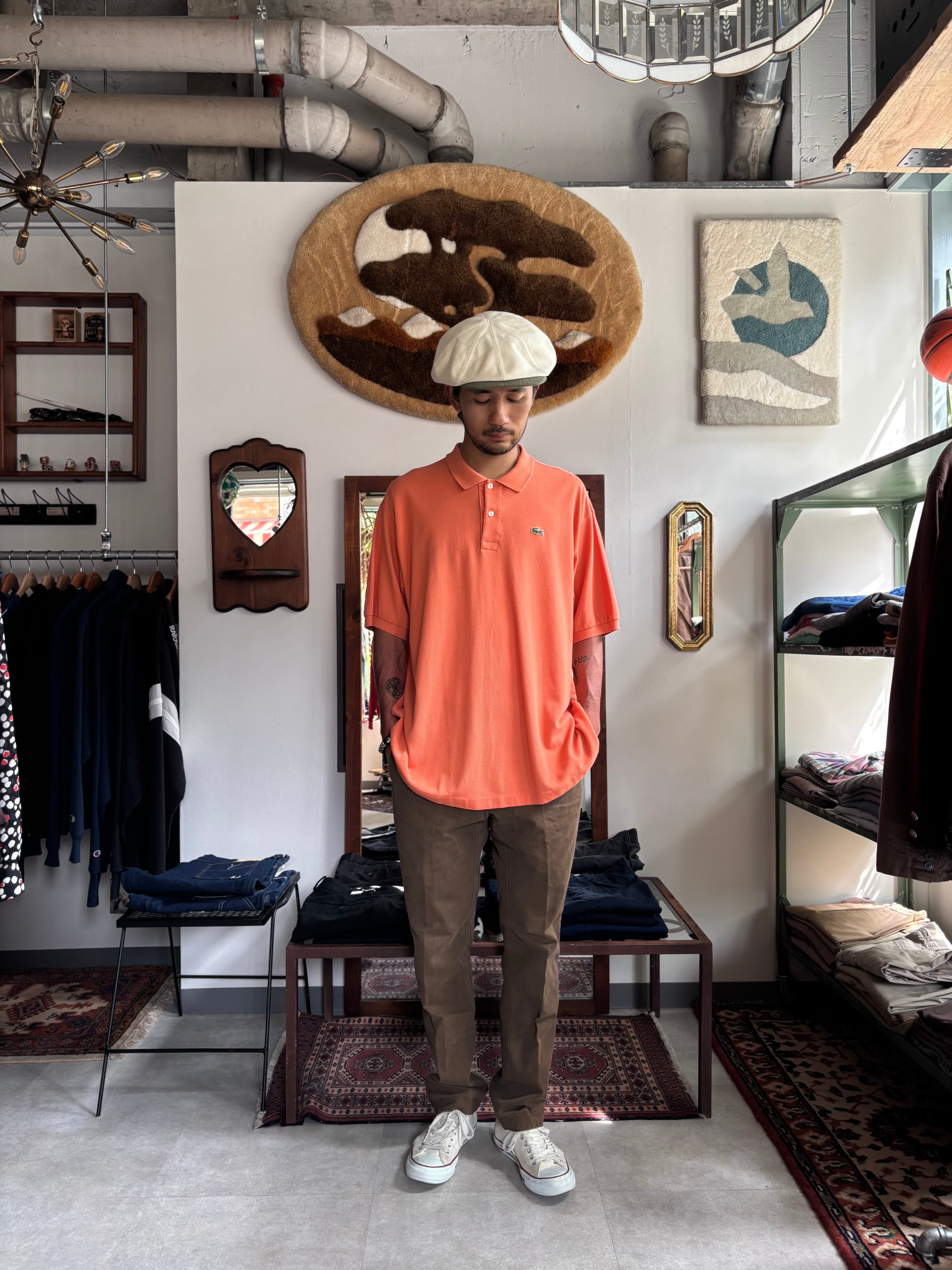 コットン鹿子素材。タンジェリンオレンジカラー。リラックスフィット。クラシカルスタイルがお好みの方におすすめのOLD LACOSTE製。生産はPERUです。