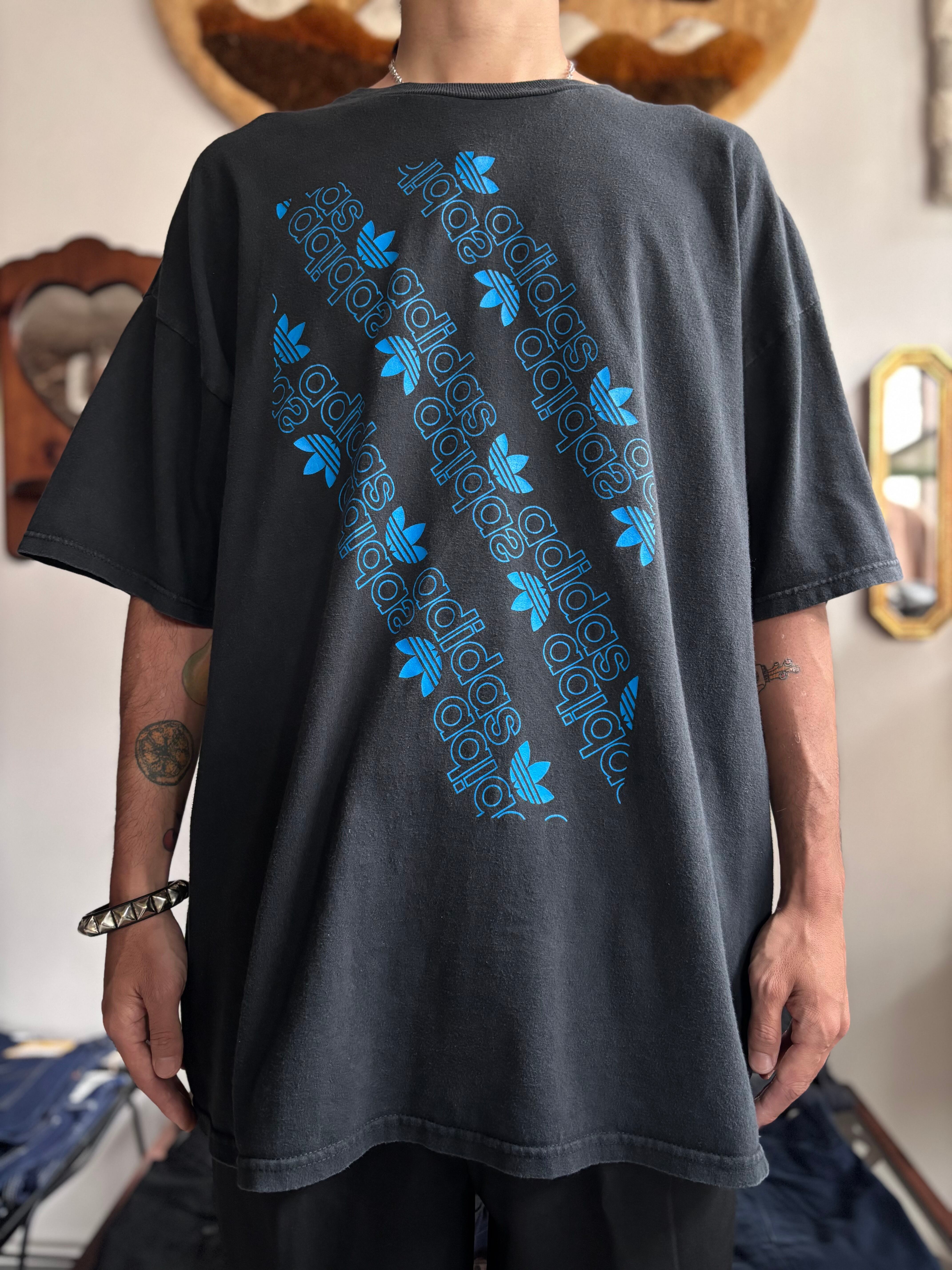 色褪せたブラックカラー。リラックスフィット。 OLD感が際立つトレフォイルロゴのスリーストライプ。