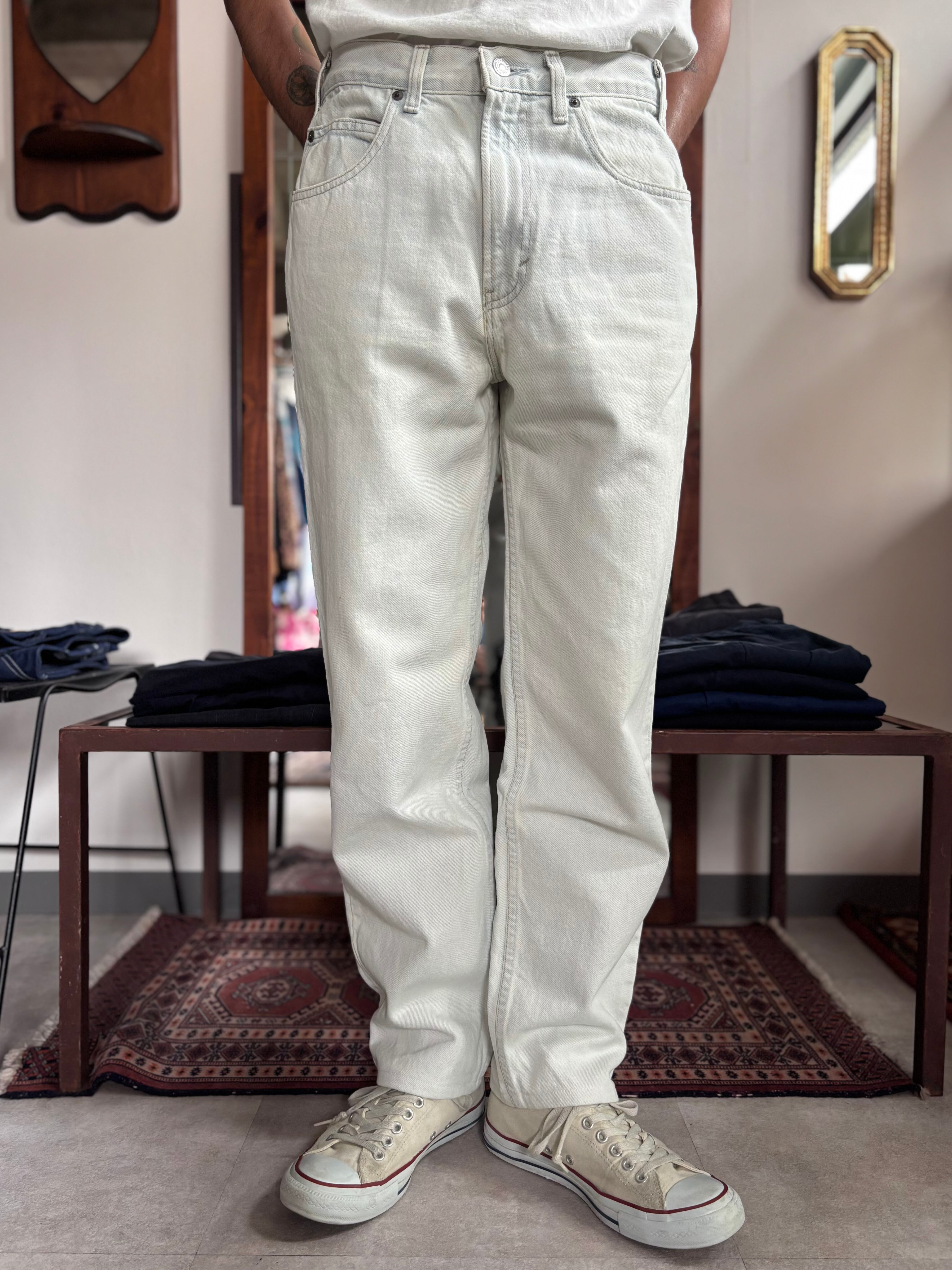 アイスウォッシュデニム。股上深めのテーパーシルエット。大きめのポケットがリラックスした雰囲気。USAメイドの90s OLD GAP。ホワイトデニムのようなお洒落感。