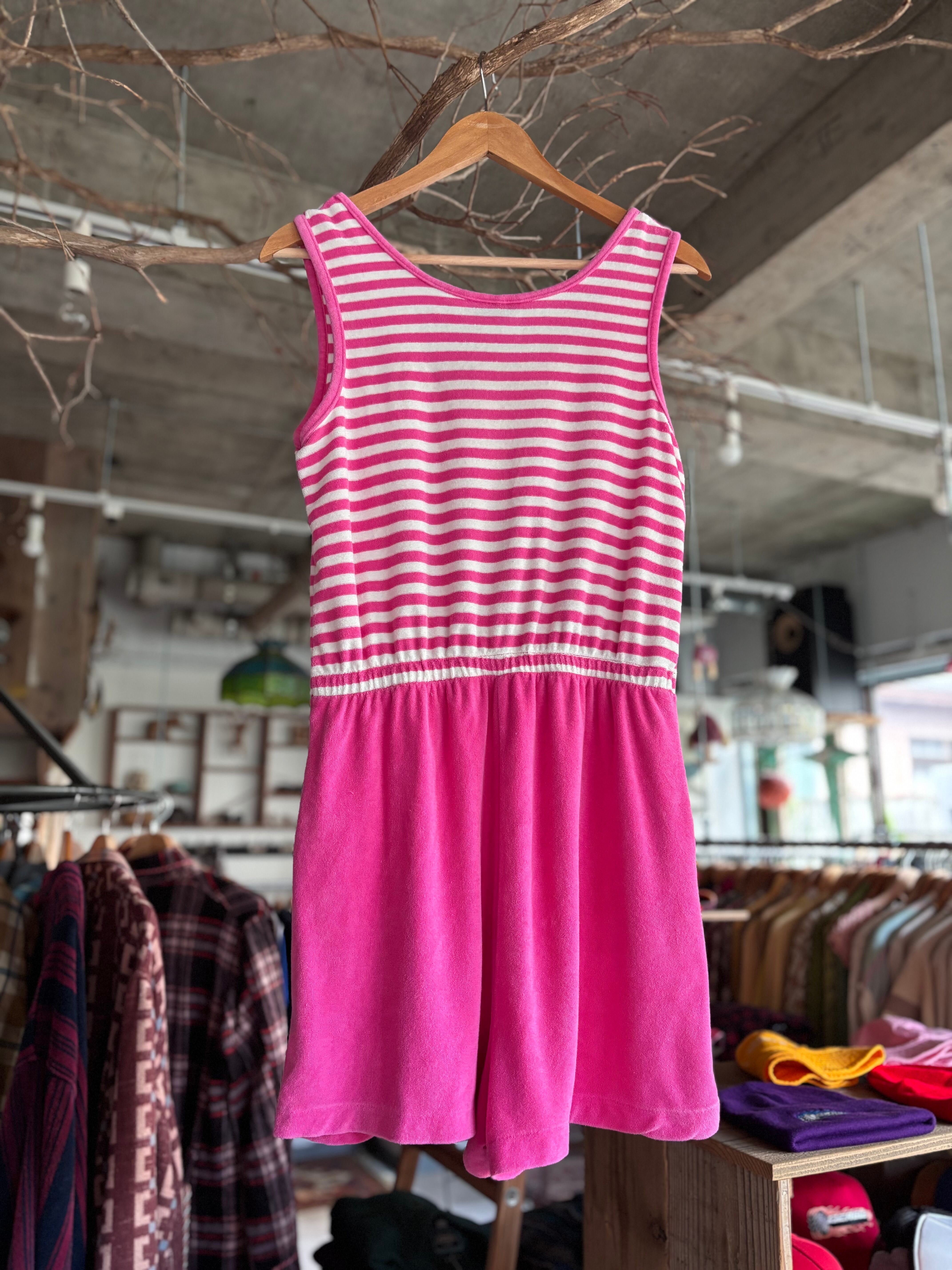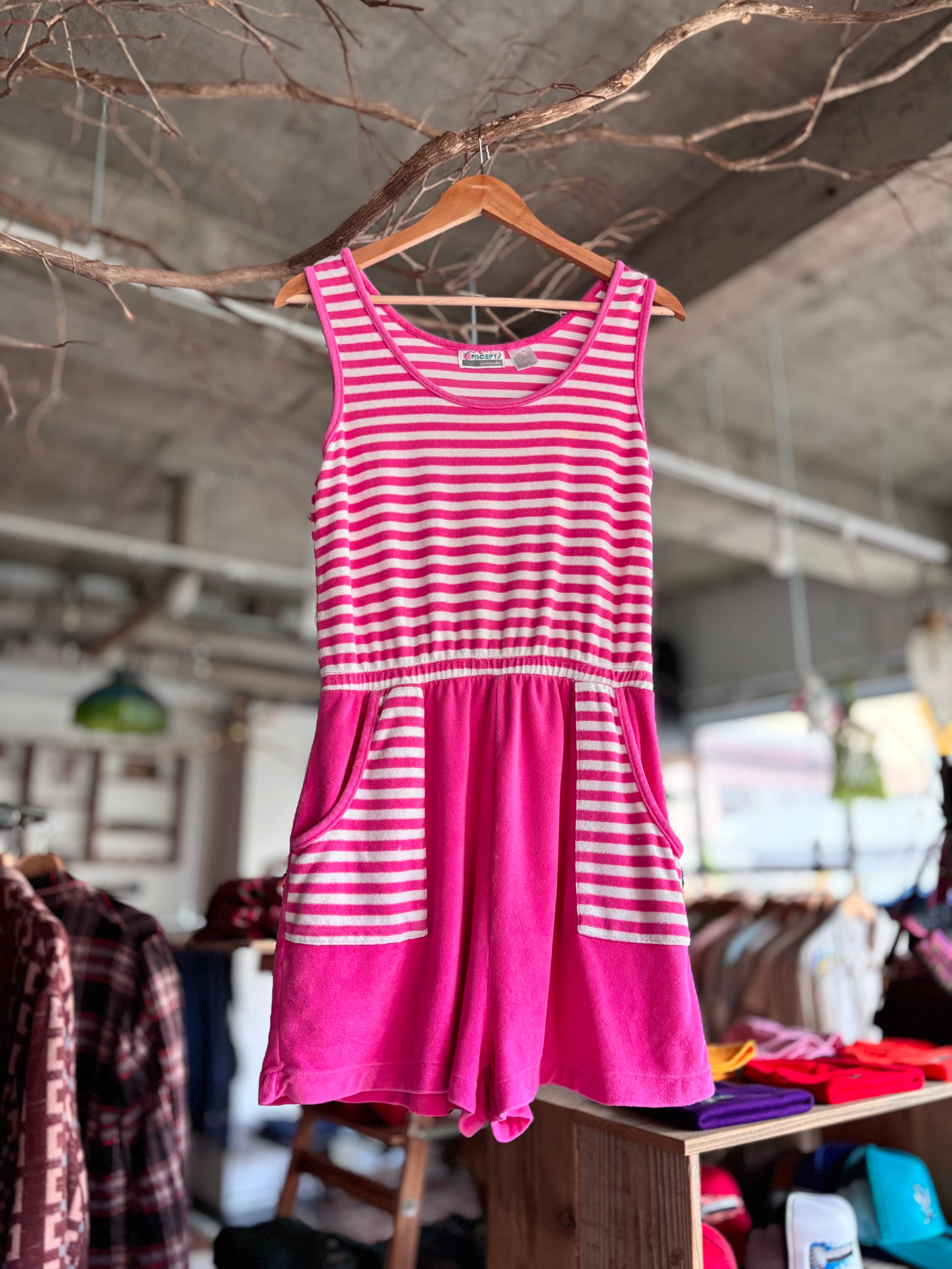 80年代生産のミニ丈オールインワン。程よい厚みで伸縮性のあるコットン×ポリ混紡のパイル素材(タオル生地のような肌触り)。程よくゆとりのあるシルエット。海やプール上がりに着たくなるようなデザインと質感。ポケット付きなのもポイント高いです。OLDでも入荷の少ないタイプ。ピンときた方におすすめです。