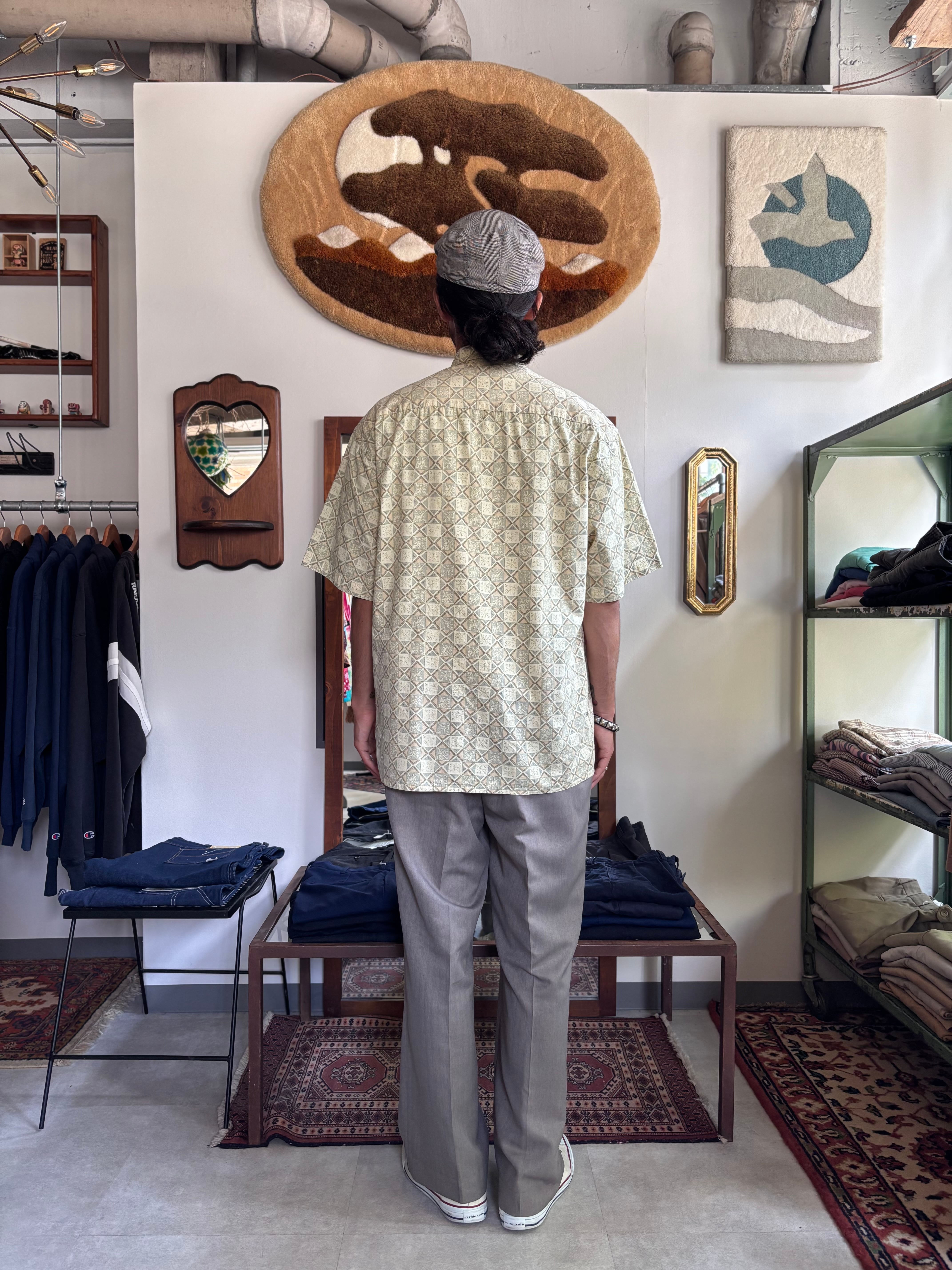 ハリのあるコットン生地。落ち着いたペールイエローベース。リラックスフィット。片胸ポケットのシンプルなディテール。彩がありつつ、クラシカルな大人の柄シャツ。