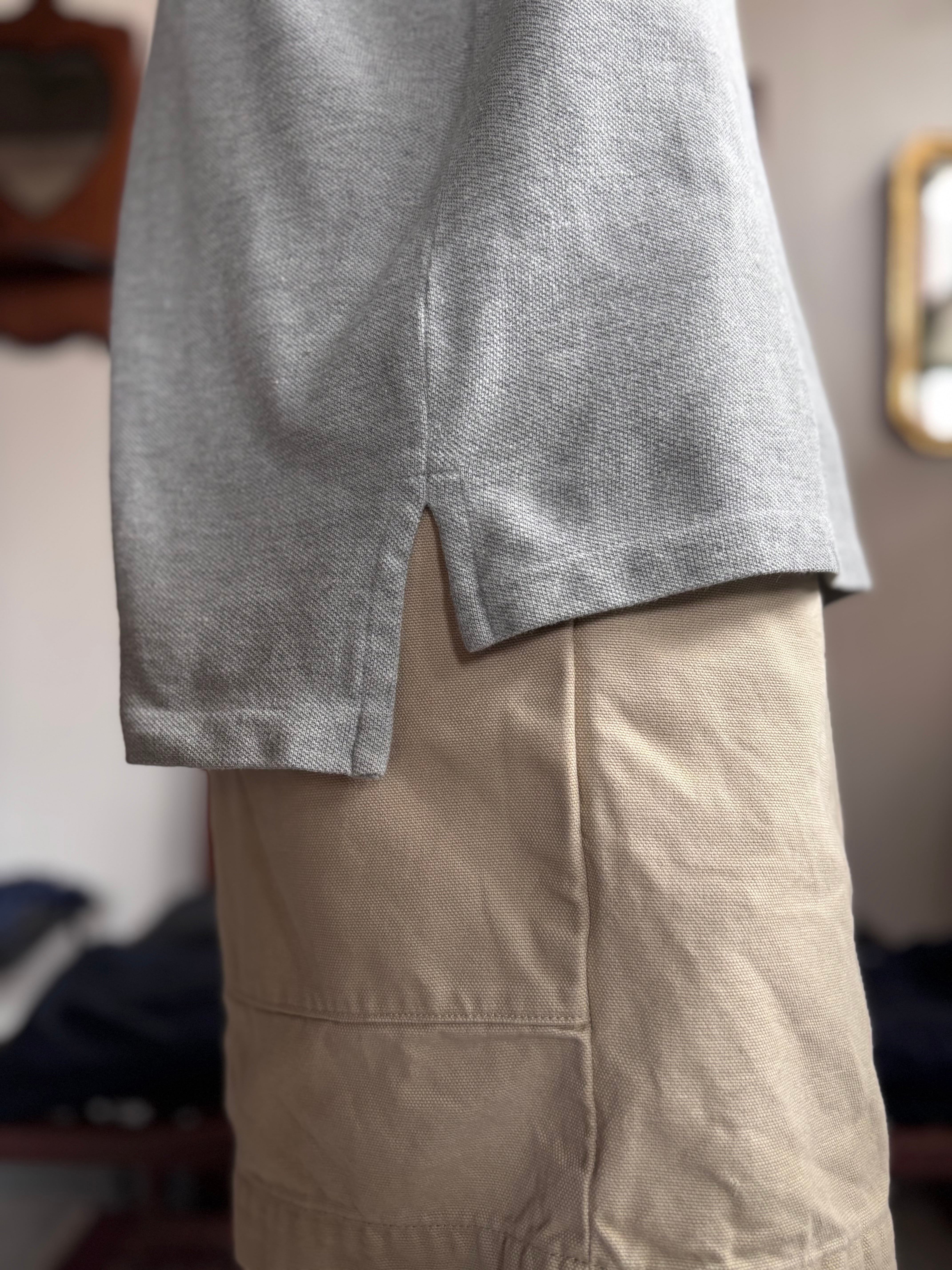 コットン鹿子素材。リラックスフィット。大人のロングテール仕様。一切、装飾の入らない潔いグレーの統一感。無地へのこだわりを感じるJ,CREW製。