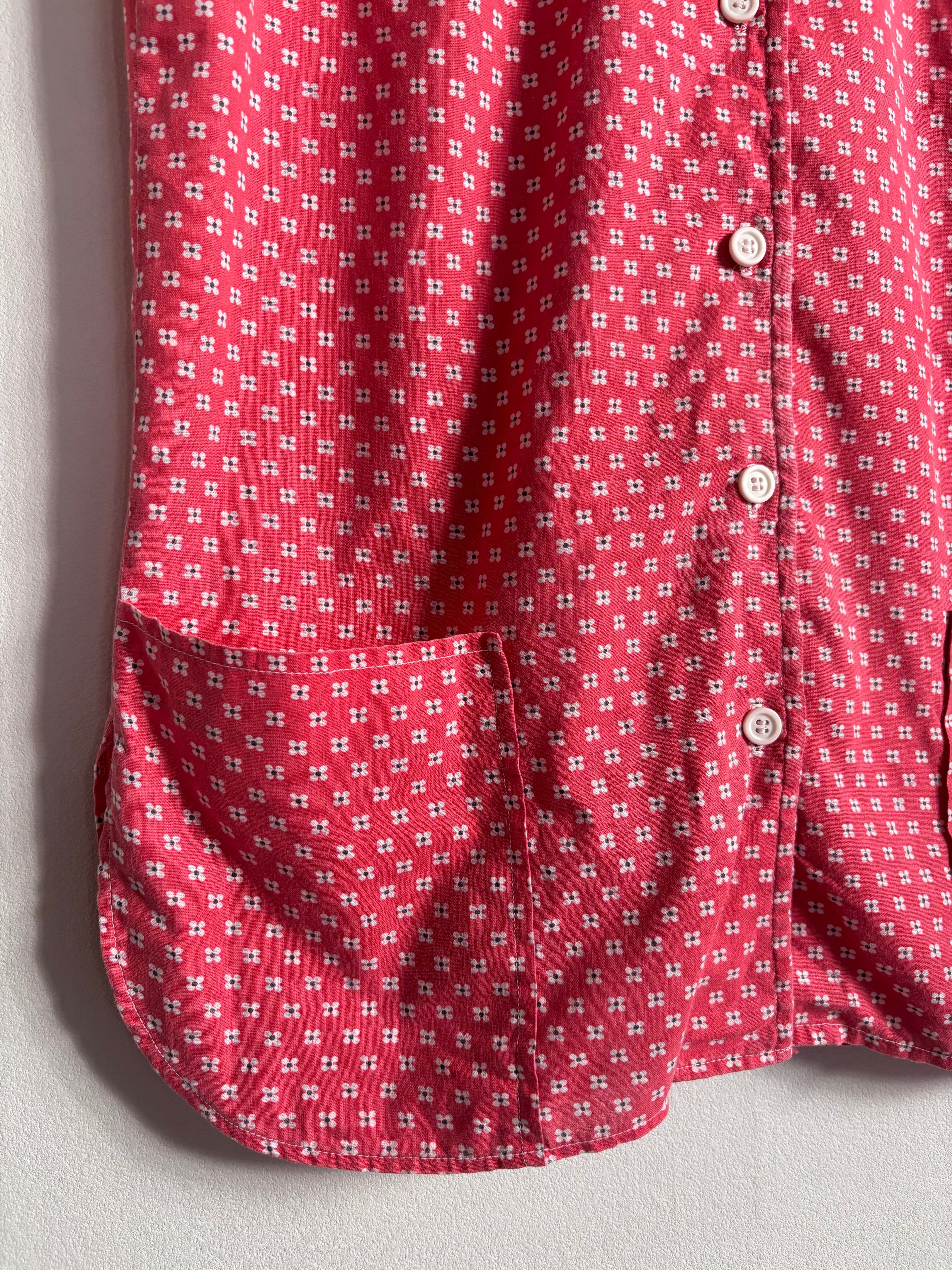 コットン×ポリエステル混紡素材。薄手で軽いシャツ生地のような涼しい着心地。透け感ありません。開襟仕様、ポケット付きでレトロな雰囲気。これ1枚+シンプルなパンツでお洒落感のある夏コーデに◎おすすめです。