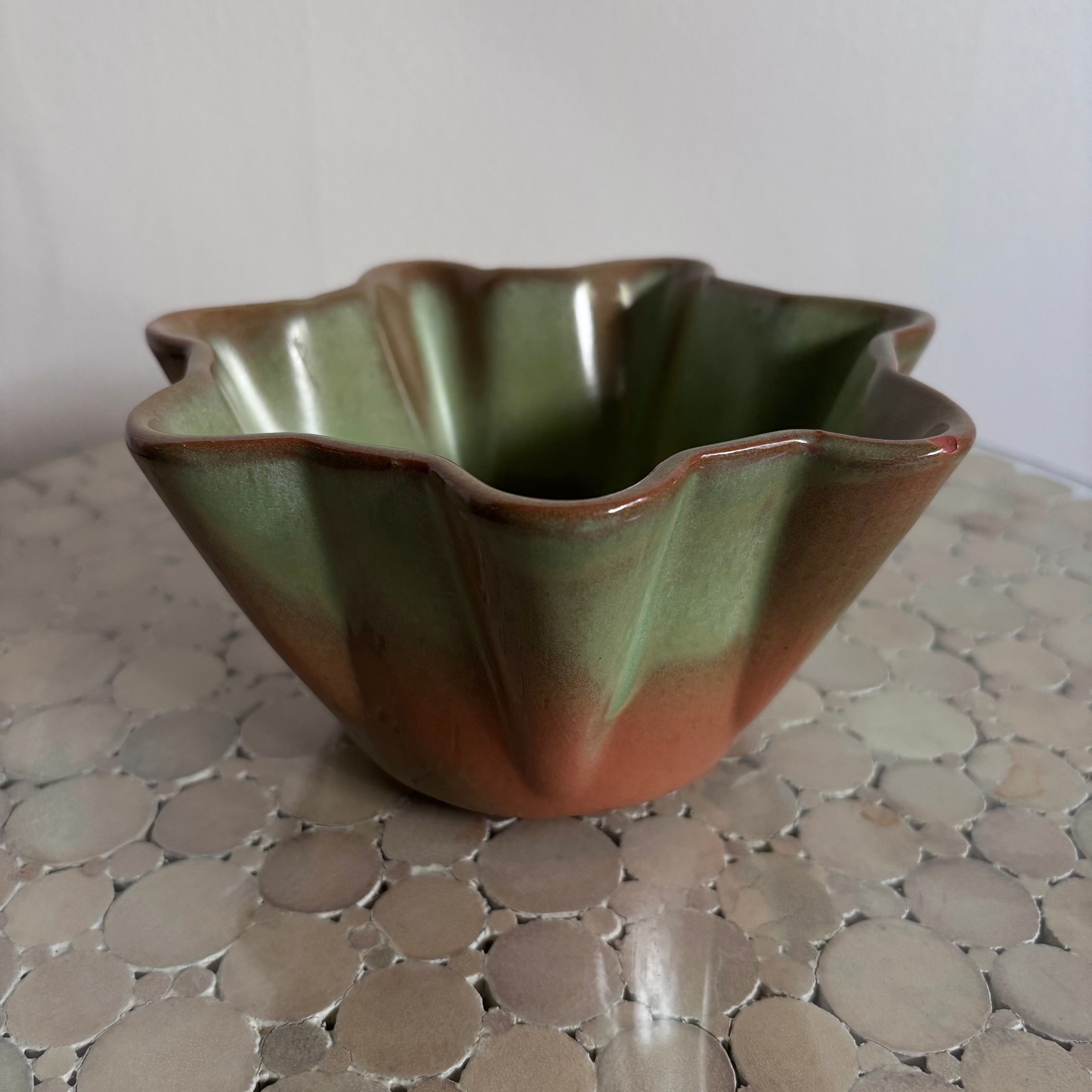 ミントブラウンカラー。ミッドセンチュリー期のビンテージ。FRANKOMA社の刻印入り。F33は同社の深めのプランターボウルに付く品番。