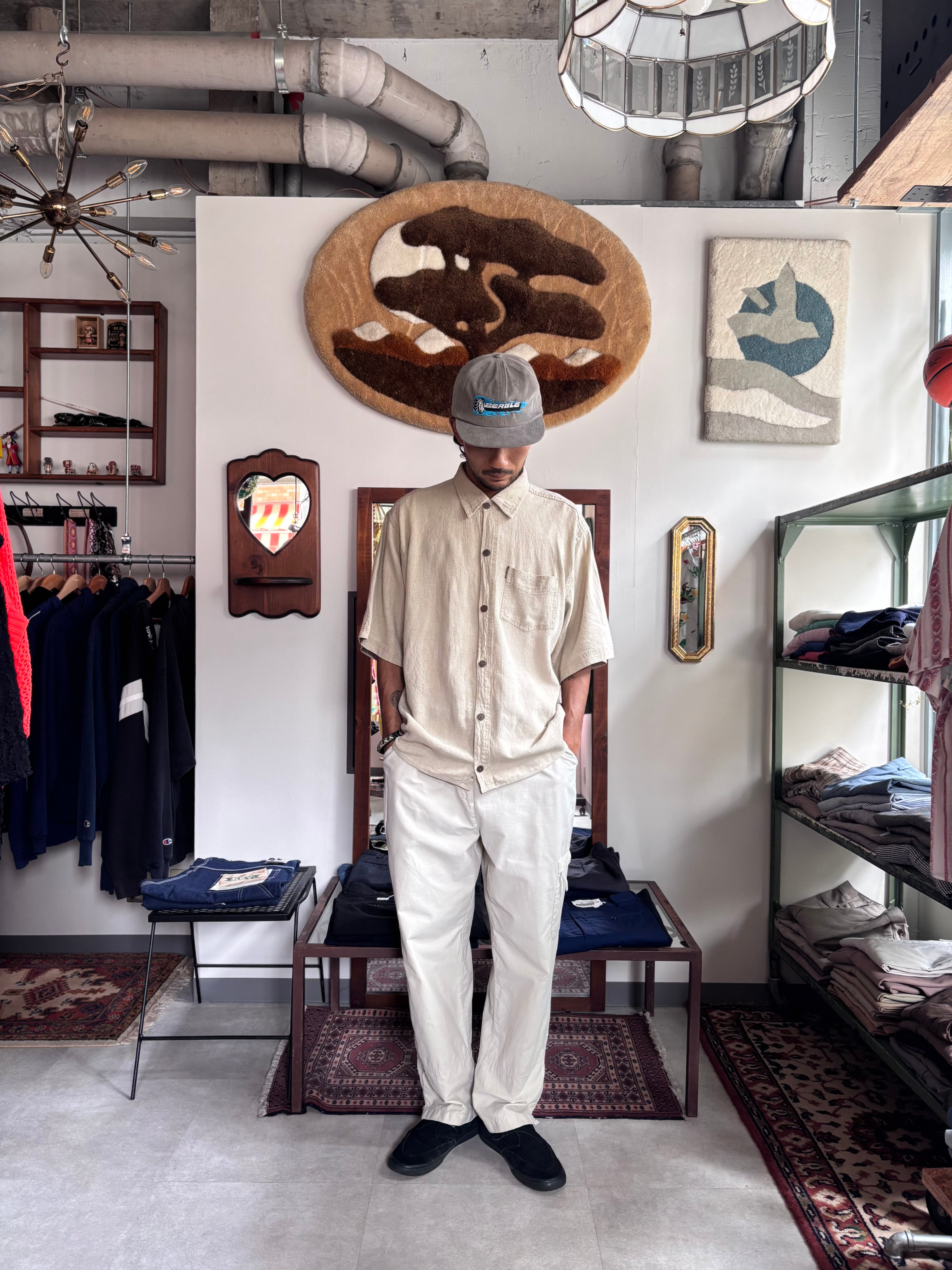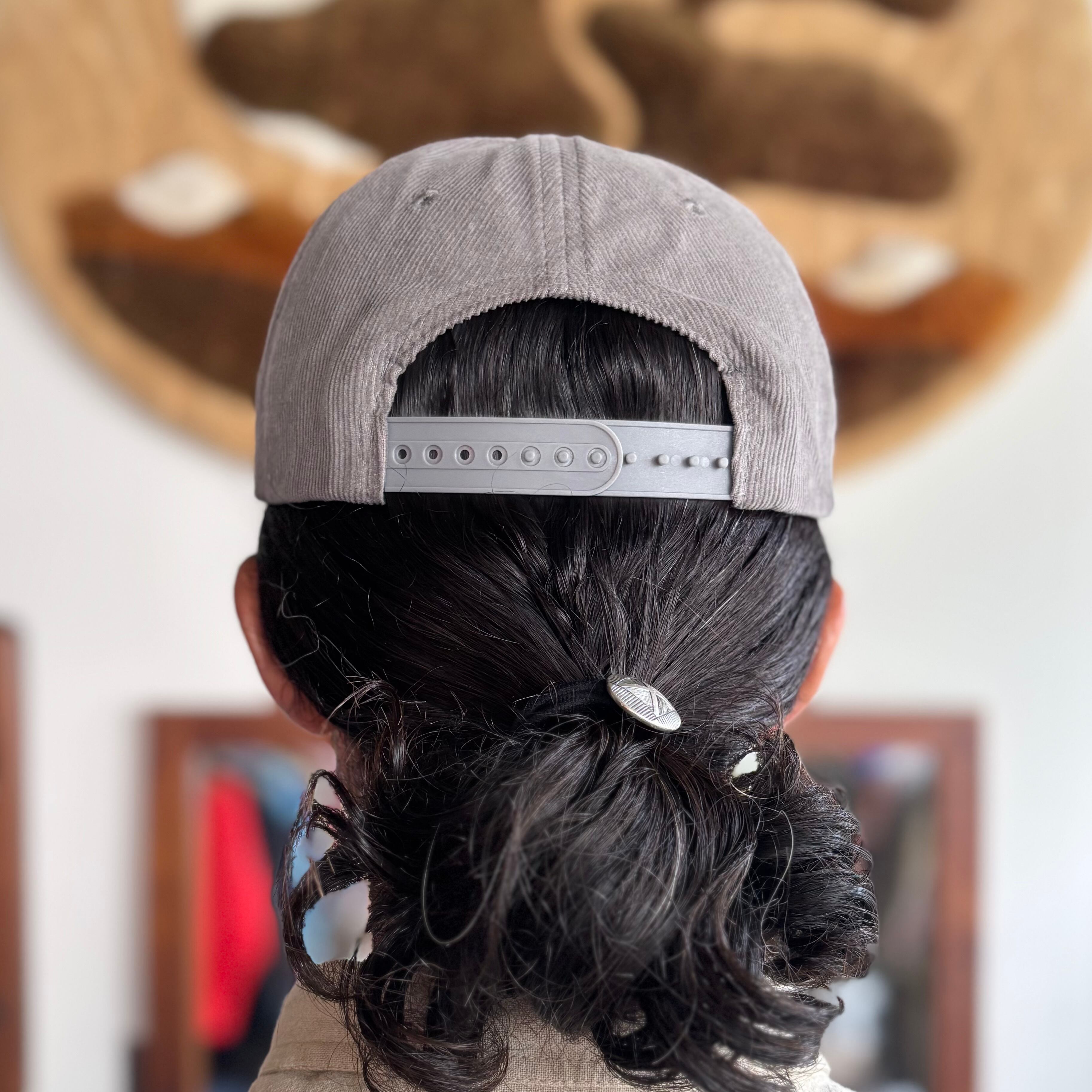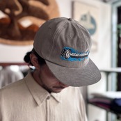 BEAGLEオリジナルキャップ。グレーのコーデュロイ素材の6パネル仕様、フラットバイザータイプ、スナップバック仕様。
