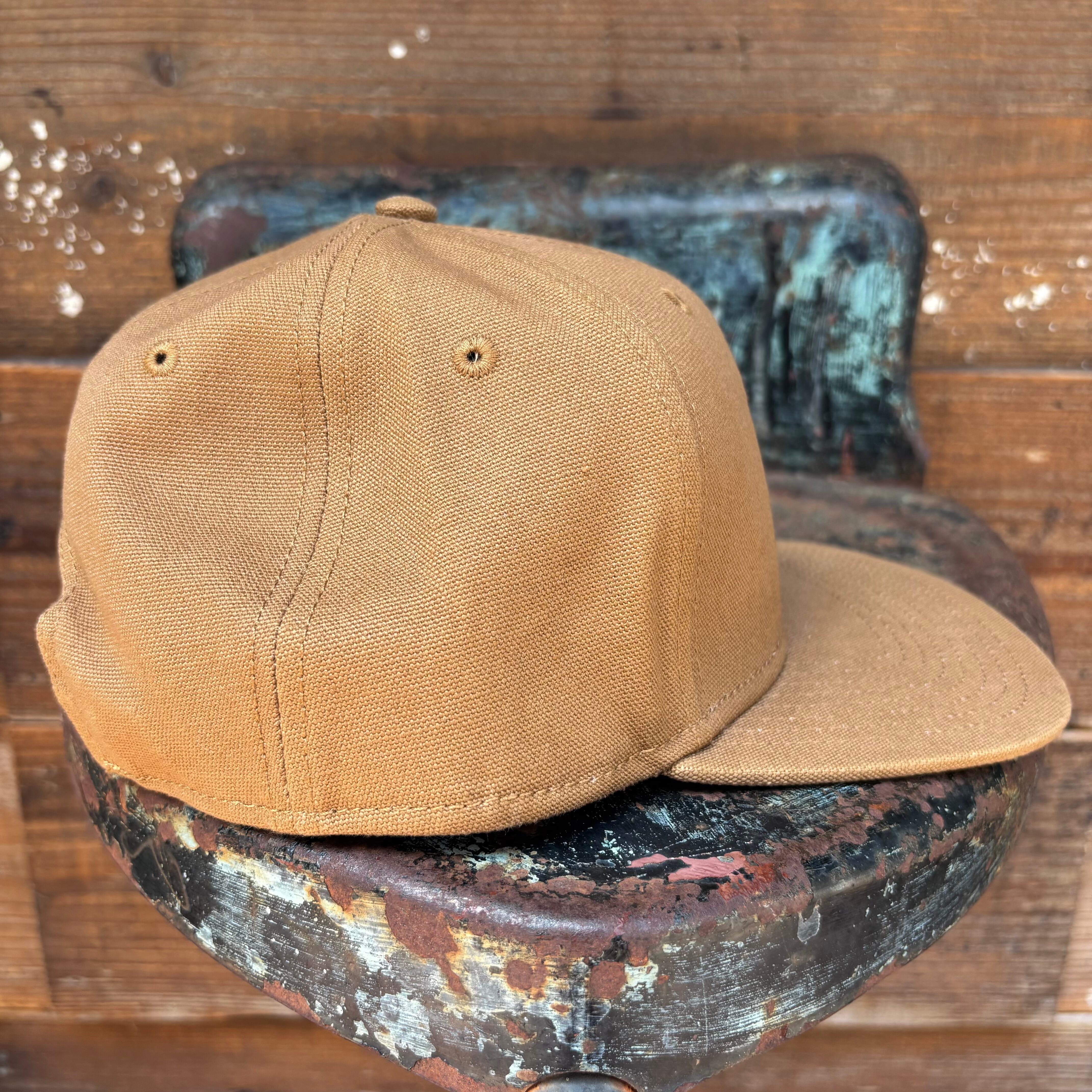 BEAGLEオリジナルキャップ。ブラウンのコットンキャンバス地。フラットバイザーキャップ、スナップバック仕様。