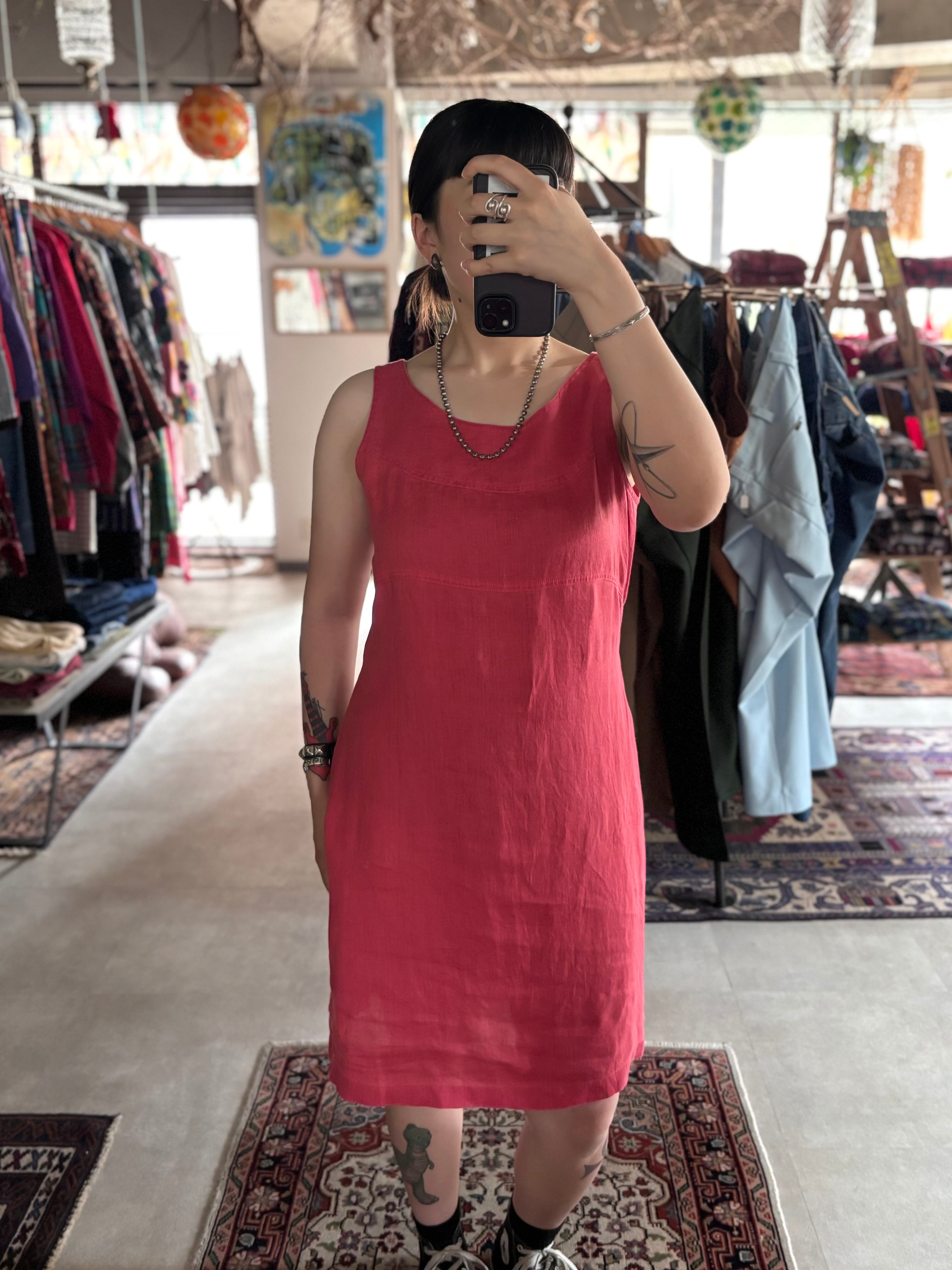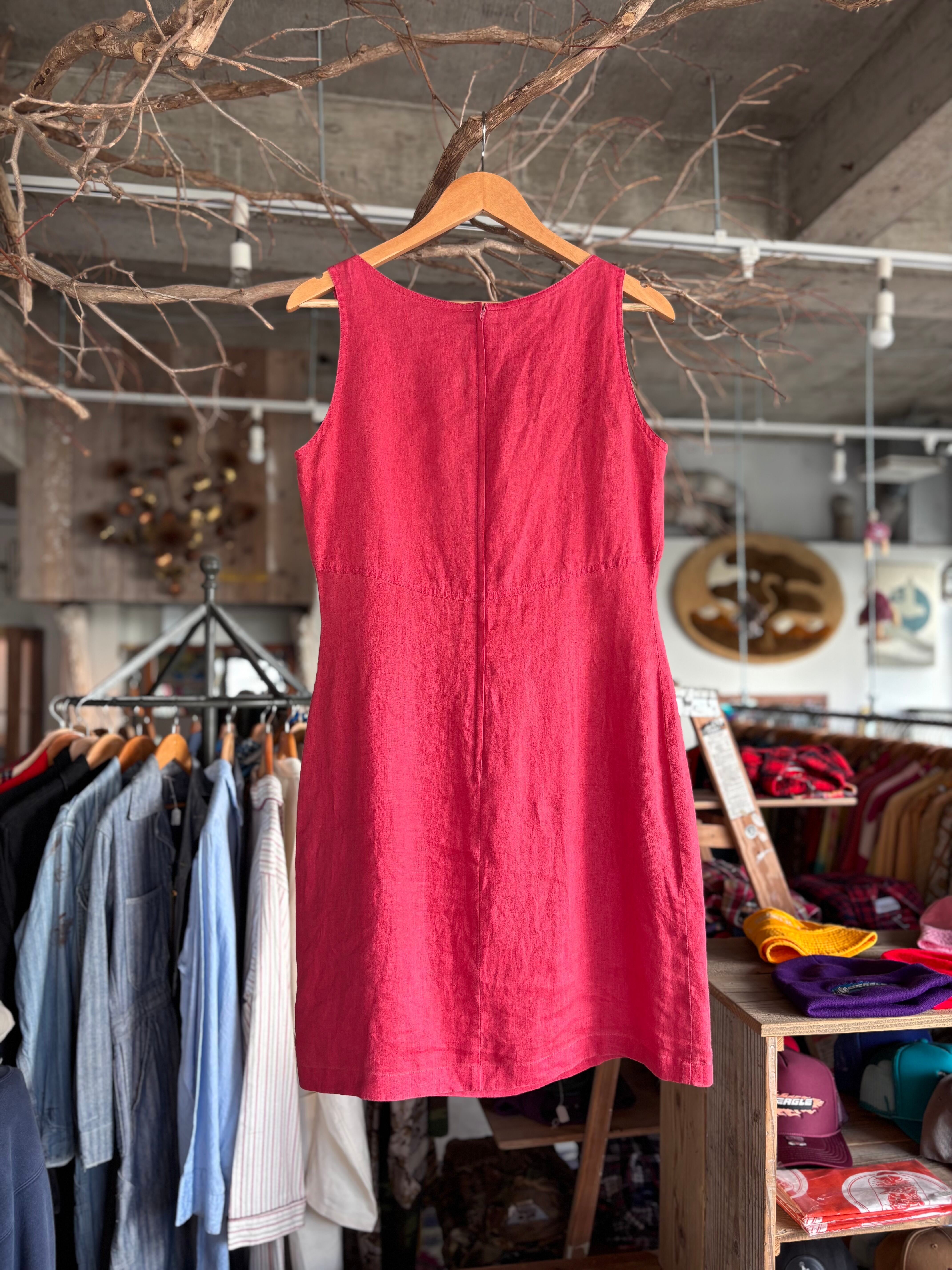 リネン100%の上質な生地感。華やかなコーラルレッド。バックジップ仕様。様々なスタイルに取り入れ易いシンプルなデザイン◎1枚で着るのはもちろん、パンツとのレイヤードコーデもおすすめです。