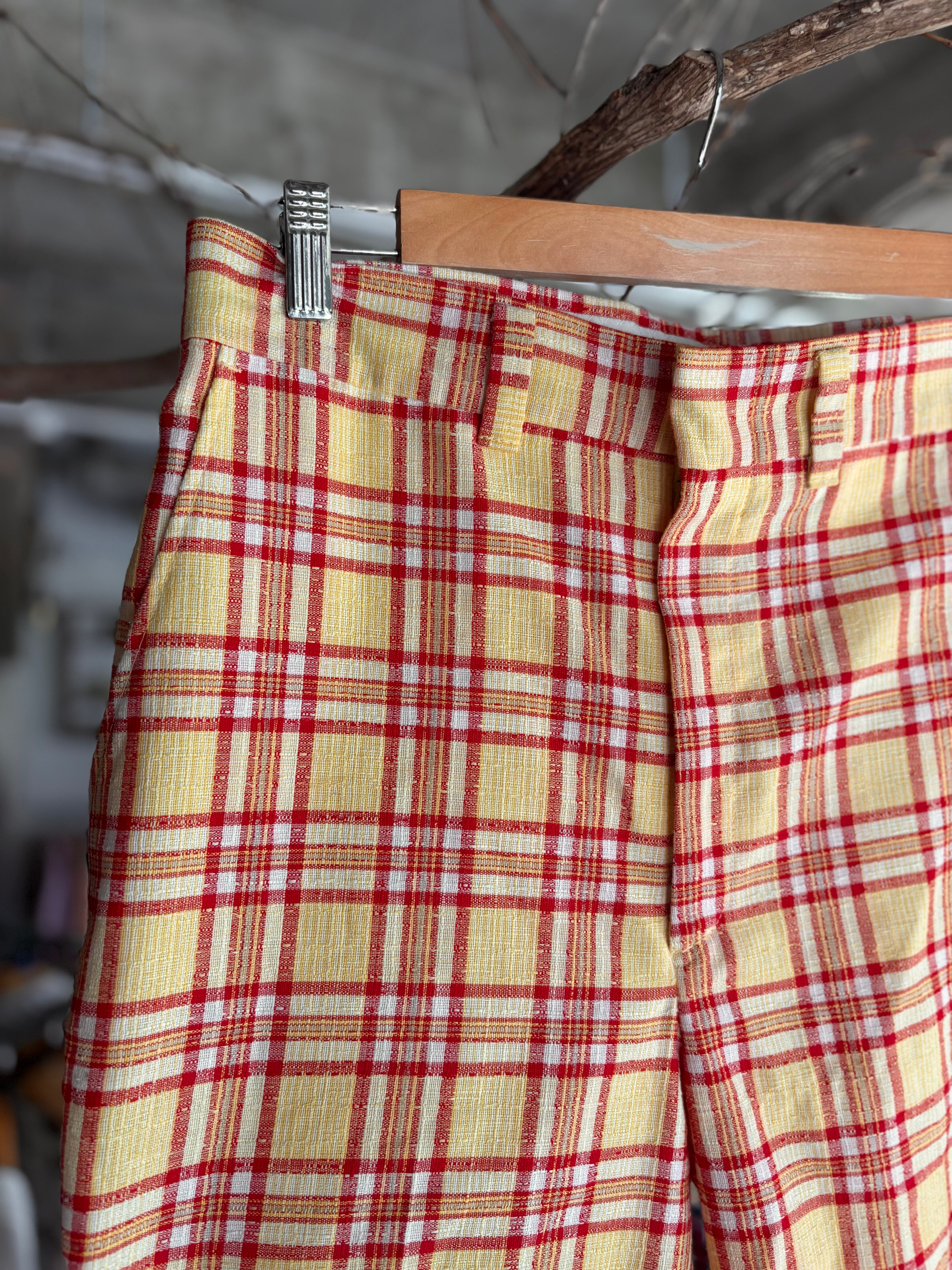 おそらくコットン×ポリエステル混紡の軽め生地。TALONジップ仕様。スラックスのディテールをそのままショーツにしたvintageならではのモデル。シルエット、配色共にOLD感たっぷり。