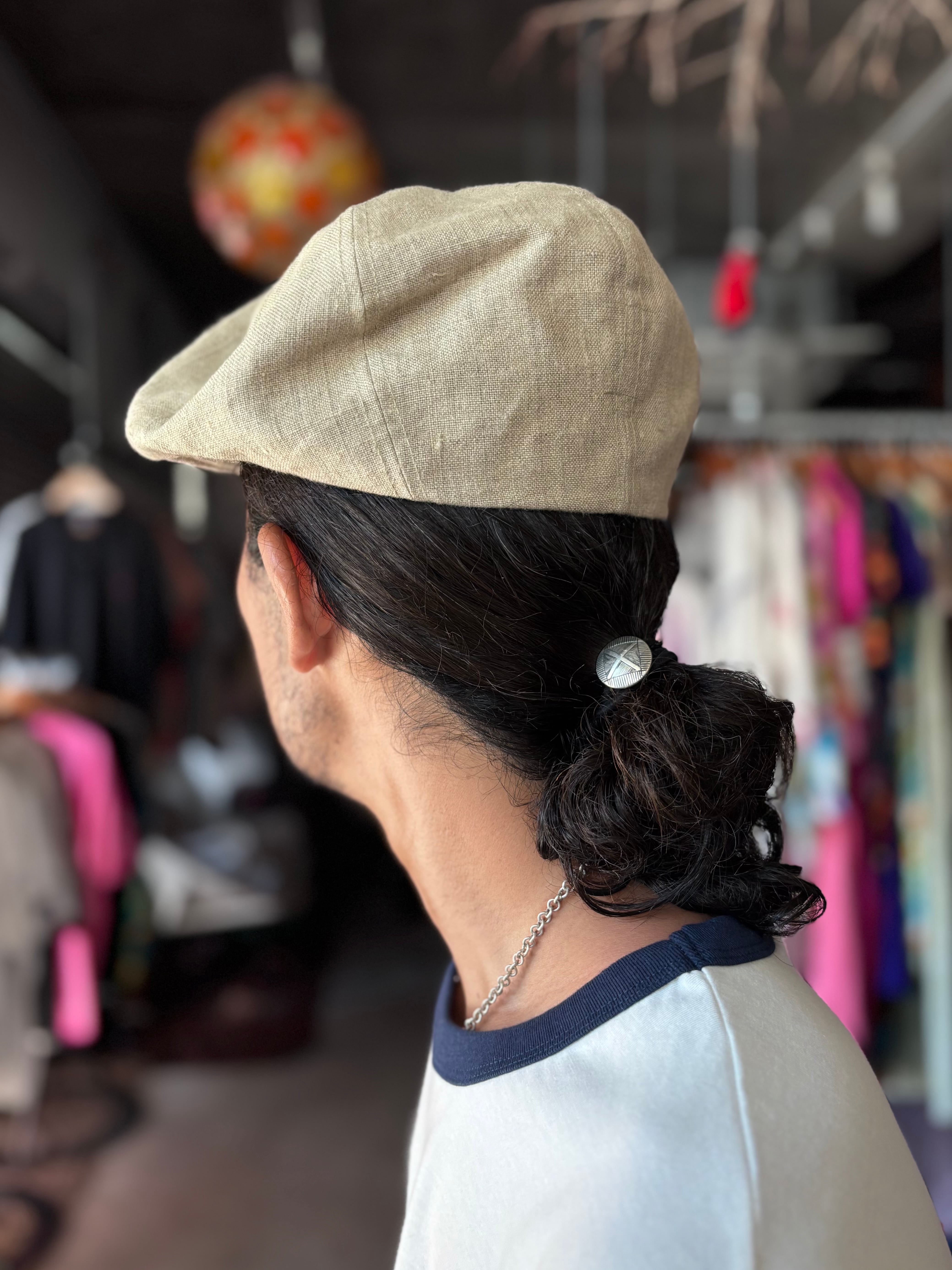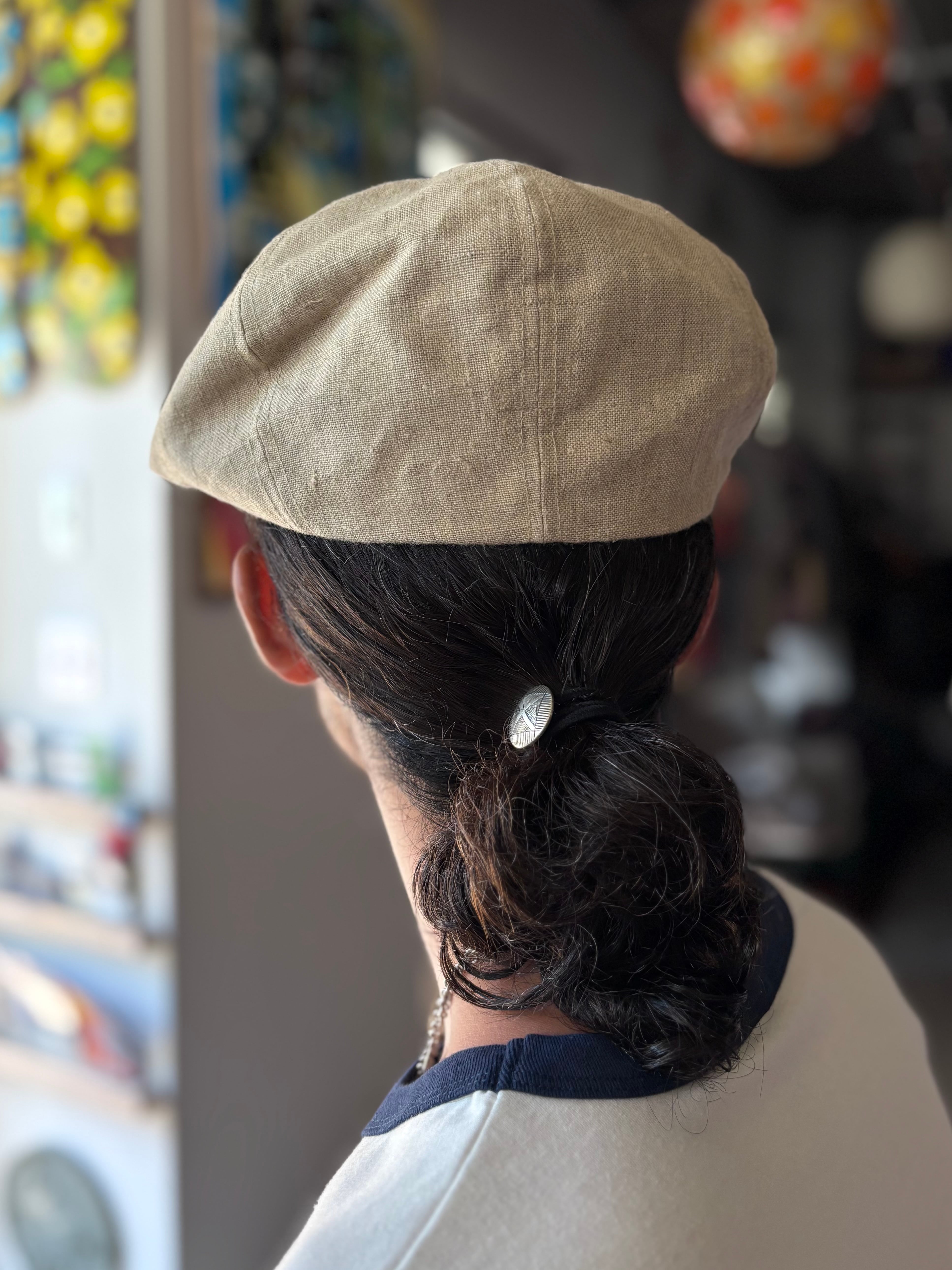 パターンから製作し、国内で縫製したBeagle オリジナルキャスケット。程よいボリューム感の8パネル構成で、つば先に向かうにつれシャープになるハンチングのシルエットを採用。オールシーズンの着用と、家庭洗濯機での洗濯を想定したvintage linen生地。柔らかい生地に柔軟性のある芯なので、クラウンを膨らませたり縮めたり、丸めてポケットに入れたりなど、自由度の高い仕様になっています。