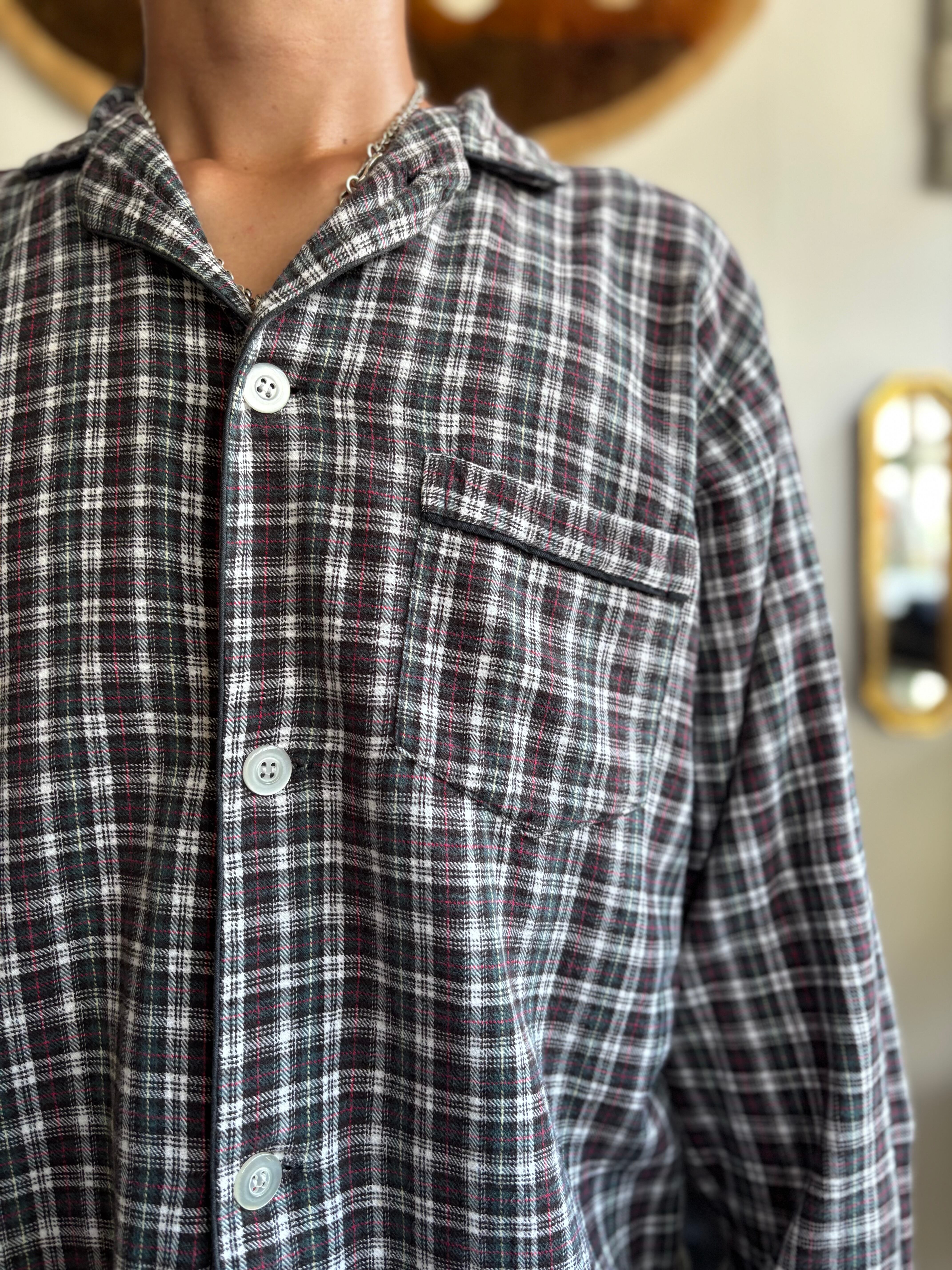 柔らかいコットンフランネル生地。オーセンティックフィット。4つボタンのラペルカラー仕様。可愛くなりすぎないブラック生地のパイピング。力の抜けたお洒落感。良いレギュラーです。