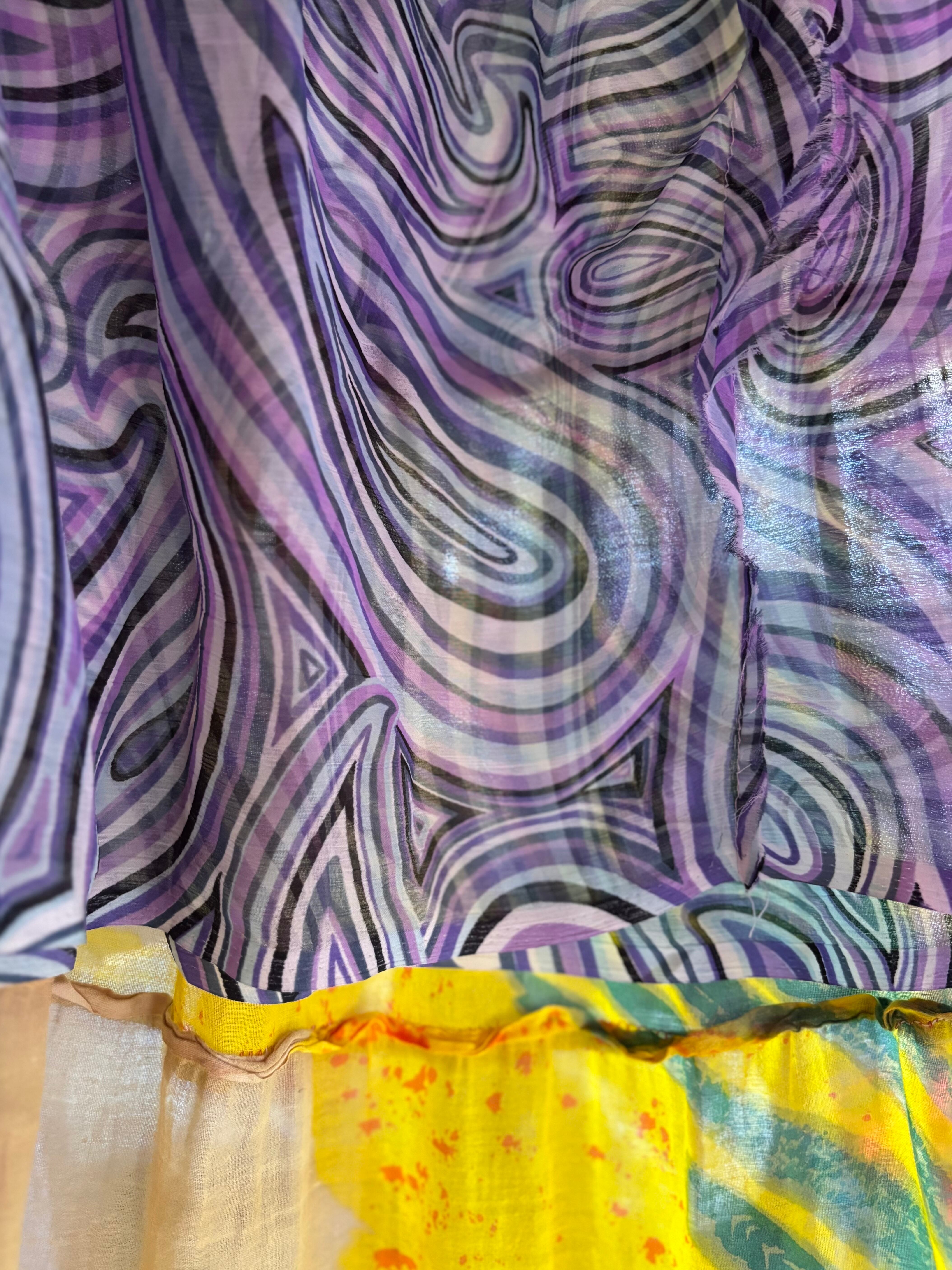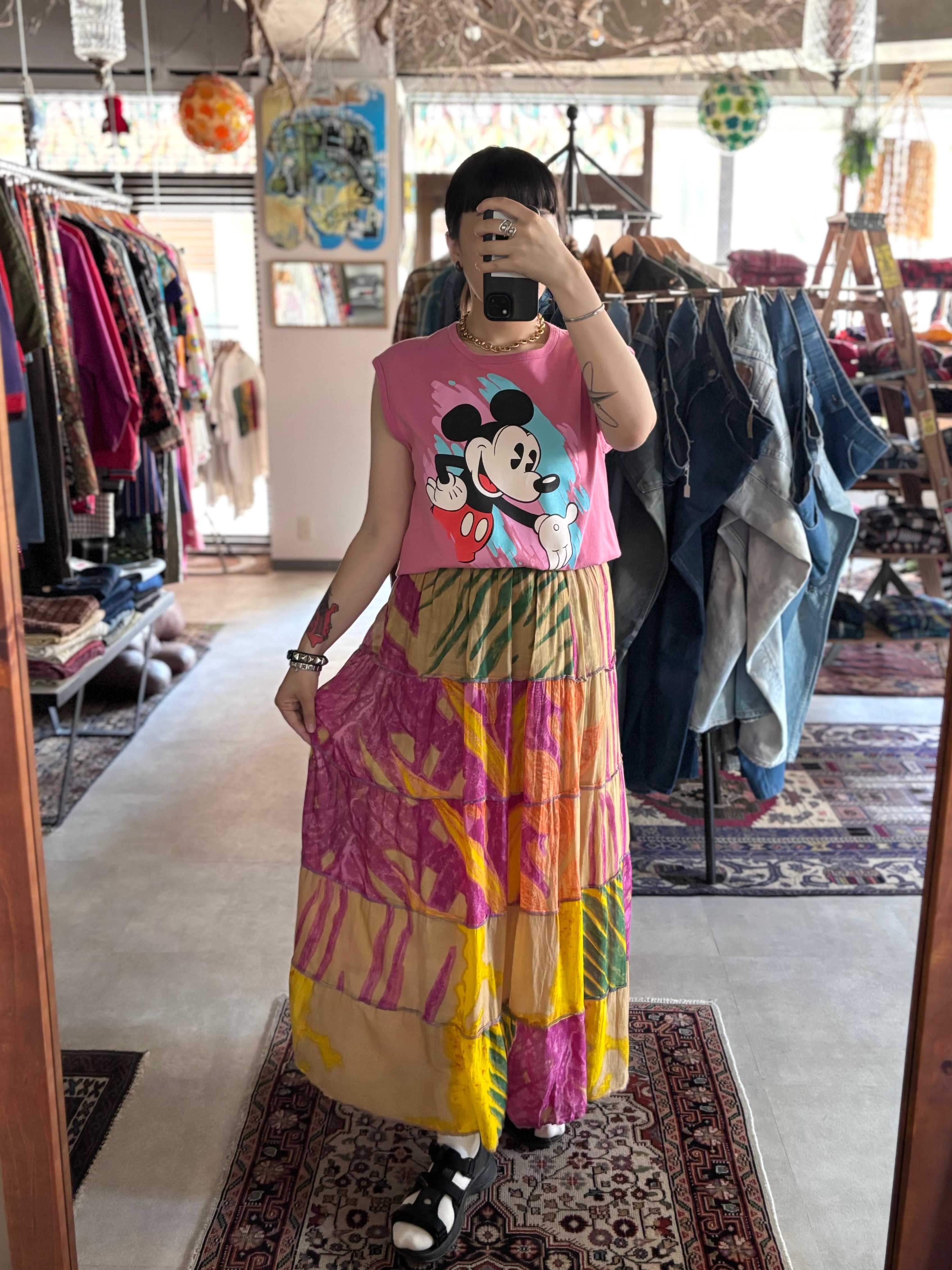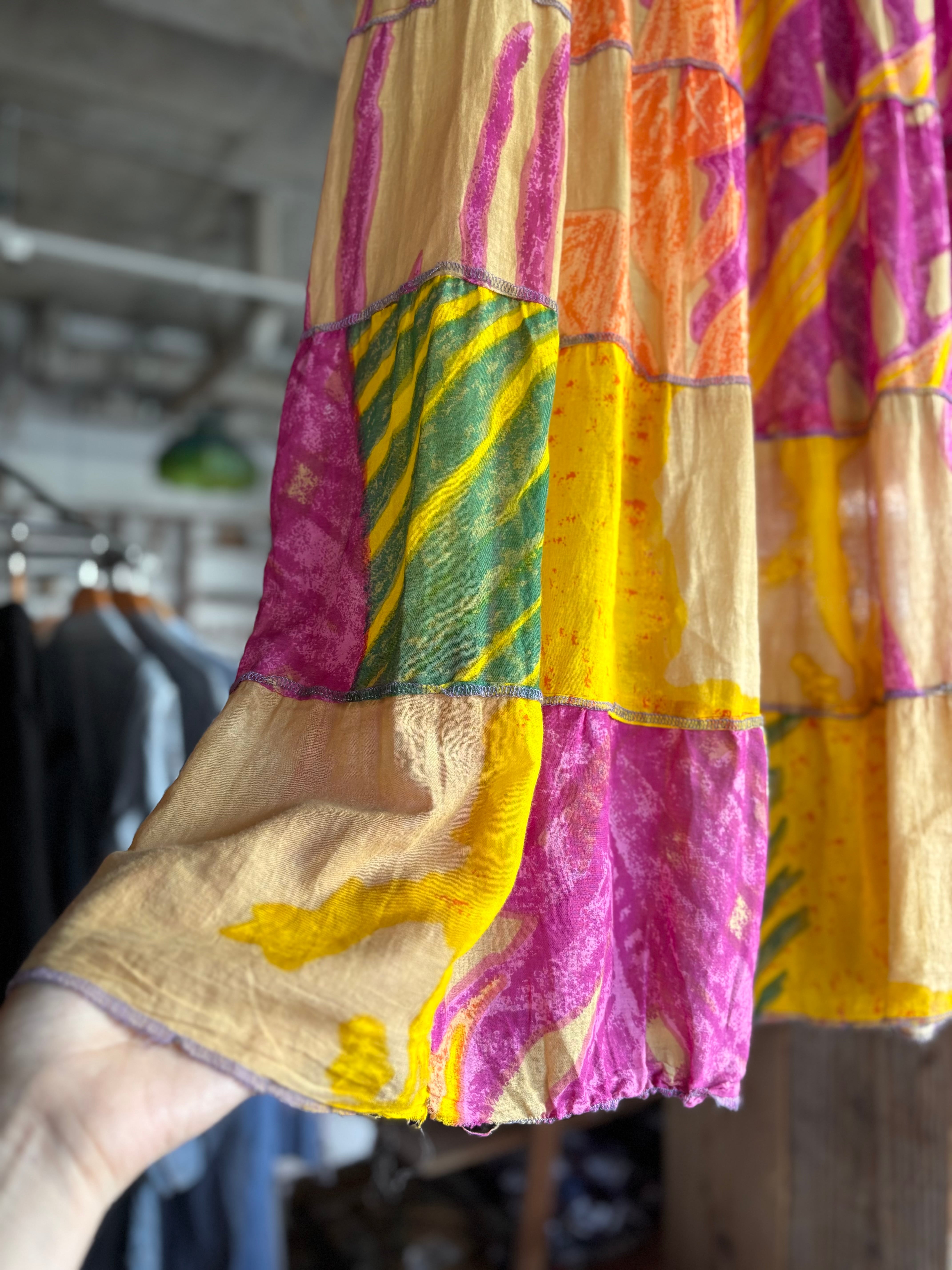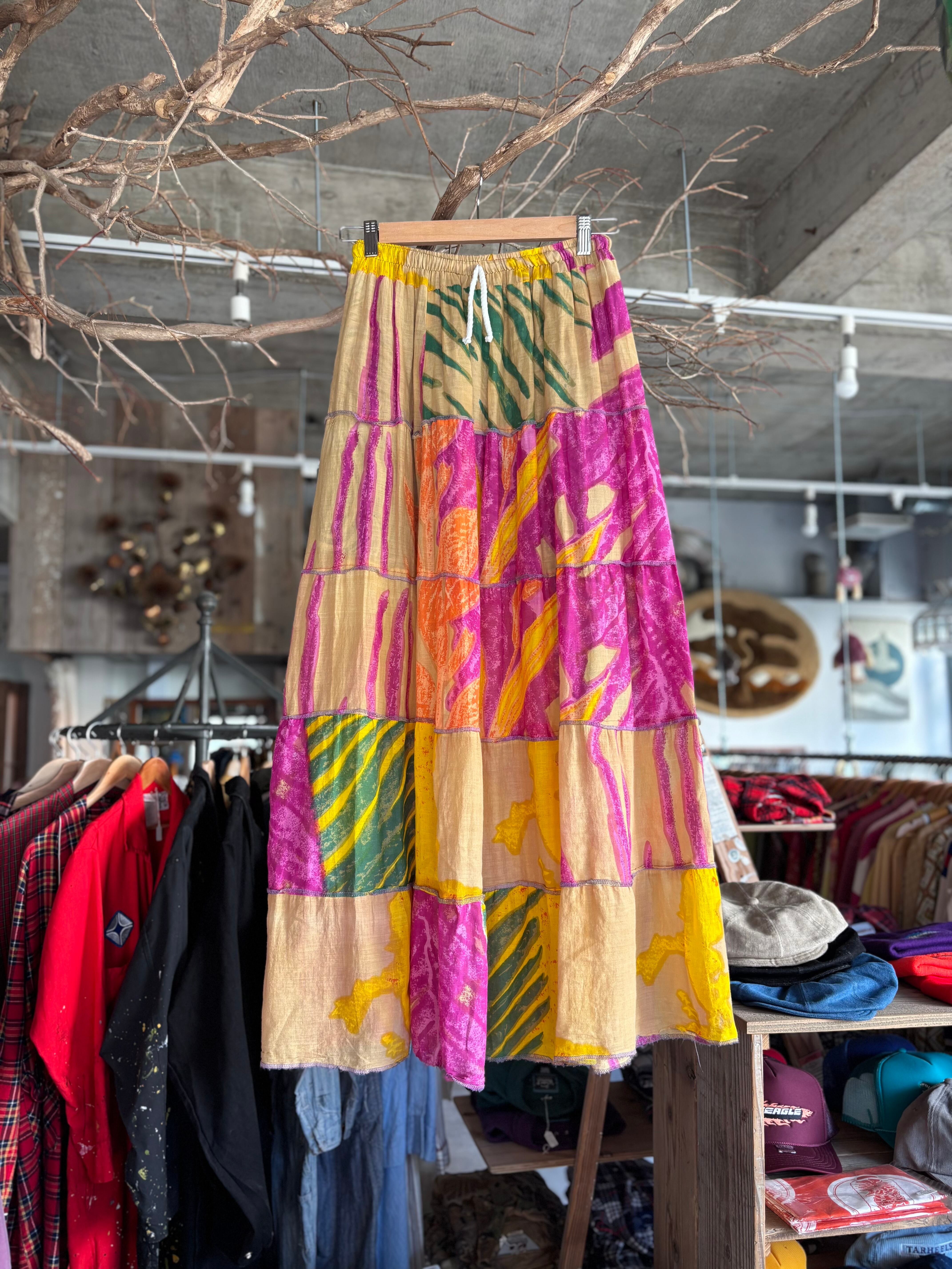 肌触りの良い薄手のコットン素材のティアードスカート。ビビッドなイエローやピンクが目を引くデザイン。透け防止のインナー付き。(画像5枚目)