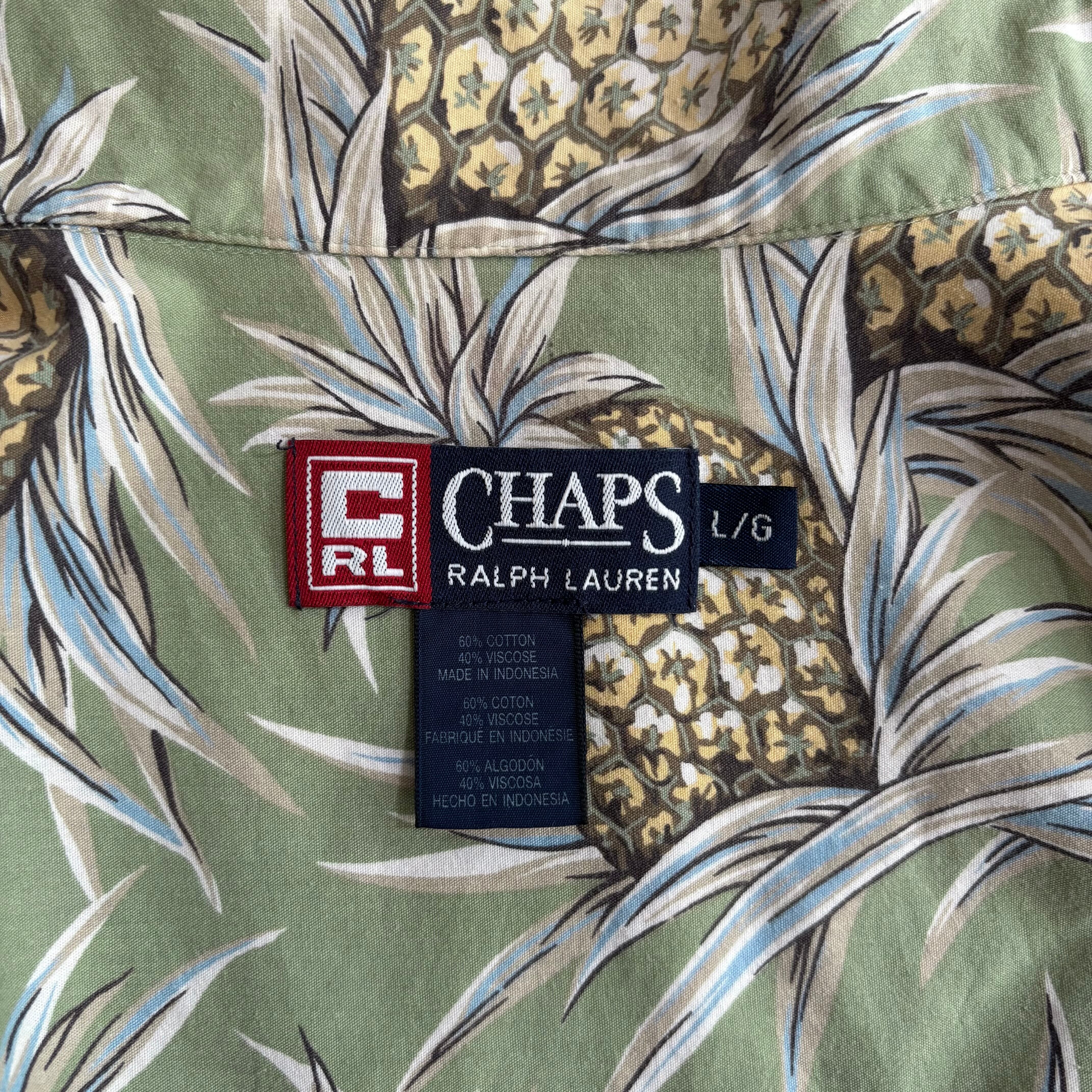 軽い着心地のコットンレーヨン素材。ビンテージライクなパイナップルパターン。リラックスフィット。開襟のループカラー仕様。