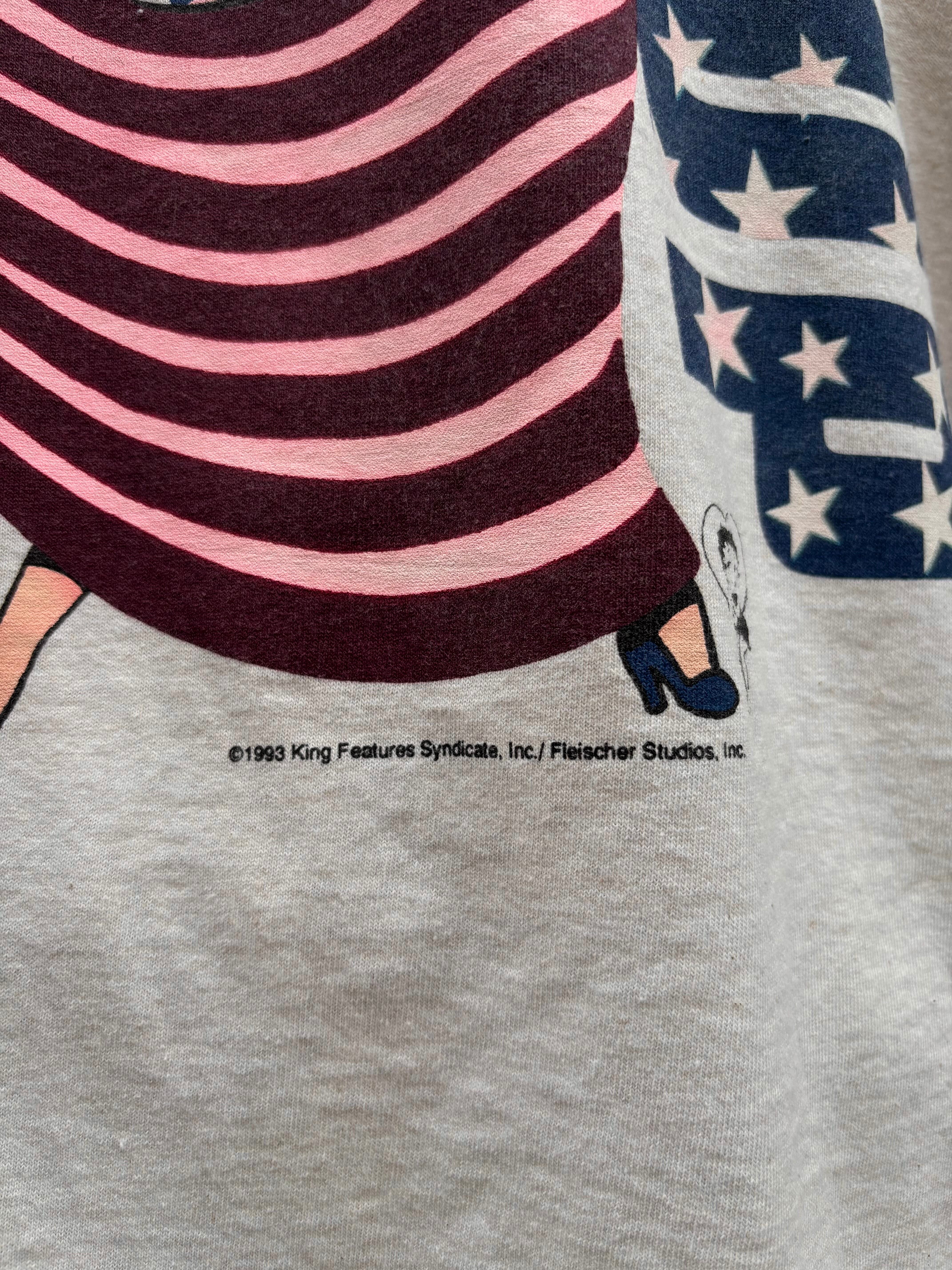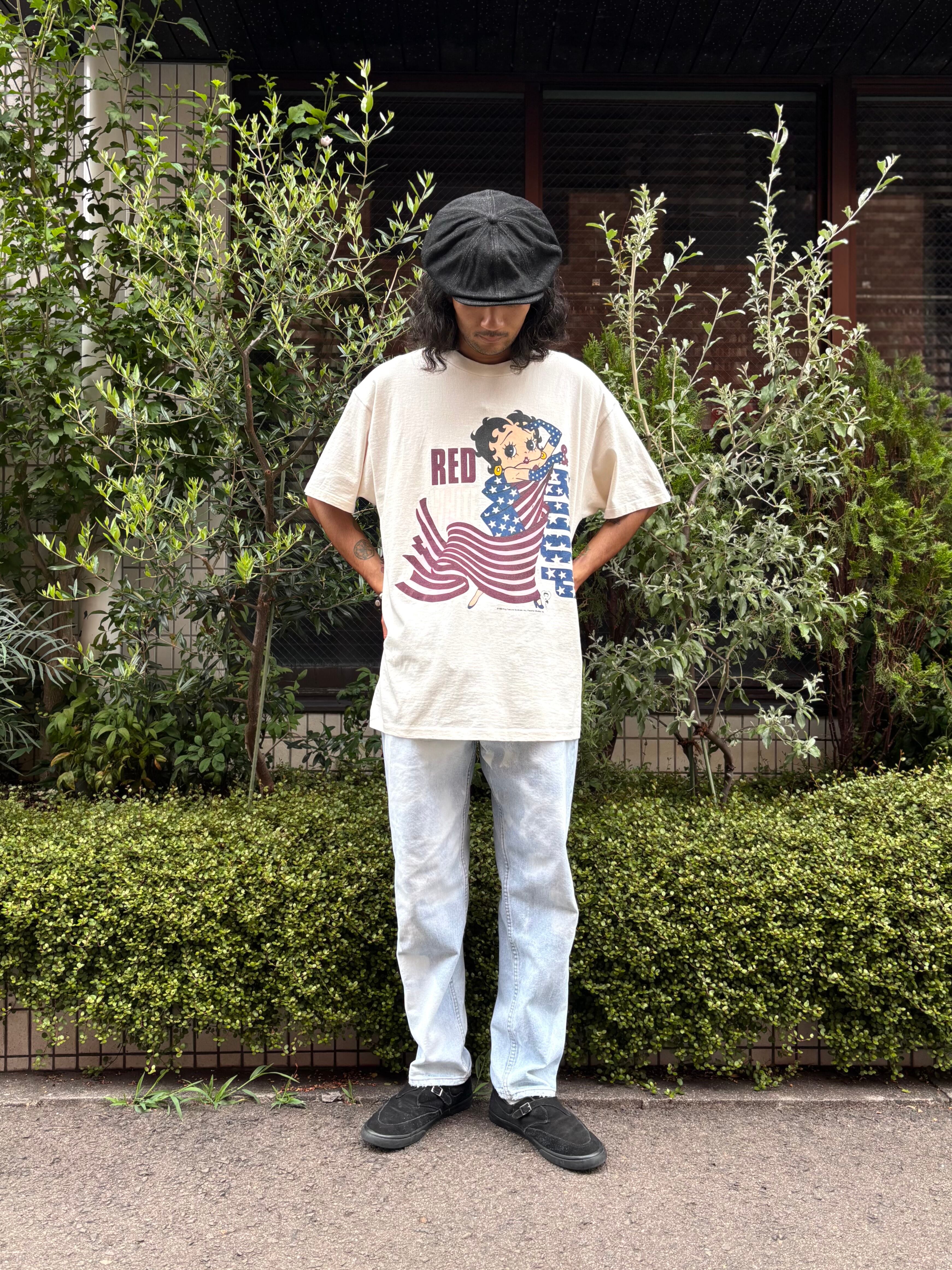 しっかりめのコットン素材。リラックスフィット。90s USA製のDELTAボディ。未漂白の生成りボディ。93年のコピーライトが入るbetty boop モチーフ。ボディとグラフィックのバランスが抜群の良質vintage Tee。