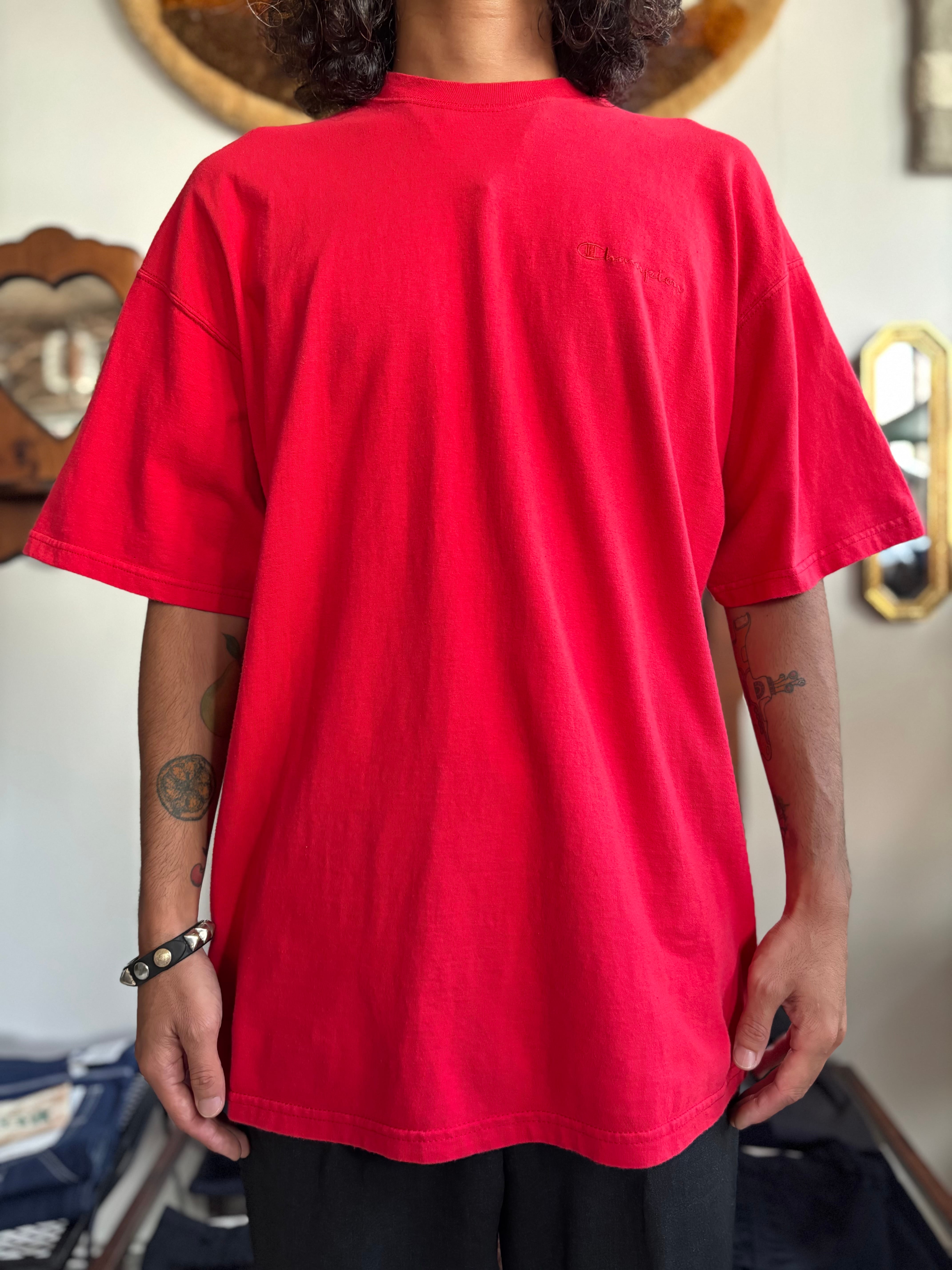 ウォッシュドレッドカラー。リラックスフィット。胸にはボディと同色の刺繍ロゴ。championらしいクラシカルな雰囲気。