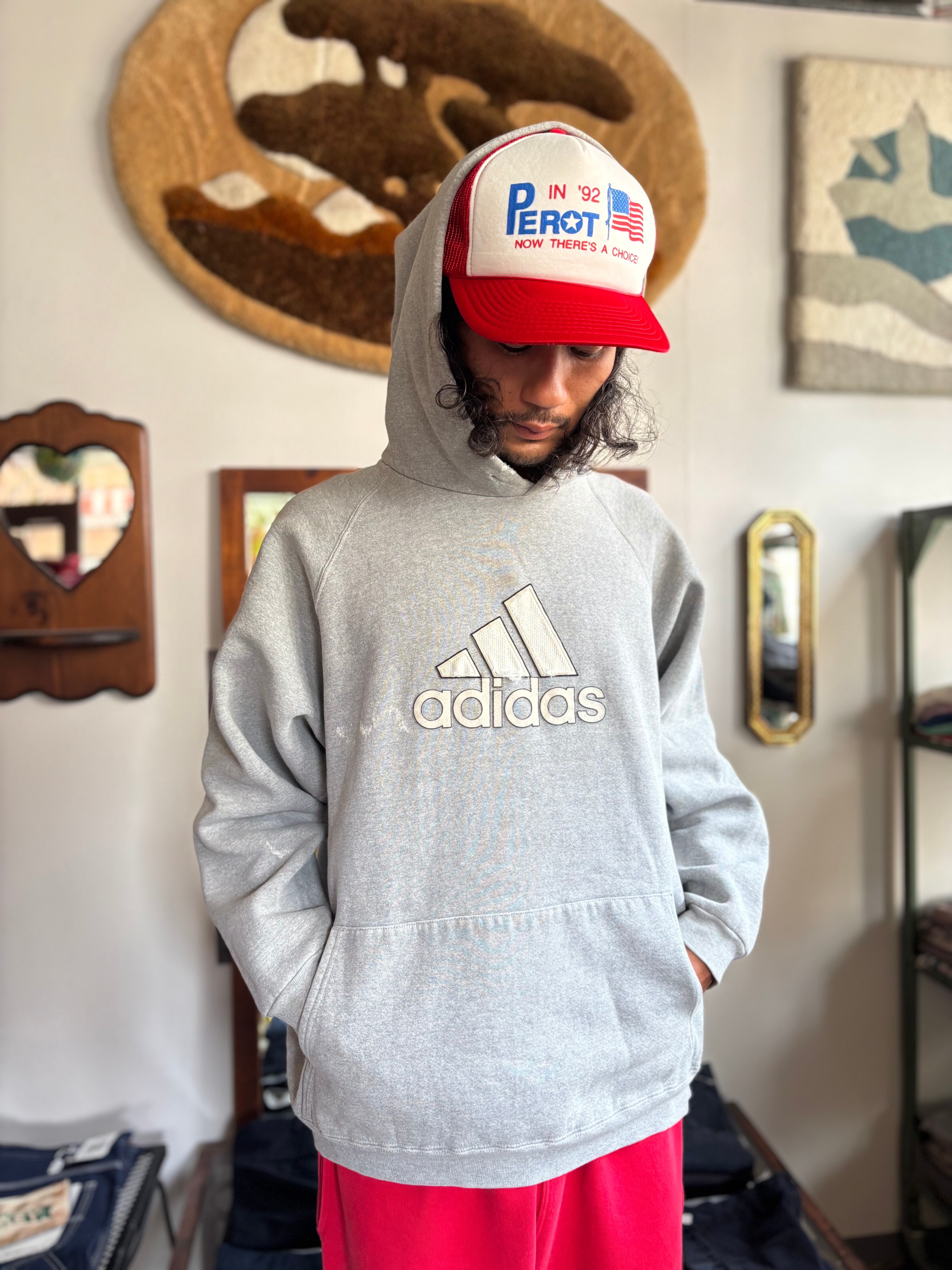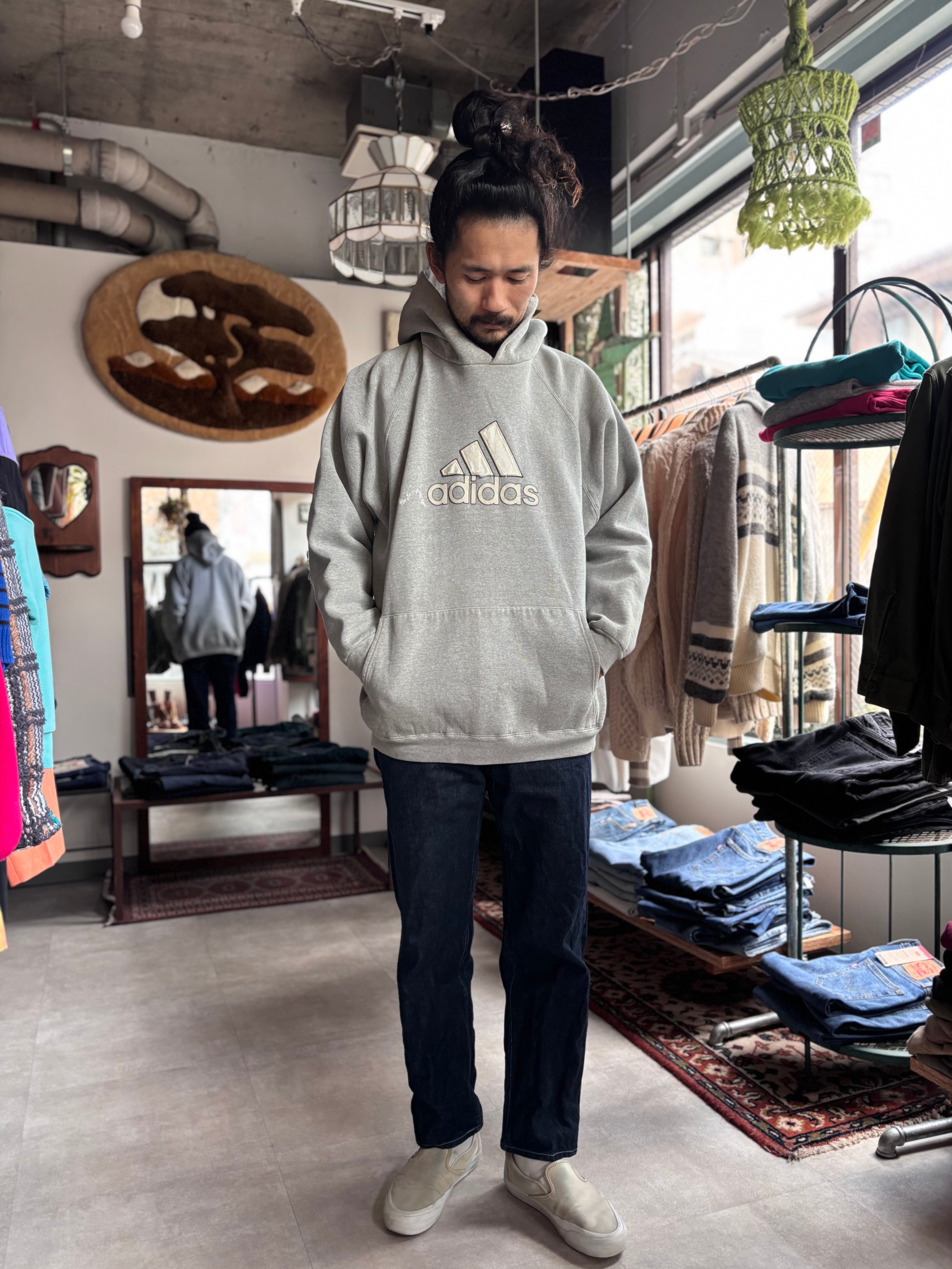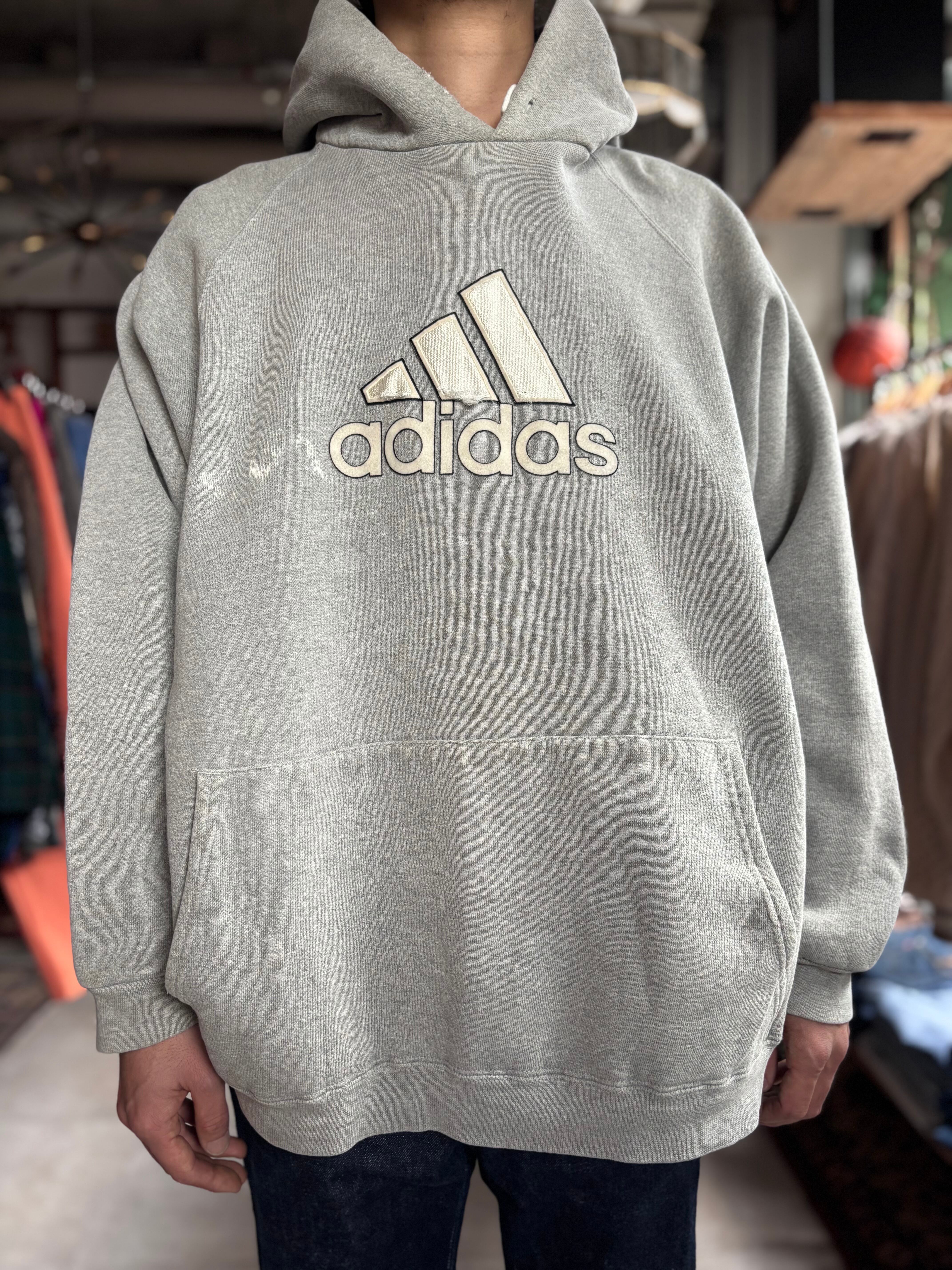 肉厚なスウェット生地。着丈短めのルーズフィット。00s USA製 ADIDAS。経年感含めて抜群のOLD感。