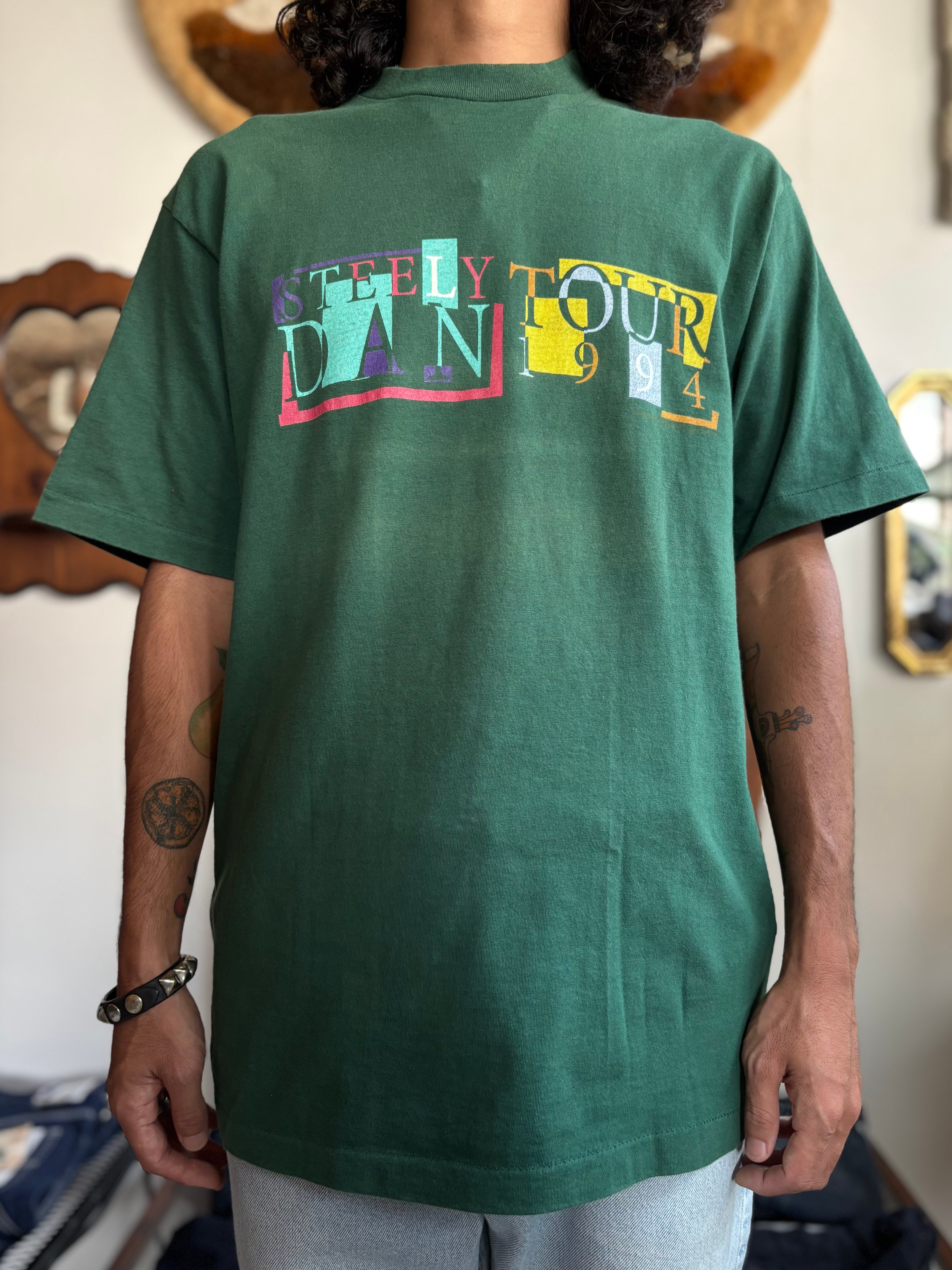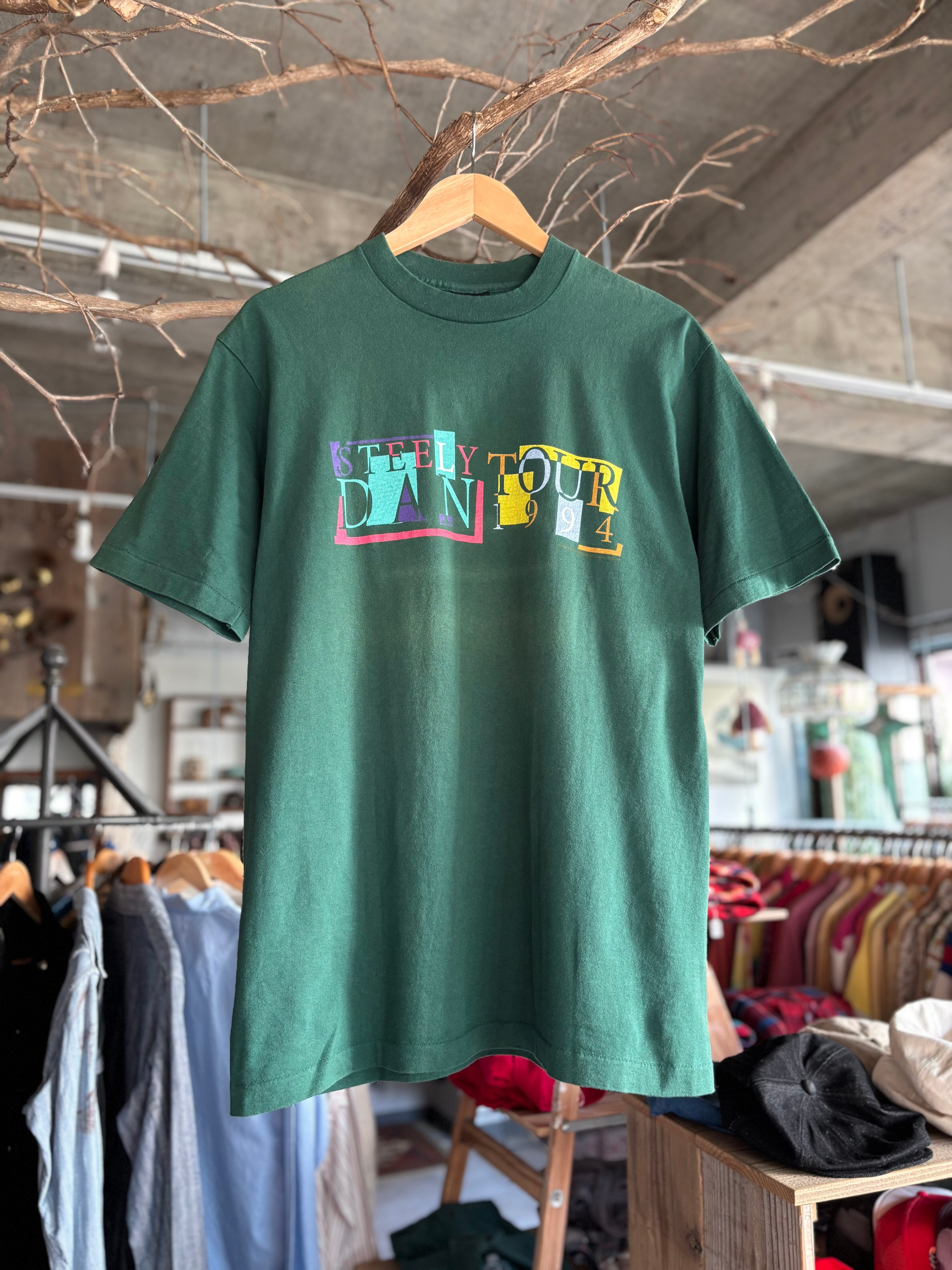 厚みのある90sのgiantボディ。袖、裾シングルステッチ。リラックスシルエット。両面プリント。STEELY DANの94年ツアーTシャツ。ポップなAORテイストのグラフィックがとてもお洒落です。