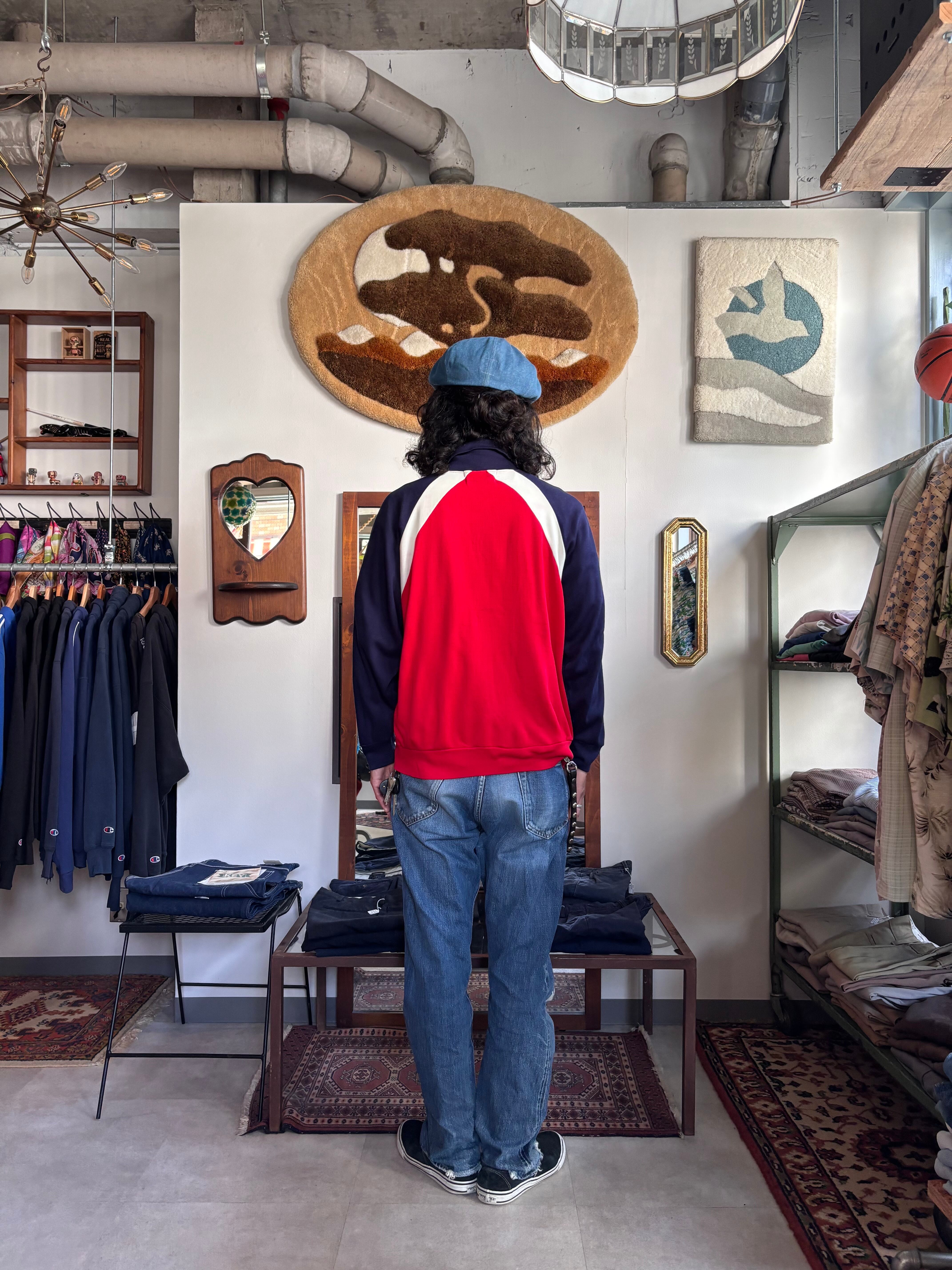 柔らかいアクリル素材。リラックスフィット。レトロなスポーツスタイルのトラックジャケット。OLD感抜群の80s SEARS製。ユニセックスでおすすめです◎