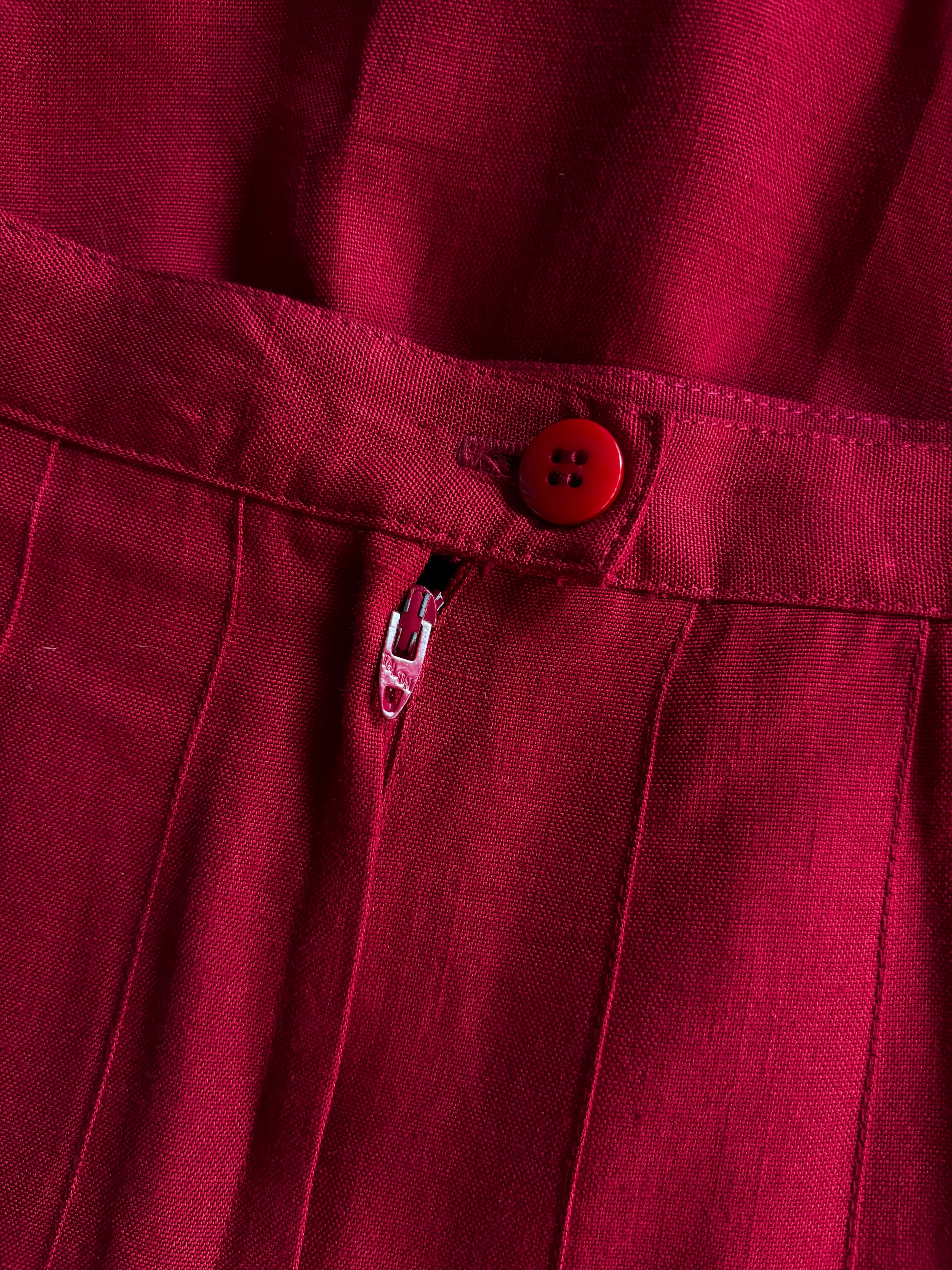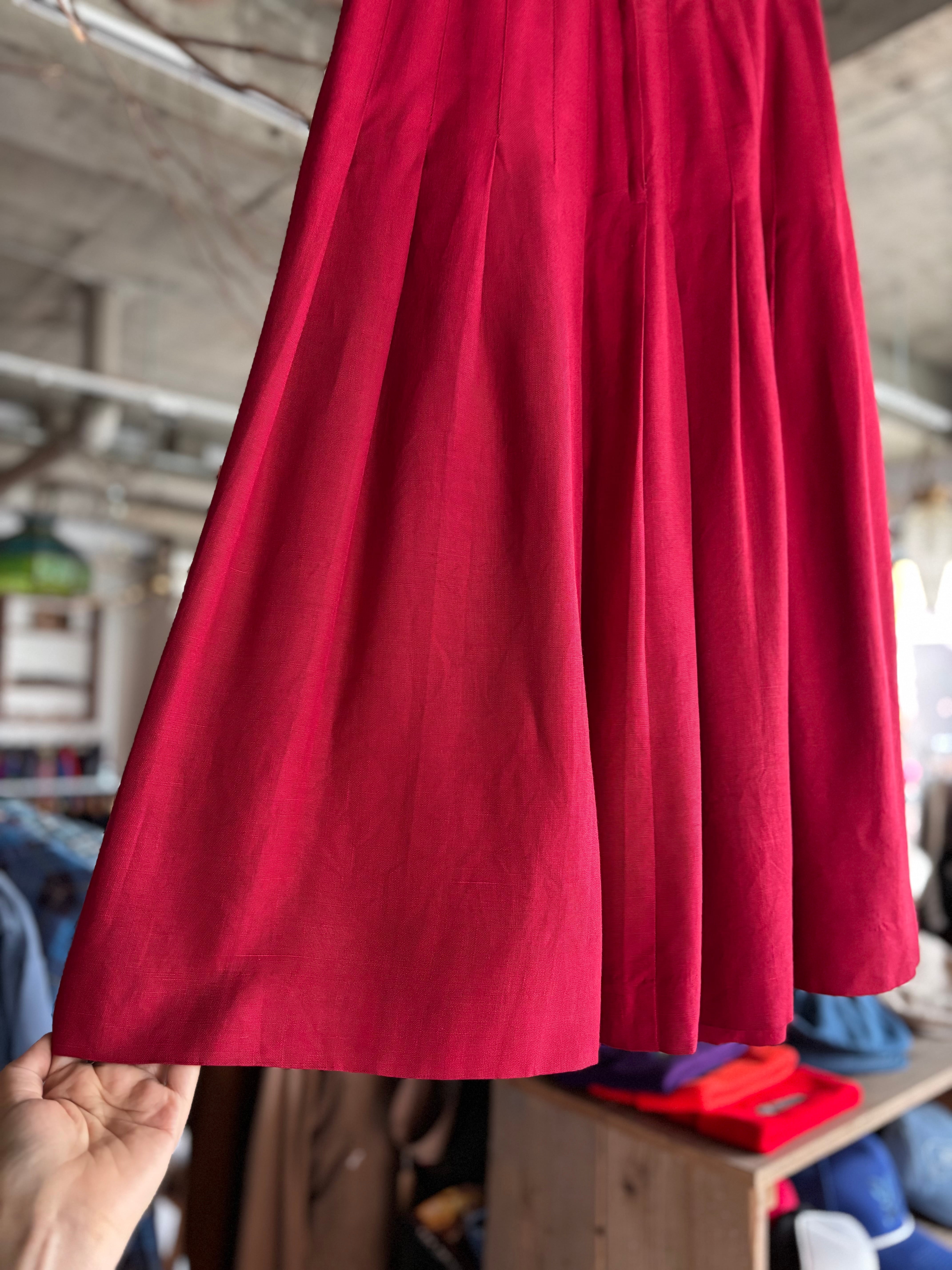 おそらくレーヨン混紡のしっかりとした生地感。落ち感あり。TALONジップ仕様です。深みのあるレッドカラー。スウェットやニットと合わせて大人な秋冬コーデにぜひ◎