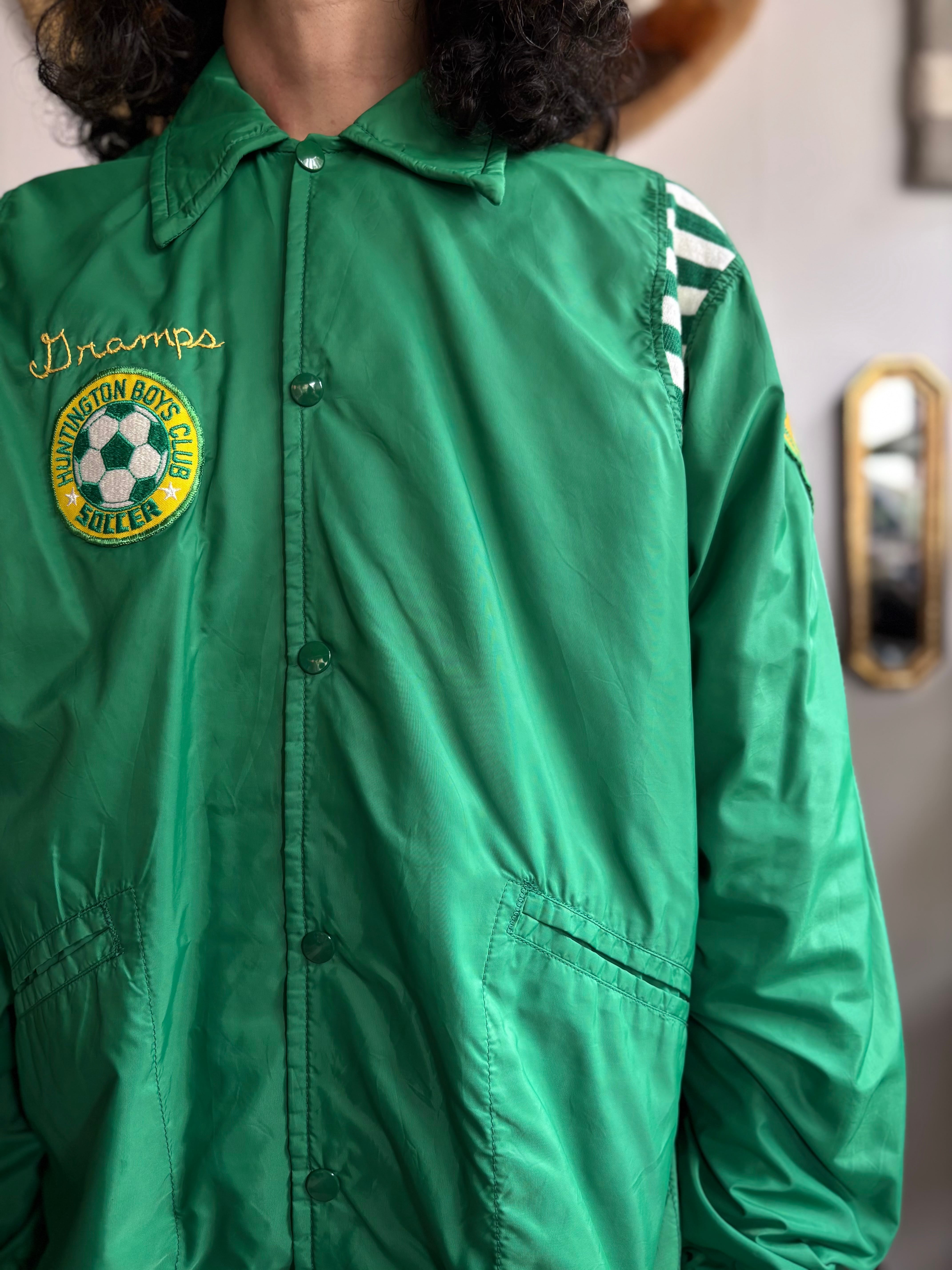 軽めのナイロンシェルに、フランネルライナー仕様。リラックスフィット。ショルダーにニット生地の切り替え入りの珍しいモデル。バランス良く配置されたワッペンに、胸にはチェーンステッチのネーム刺繍入り。レトロなデザインながらスナップボタンの剥げも無い良好なコンディションを保った良質vintageです。
