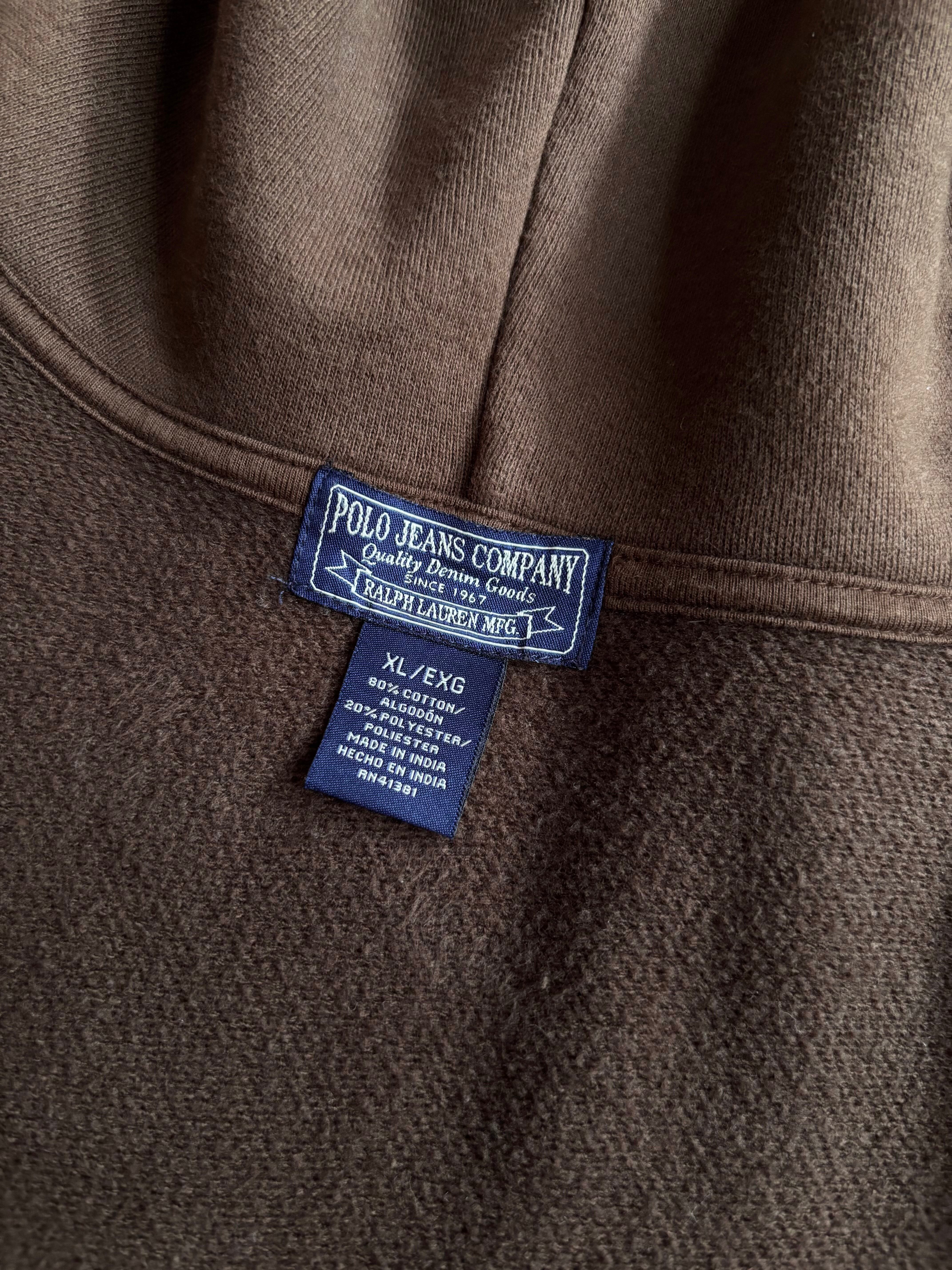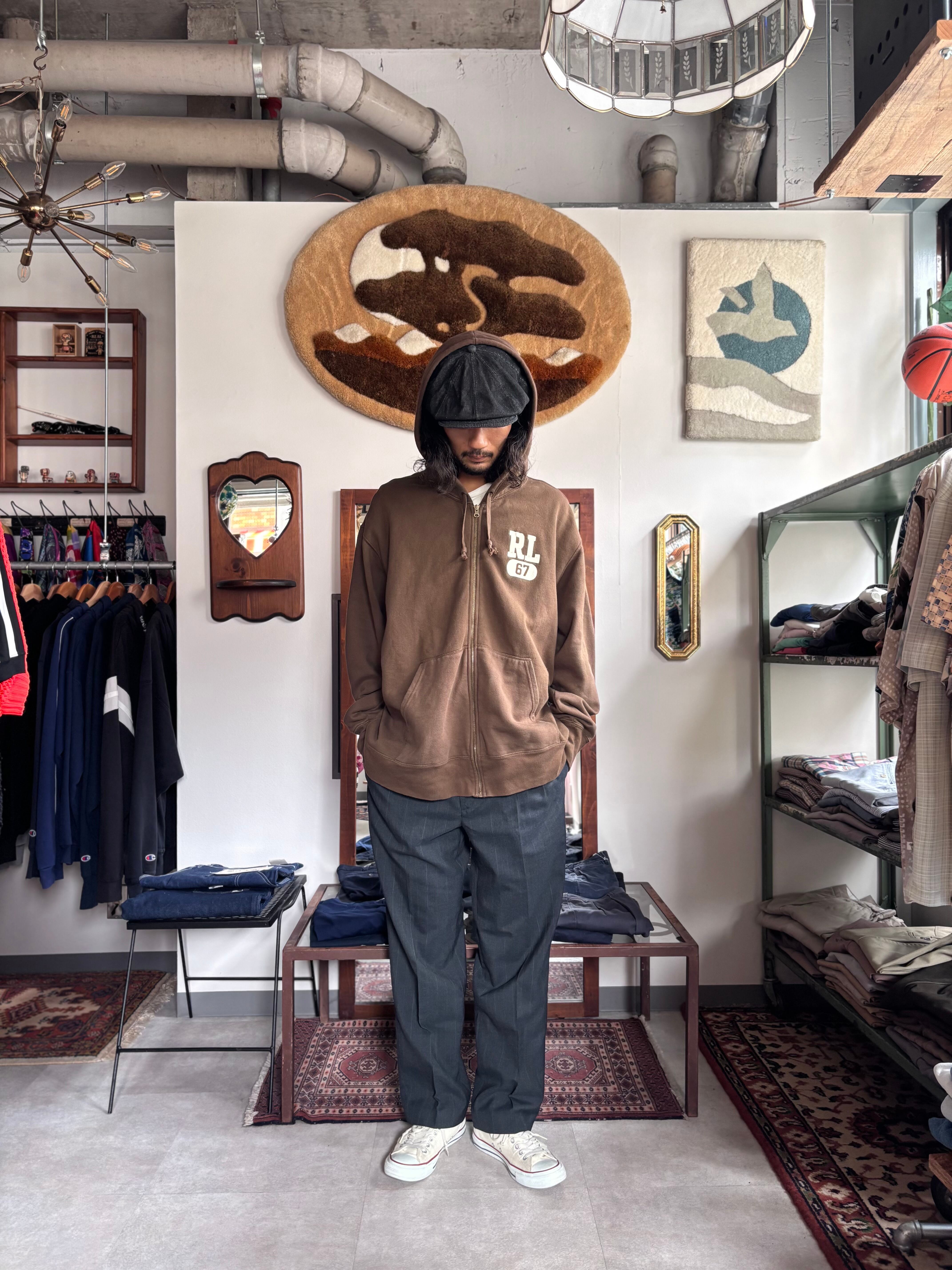 柔らかく着心地抜群のスウェット生地。ミルクチョコカラー。胸にオフホワイトカラーの刺繍グラフィック入り。リラックスフィット。ゆるさと品のバランスが保たれたRalpの zip hoodie。