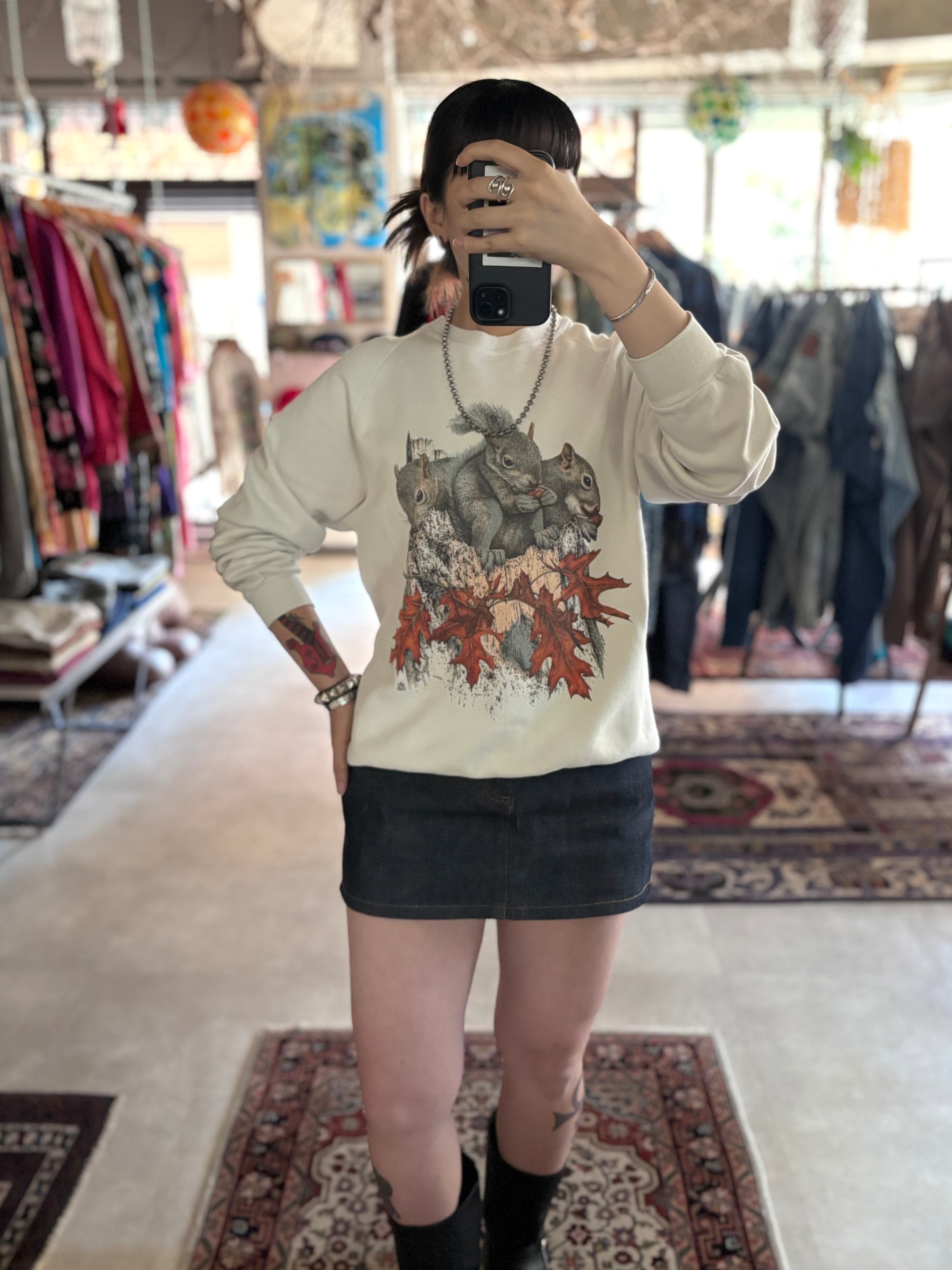 しっかりとした厚みのあるコットン素材。リラックスシルエット。クラシカルで落ち着いた印象のアニマルモチーフ◎USAメイドのRUSSELLボディ。