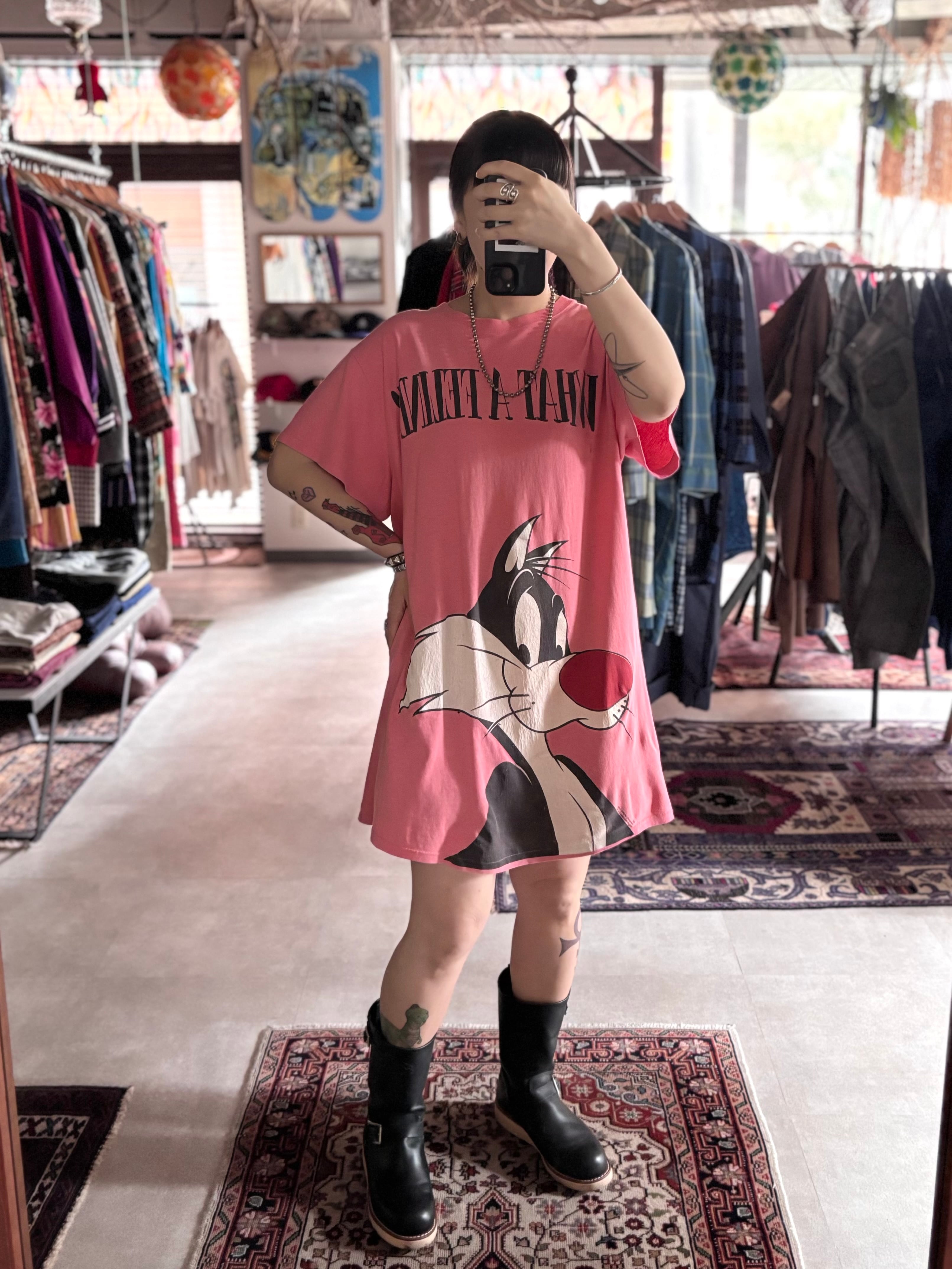 柔らかいコットン素材。限られた時代にのみ生産された one size fits all 表記のルーズフィット。96年のコピーライトが入るvintageモデル。袖、裾ともにシングルステッチ。