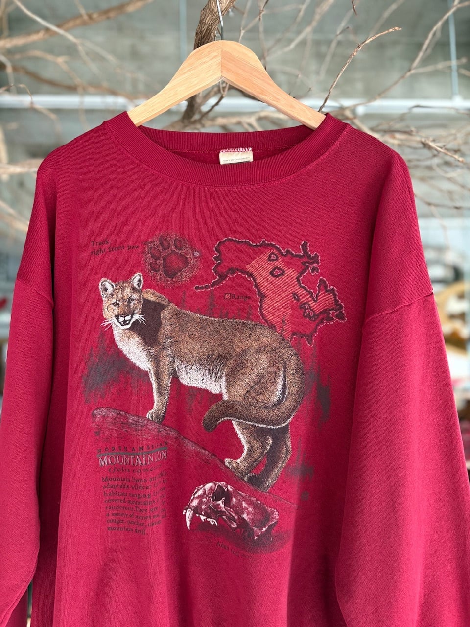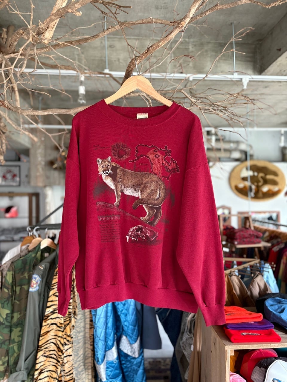 しっかりとした厚みのあるコットン素材。丈短めのルーズフィット。クラシカルで落ち着いた印象のアニマルモチーフ◎USAメイドのTULTEXボディ。